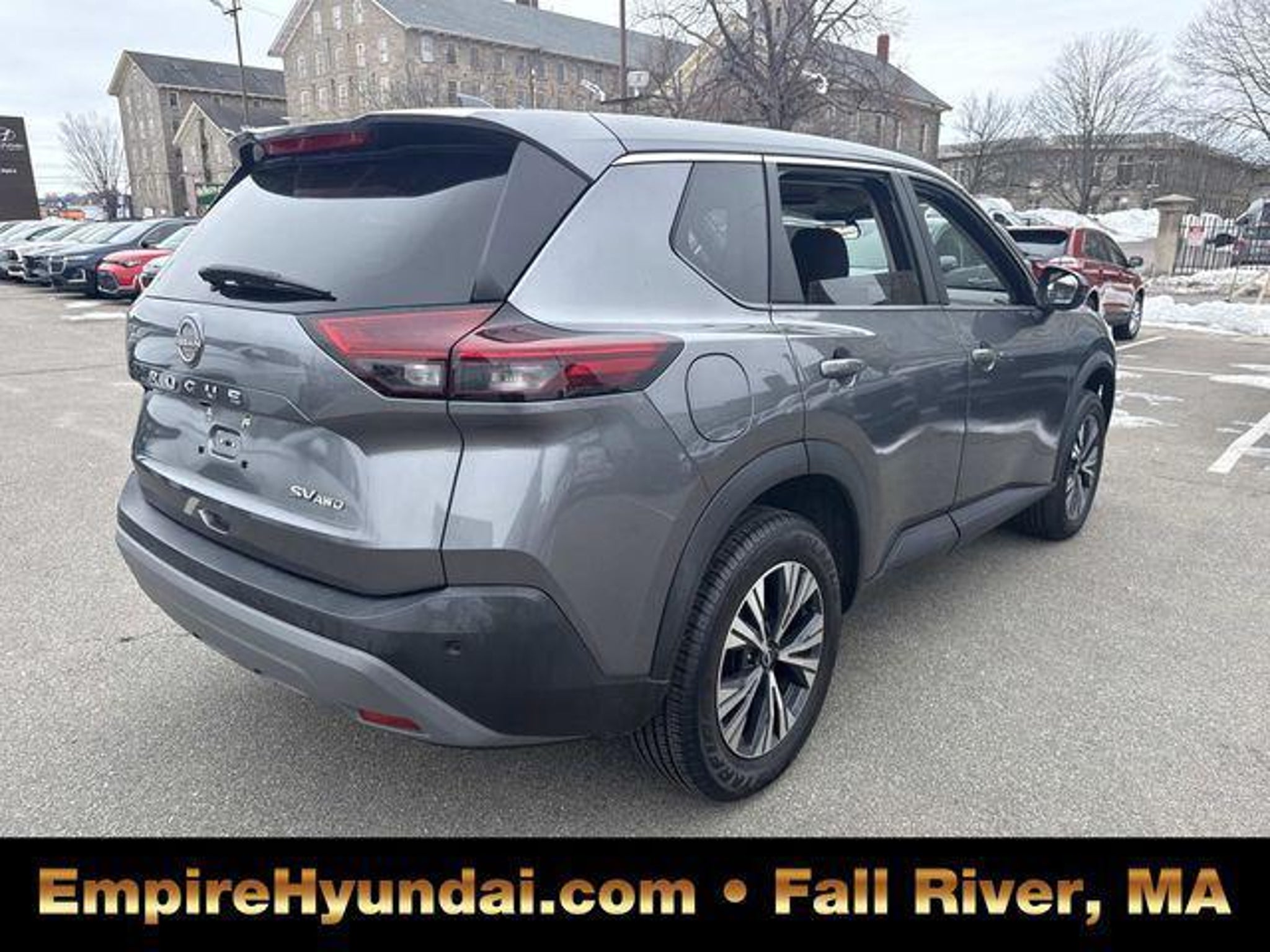 This vehicle has undergone the exact same 173-point rigorous inspection required for our CPO inventory, performed by our factory-trained technicians. You get a vehicle inspected to the highest standard without paying the certification fee. 150 Point Inspection, AWD, Rogue SV, 4D Sport Utility, 1.5L I3 Turbocharged DOHC 12V LEV3-ULEV50 201hp, CVT with Xtronic, AWD, Gun Metallic, Charcoal Cloth, 18 Aluminum Alloy Wheels, 4-Wheel Disc Brakes, 5.604 Axle Ratio, 6 Speakers, ABS brakes, Air Conditioning, Alloy wheels, AM/FM Radio, AM/FM radio: SiriusXM, Auto High-beam Headlights, Automatic temperature control, Brake assist, Bumpers: body-color, Cloth Seat Trim, Delay-off headlights, Driver door bin, Driver vanity mirror, Dual front impact airbags, Dual front side impact airbags, Electronic Stability Control, Emergency communication system: NissanConnect Services, First Aid Kit, Floor Mats w/1-Piece Cargo Area Protector, Four wheel independent suspension, Front anti-roll bar, Front Bucket Seats, Front Center Armrest, Front dual zone A/C, Front reading lights, Fully automatic headlights, Heated door mirrors, Illuminated entry, Knee airbag, Low tire pressure warning, NissanConnect featuring Apple CarPlay and Android Auto, Occupant sensing airbag, Outside temperature display, Overhead airbag, Overhead console, Panic alarm, Passenger door bin, Passenger vanity mirror, Power door mirrors, Power driver seat, Power steering, Power windows, Radio data system, Rear anti-roll bar, Rear Parking Sensors, Rear seat center armrest, Rear side impact airbag, Rear window defroster, Rear window wiper, Remote keyless entry, Security system, Speed control, Speed-Sensitive Wipers, Split folding rear seat, Spoiler, Steering wheel mounted audio controls, Tachometer, Telescoping steering wheel, Tilt steering wheel, Traction control, Trip computer, Turn signal indicator mirrors, Variably intermittent wipers. Gun Metallic 2022 Nissan Rogue SV 4D Sport Utility AWD CVT with Xtronic 28/35 City/Highway MPG 1.5L I3 Turbocharged DOHC 12V LEV3-ULEV50 201hp Centrally located in Fall River, Empire Hyundai proudly serves the South Coast and East Bay communities. We are just a short drive from Somerset, Swansea, and Dartmouth, as well as New Bedford, Providence, Newport, Taunton, Raynham, Attleboro, Dighton, Rehoboth, Tiverton and Providence. Whether you are visiting from Freetown or Seekonk, premium service is right around the corner. Visit our showroom at 428 Pleasant Street, Fall River, MA, or explore our inventory online at EmpireHyundai.com Or call us at .