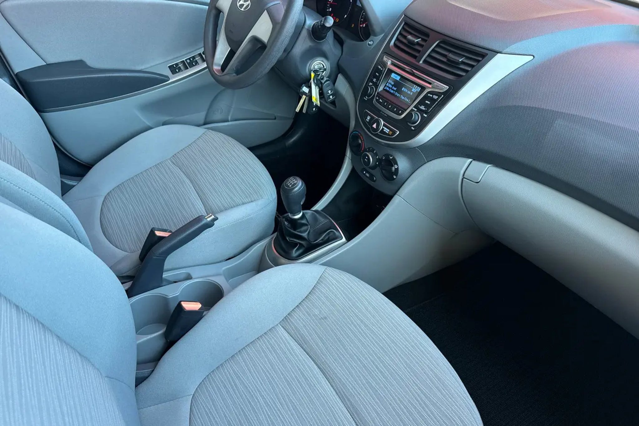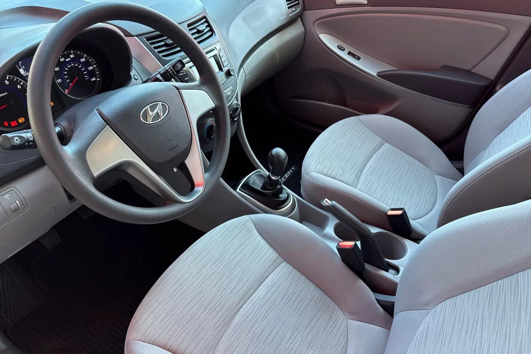 Accent SE, 4D Sedan, 1.6L I4 DGI DOHC 16V, 6-Speed Manual, FWD, Century White, Gray w/Cloth Seat Trim. Odometer is 89834 miles below market average! 27/38 City/Highway MPG Clean CARFAX. CARFAX One-Owner. Simple Price, Simple Process. Awards: * JD Power Initial Quality Study (IQS) * 2016 KBB.com 5-Year Cost to Own Awards