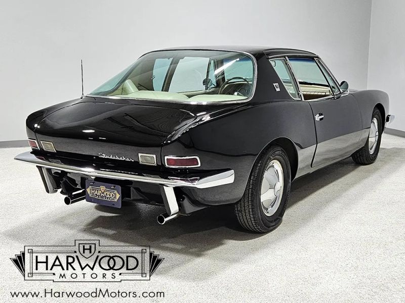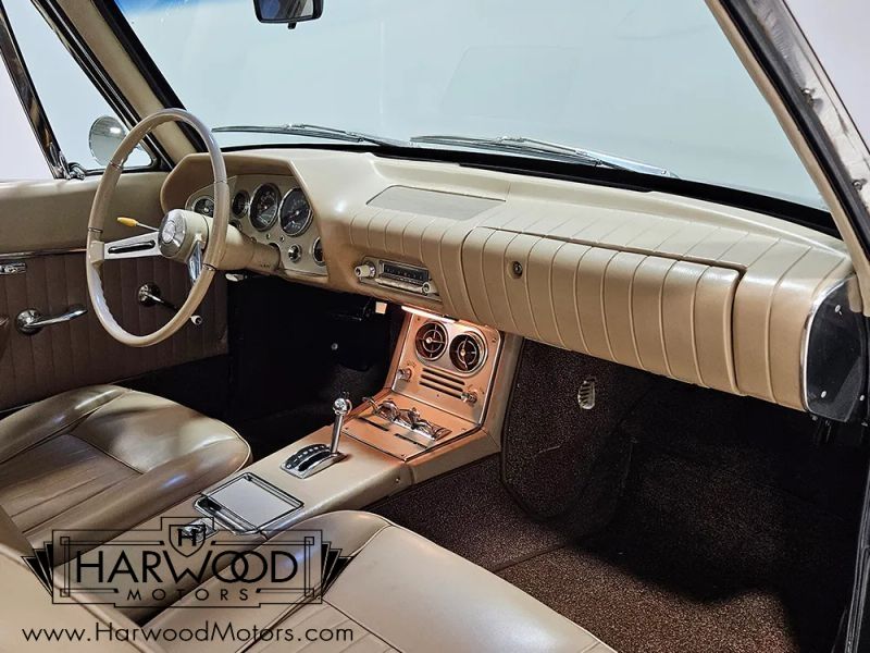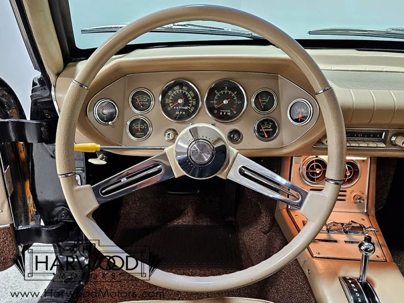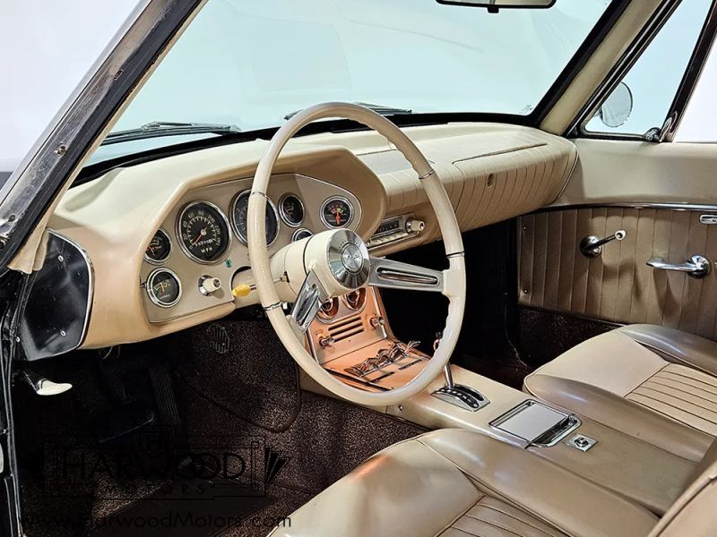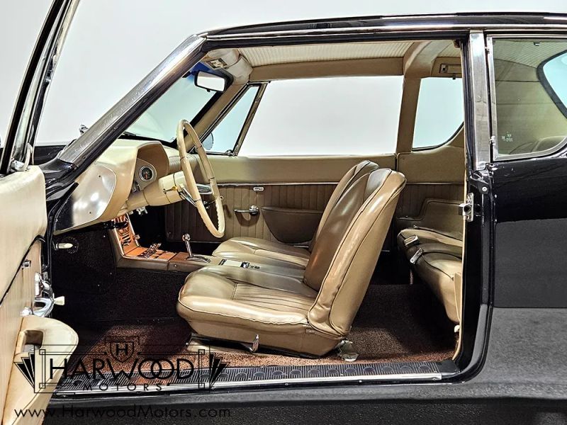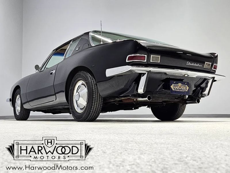 The Avanti is one of the motoring worlds best "love-it-or-hate-it" designs. It was controversial when it was new and remains just as thought-provoking today. Designed in six weeks, it has a sleek, futuristic look that stood the car world on its ear when it debuted. When it was new, it was also the holder of numerous land speed records, thanks to both the sleek bodywork and the virtually indestructible Studebaker 289 cubic inch V8. So when youre looking over this handsome black 1963 Studebaker Avanti, please understand that this was something special when it was new. Someone obviously loved this car, because its nicely preserved and wears a single older repaint in original black, giving the distinctive Avanti bodywork a slightly sinister look. The bodywork is fiberglass and in excellent condition with no notable cracks or delamination, and it shines up quite well. Our only complaint might be that the hood sits a little proud of the surrounding bodywork, but that might change once it sits out in the sun for a little while (fiberglass is notorious for moving around based on temperature). It also offers nice chrome, excellent original glass, and neat details like the offset hood ornament, wrap-around rear glass, and slender three-piece bumpers that are mid-century modern at its best.