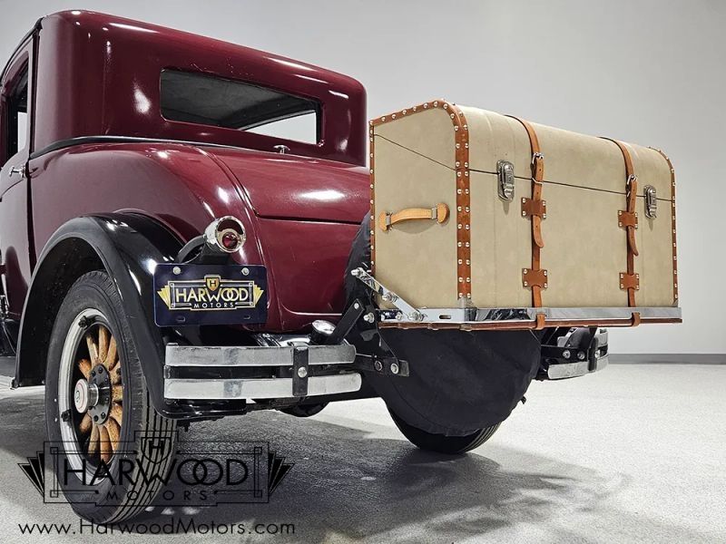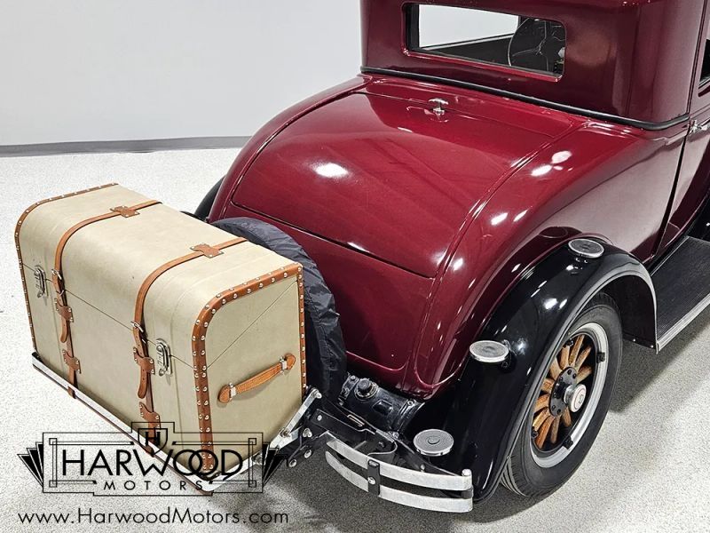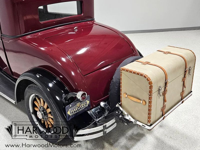Chrysler was rapidly building its core group of brands and in 1929, they introduced DeSoto as a mid-priced competitor to vehicles like Oldsmobile and Pontiac. With innovative features like hydraulic brakes (which Chrysler used from the very start in 1924) and upscale styling, the DeSoto was a success. This handsome 1929 DeSoto Model K coupe shows you why. Its handsome without being cute, and offers a lot more sophistication than many of its more popular competitors. The body lines echo the upscale Chrysler unit, particularly the thin grille shell and slightly raked roofline. We believe this DeSoto was restored in the 1970s and has been in long-term storage, so its nicely preserved. The maroon bodywork with black fenders is a traditional look, and while there are signs of use and age, it still looks handsome from a few feet away. Theres no evidence of rot or sub-standard repairs and the wood framing of the bodywork seems solid with doors that do not sag. The rear-mounted spare was standard equipment, but the trunk rack and trunk were often dealer-installed accessories that add useful storage.