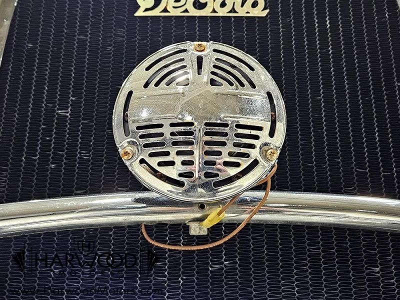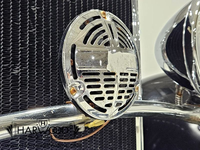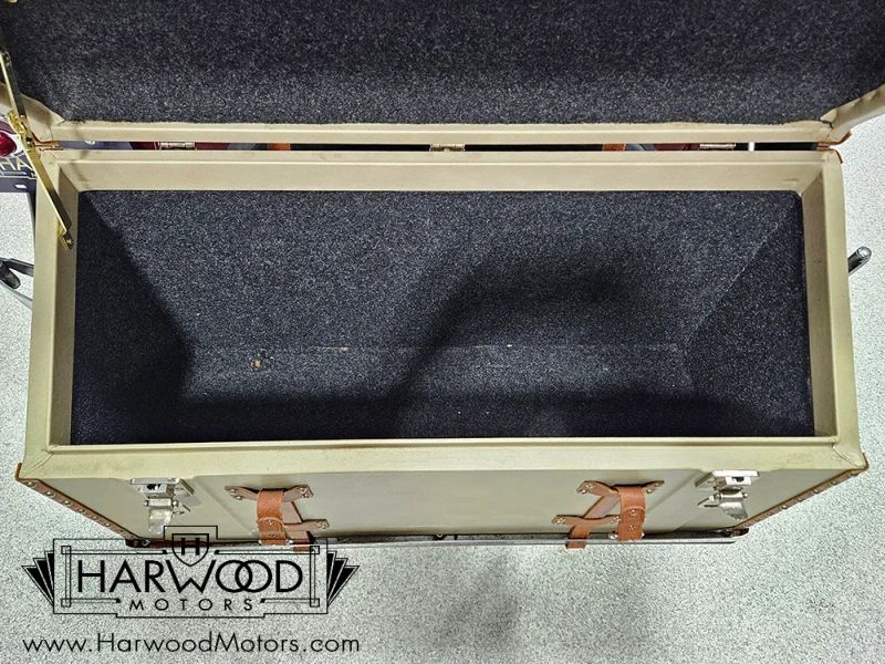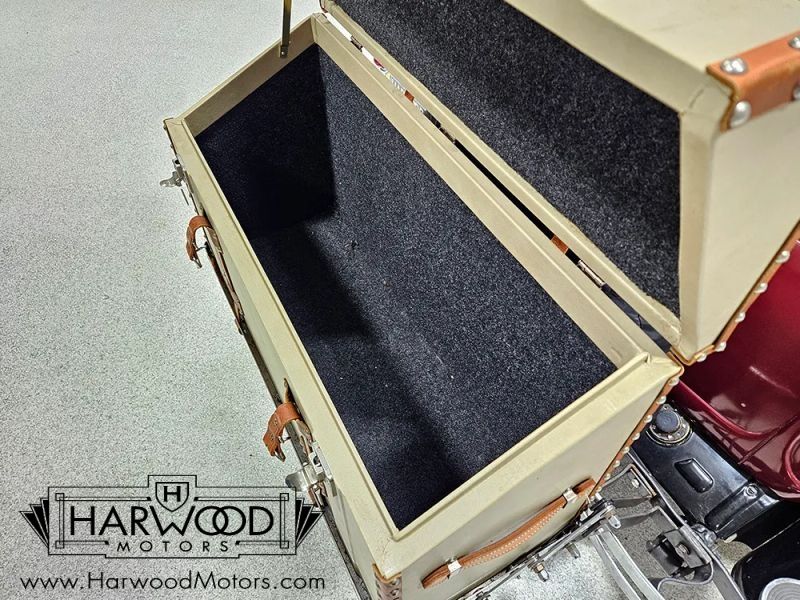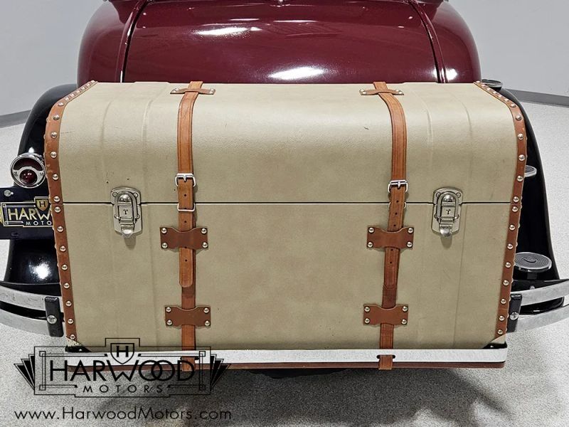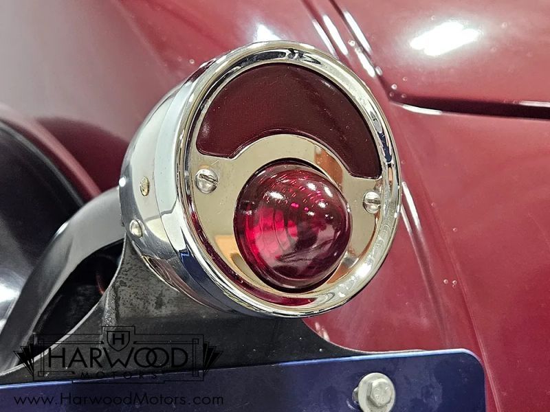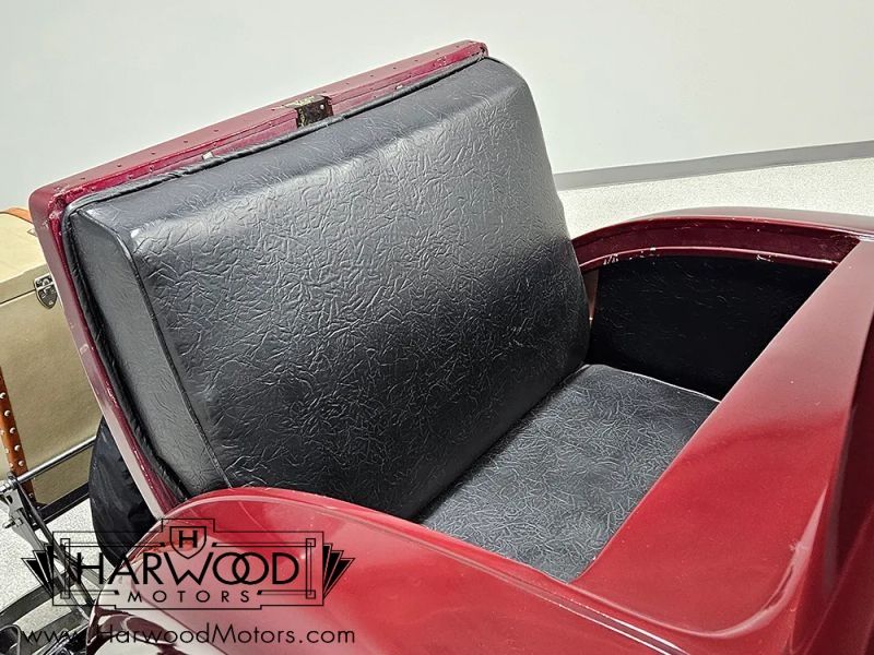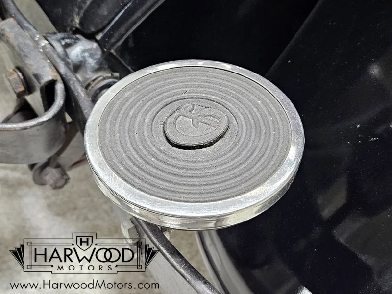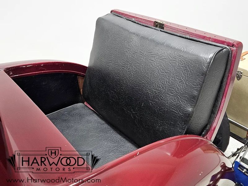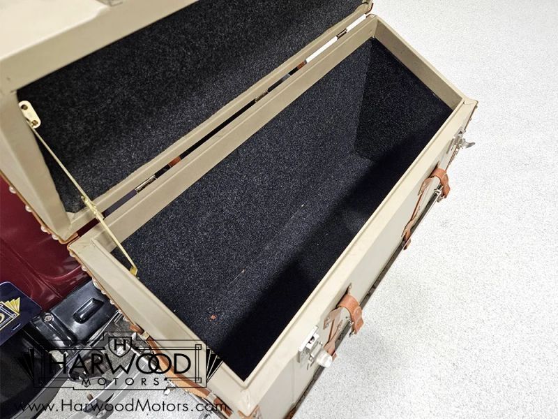 The interior is simple but with attractive Bedford cord upholstery, it feels comfortable for long tours or drives. The controls are familiar, with a big steering wheel, a 3-speed manual transmission (non-synchronized, so brush up on your double-clutching), and pedals arranged in the conventional fashion. The pedal on the far right is for the starter, and the levers on the steering column are the lights and hand-throttle (not connected). The gauges cover the basics, with the factory ammeter supplanted by a modern digital volt meter under the dash, along with a second horn button for the accessory horn mounted up front (the original horn with a button in the center of the wheel also works properly). The emblem in the center of the dash was something Chrysler called the "theft-proof number" which identifies each Chrysler product uniquely, like a VIN. The carpets are showing some wear, but there are heavy-duty rubber floor mats to keep things tidy. Theres also a nice headliner overhead and the windshield cranks open for added ventilation. In back, the rumble seat is upholstered in durable black vinyl and has room for reasonable-sized people who are athletic enough to climb in using the three steps on the right rear fender.