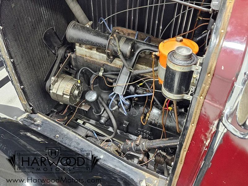 Chryslers 175 cubic inch inline-6 is known for its smoothness and almost legendary durability-these little engines are serious over-achievers and seem to last forever. This one has a few upgrades like a 6-volt alternator and modern plug wires, but otherwise it remains as the factory intended. Get the choke set just right and it fires up easily and idles nicely, and when its warmed up, it pulls the coupe around with real enthusiasm. At speed, its probably happiest under 50 MPH, about par for the era, and it makes a pleasant six-cylinder burble from the single exhaust pipe out back. The transmission shifts properly, clutch action is smooth, and with factory hydraulic brakes, stopping is confident. The brakes, fuel system, and electrical system have all been recently serviced, including new wheel cylinders, a restored gas tank, rebuilt carburetor and vacuum tank, and more. Underneath, its tidy and clean, with solid frame rails and wooden floors so you dont have to worry about rusted floorboards. There are fresh fluids throughout, and the 19-inch wood spoke wheels are in nice condition with no signs of rot. 4.75/5.00-19 blackwall tires are the same size as a Model A, so theyre easy to get-wed probably recommend replacing these before heading out on any long tours since we dont know how old they are.