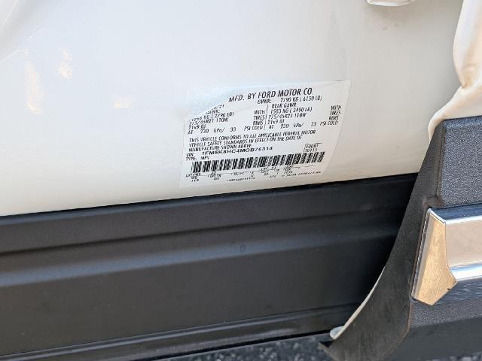 VIN 1FM5K8HC4MGB76314