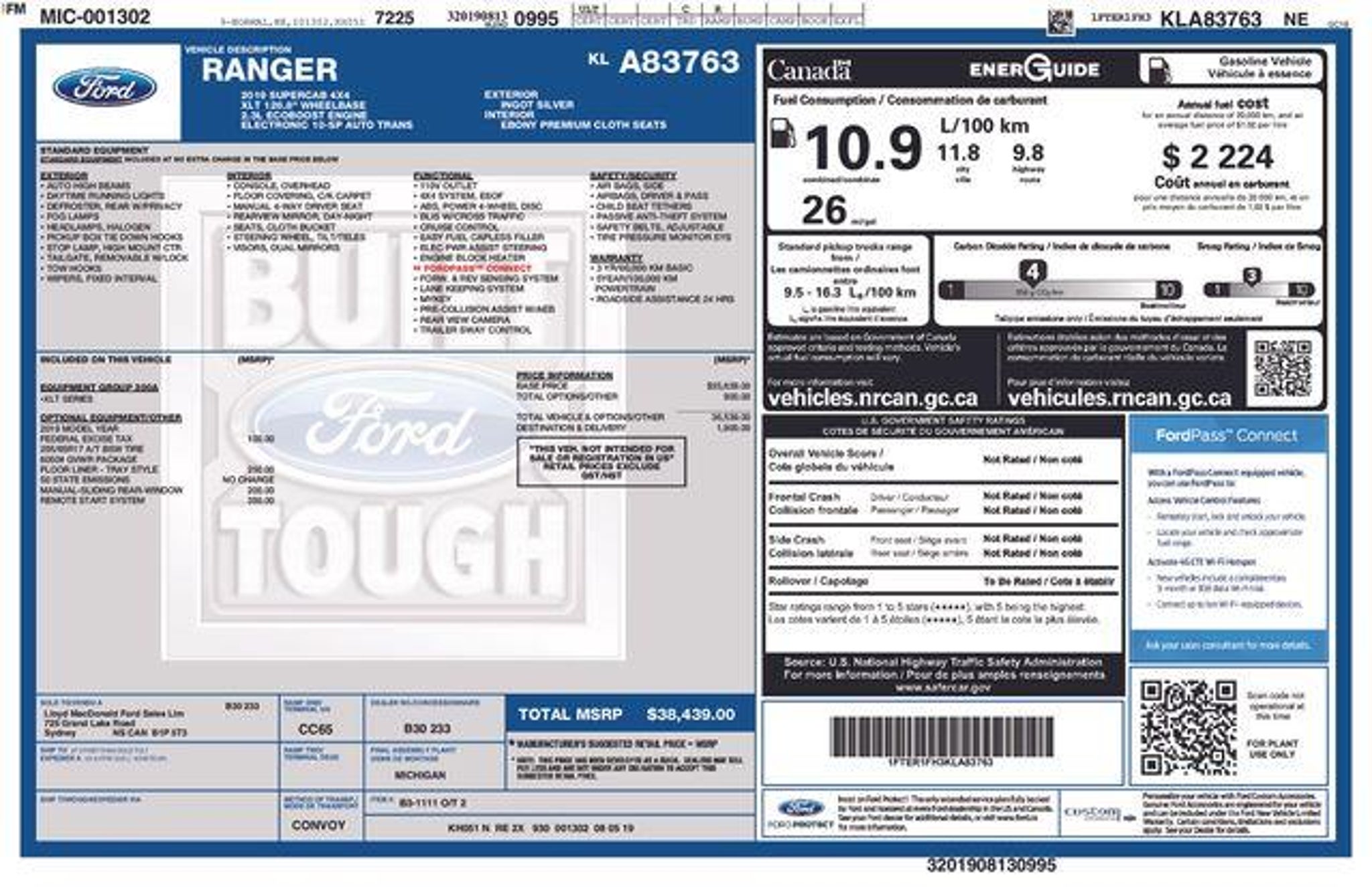 Discover the versatile and capable 2019 Ford Ranger XLT, a truck that's ready to take on any challenge. With its powerful EcoBoost 2.3L I4 GTDi DOHC Turbocharged VCT engine and 4-wheel drive, this Ranger is built to conquer the great outdoors. Boasting an impressive 20 city/24 highway MPG, it delivers the perfect balance of performance and efficiency. - Remote keyless entry - SYNC - Traction control - ABS brakes - Low tire pressure warning - Brake assist - Electronic Stability Control - Exterior Parking Camera Rear - Auto High-beam Headlights - Delay-off headlights - Front fog lights - Fully automatic headlights - MyKey - Panic alarm - Security system - Speed control Step inside the Ranger XLT and experience the perfect blend of comfort and convenience. The premium cloth bucket seats and telescoping steering wheel ensure a customized driving position, while features like the illuminated entry, outside temperature display, and trip computer keep you informed and in control. Stay connected with the AM/FM stereo and 6-speaker sound system, and keep your hands on the wheel with the steering wheel-mounted audio controls. This Ranger's impressive capabilities extend beyond the pavement. With its robust 4-wheel disc brakes, front independent suspension, and rear step bumper, it's ready to tackle any terrain. Plus, the alloy wheels and body-color bumpers lend a sleek, modern look that's sure to turn heads. Whether you're hauling gear for your next adventure or navigating the daily commute, the 2019 Ford Ranger XLT is the perfect companion. With its impressive performance, versatile features, and eye-catching style, this truck is a must-see. Visit our showroom today and experience the power and capability of the Ranger for yourself.
