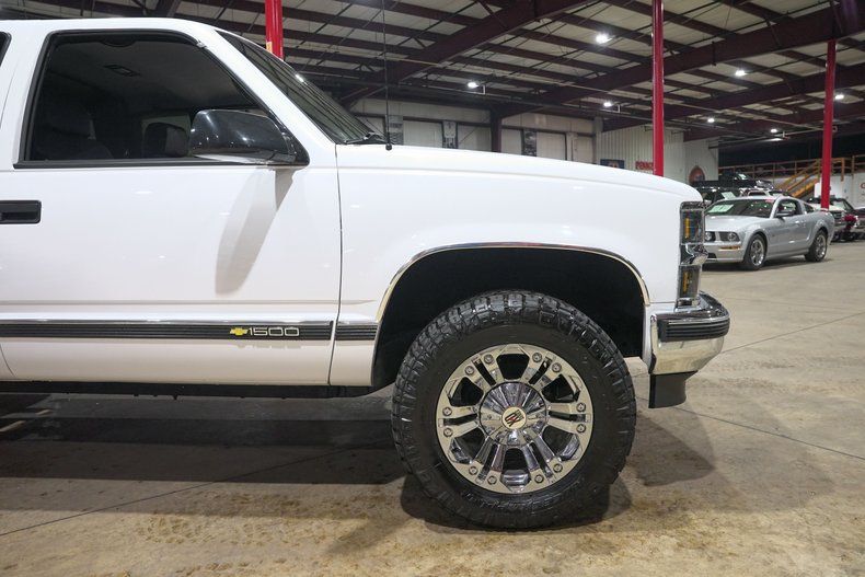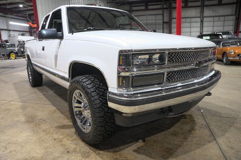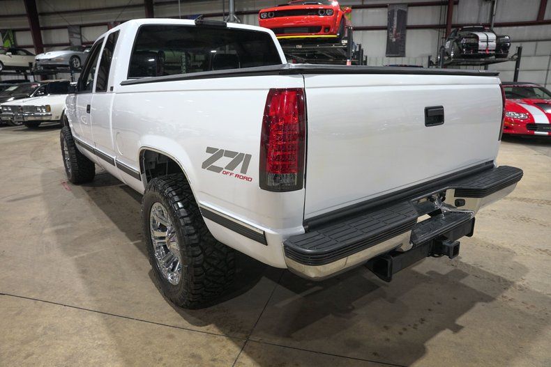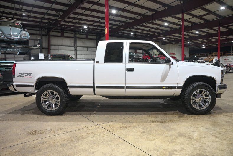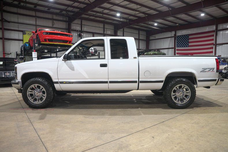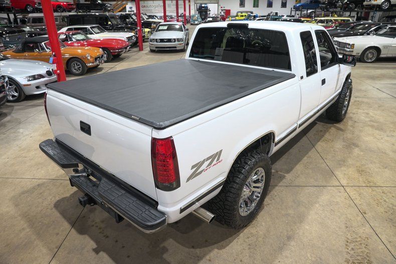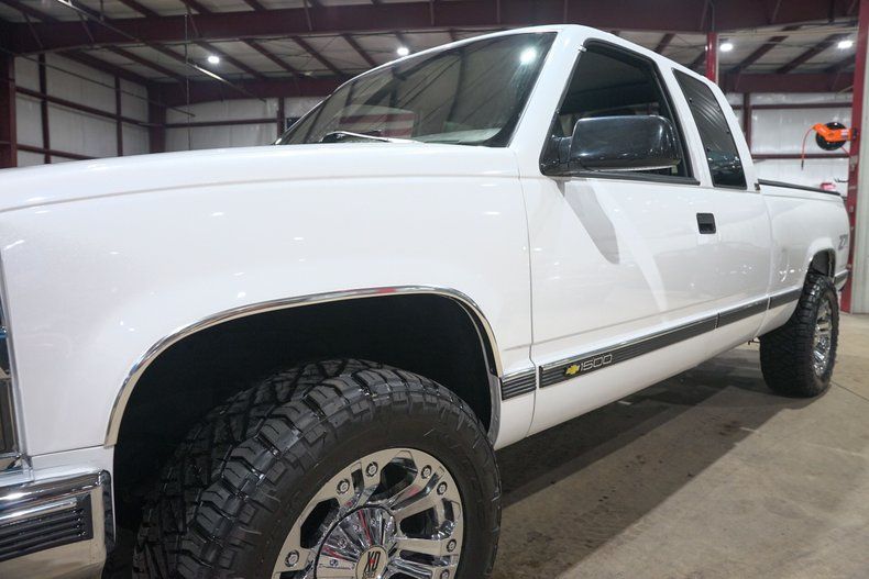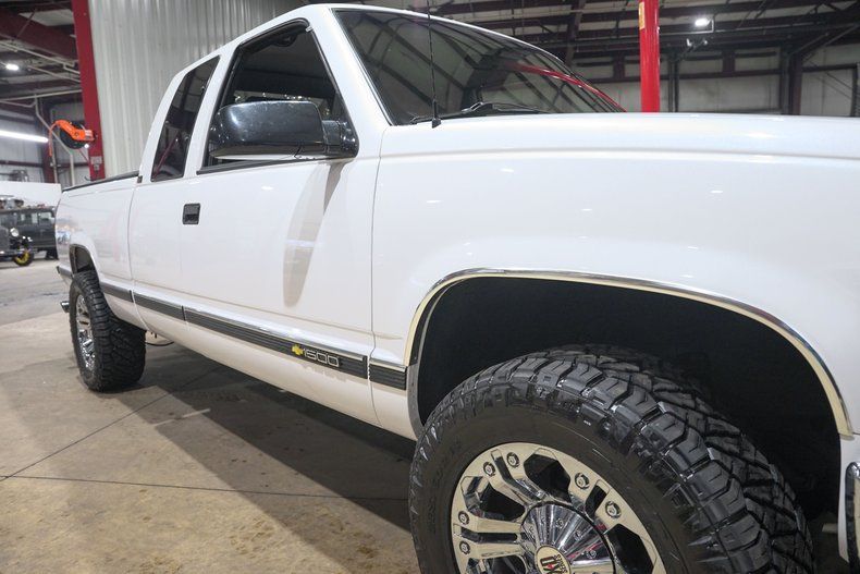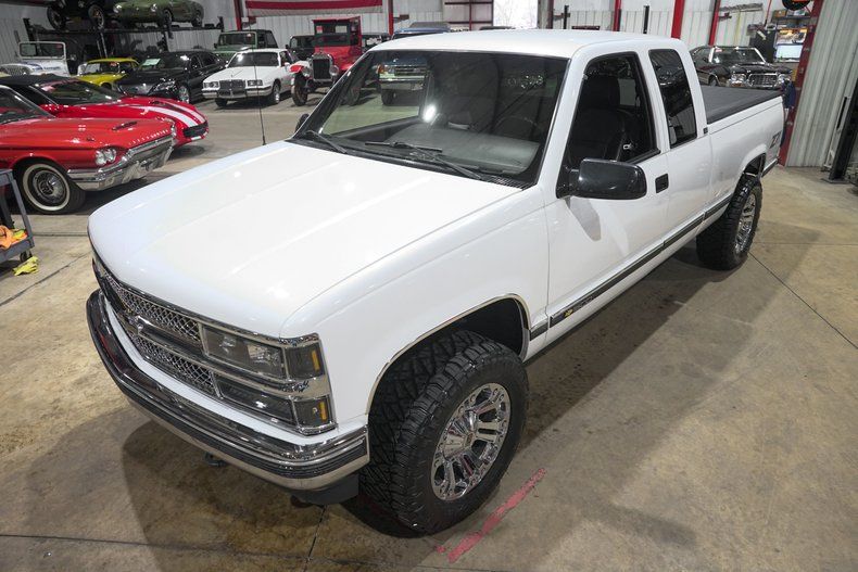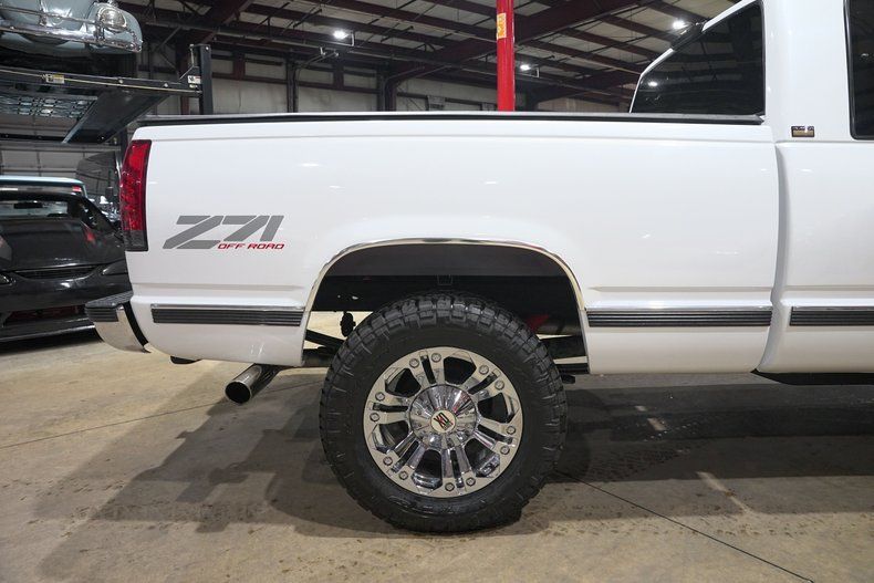 GR Auto Gallery is excited to present this 1995 Chevrolet K1500 Silverado Z71 Off Road finished in Pearl White over a Black leather interior. This regular cab pickup carries the timeless styling that made the GMT400 generation trucks some of the most recognizable and beloved pickups of the 1990s. The Pearl White paint pairs nicely with the chrome bumpers and chrome grille, giving the truck a clean and classic appearance. The truck underwent full body repair and a professional repaint, and the finish today shows extremely well with paint that is near perfection. The body is very solid with no surface rust present underneath and all floor pans in good condition. Exterior updates include a new grille, new headlights and taillights with LED lighting upgrades, new front and rear bumpers, body side molding kit, wheel arch moldings, new door latches, fresh window tint, and a new windshield. Sitting on chrome XD Series wheels wrapped in Nitto Ridge Grappler HD tires and topped off with a Mostplus tonneau cover, the truck has a strong stance while still keeping the classic Silverado look.