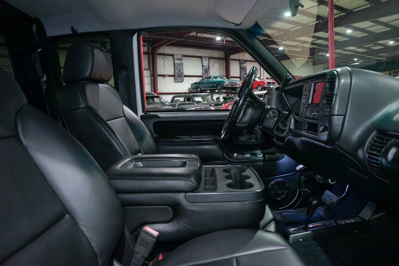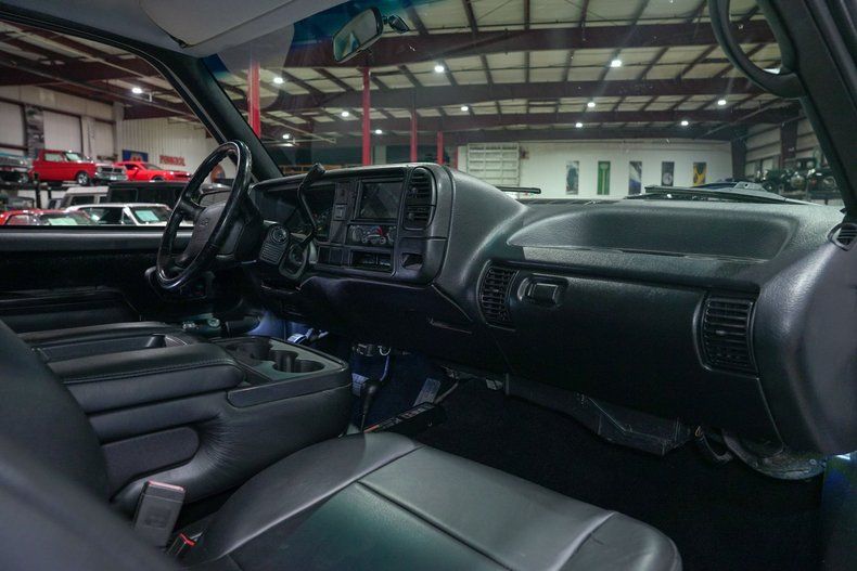 The interior has been completely redone and presents like new. The cabin now features all leather seats sourced from a newer 2014 Chevrolet truck that have been reupholstered and installed along with new seat side covers, giving the truck a more modern and comfortable feel while still fitting naturally with the Silverado interior. Additional interior updates include new door panels, door molding, new carpet, new door weatherstrip seals, dash cover, console trim retainers, shift boot, and several new internal switches including the power mirror, turn signal, wiper, and interior light switches. The truck is also equipped with a new radio with Bluetooth connectivity, upgraded speaker system, and a backup camera for added convenience. Overall the interior feels clean, modern, and very well put together.