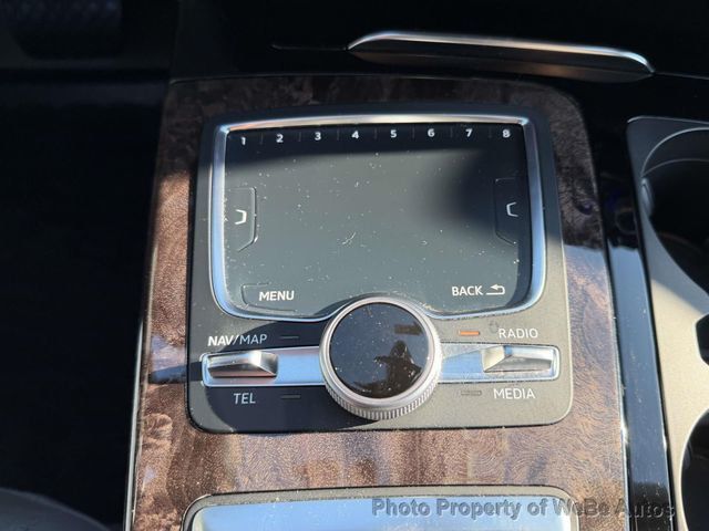 Air Conditioning, Climate Control, Cruise Control, Tinted Windows, Power Steering, Power Windows, Power Mirrors, Leather Steering Wheel, Leather Shifter, Power Drivers Seat, Power Passenger Seat, Memory Seat Position, Roof Rack, Rear Air Conditioning, Wood Trim, Clock, Tachometer, Digital Info Center, Homelink System, Tilt Steering Wheel, Steering Wheel Radio Controls, Sunroof, Moonroof, Driver Airbag, Passenger Airbag, Side Airbags, Keyless Entry, Security System, ABS Brakes, Traction Control, Dynamic Stability, Rear Defogger, Fog Lights, Intermittent Wipers, AM/FM, CD Player, Anti-Theft, Leather Interior Surface, 3.204 Axle Ratio, Wheels: 19 5-V-Spoke Design, Heated Front Bucket Seats, Leather Seating Surfaces, Radio: MMI Radio Plus w/Audi Sound System, 4-Wheel Disc Brakes, Exterior Parking Camera Rear, High intensity discharge headlights: Xenon plus, Driver's Seat Mounted Armrest, Compass, 10 Speakers, Auto-dimming Rear-View mirror, Turn signal indicator mirrors, Telescoping steering wheel, Split folding rear seat, Rear window wiper, Rear seat center armrest, Rear reading lights, Rear anti-roll bar, Rain sensing wipers, Radio data system, Power driver seat, Power door mirrors, Passenger vanity mirror, Passenger seat mounted armrest, Passenger door bin, Overhead airbag, Outside temperature display, Occupant sensing airbag, Low tire pressure warning, Illuminated entry, Heated front seats, Heated door mirrors, Fully automatic headlights, Front reading lights, Front anti-roll bar, Four wheel independent suspension, Dual front side impact airbags, Dual front impact airbags, Driver vanity mirror, Driver door bin, Delay-off headlights, Bumpers: body-color, Brake assist, Automatic temperature control, 3rd row seats: bench, Spoiler, Power Liftgate, Front Bucket Seats 3rd Row Seating, Carpeted Floor Mats, Center Arm Rest, Child Proof Door Locks, Front Heated Seats, Heated Mirrors, Parking Sensors, Power Lift Gate, Rear Fog Lamps, Rear Spoiler, Rear Spoiler, Rear Wipers, Remote Fuel Door, Reverse Camera, Roll Stability Control, Side Curtain Airbags, Sliding Rear Window, Tire Pressure Monitor, Vanity Mirrors