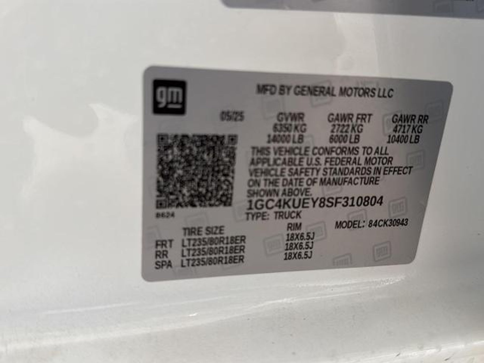 VIN 1GC4KUEY8SF310804