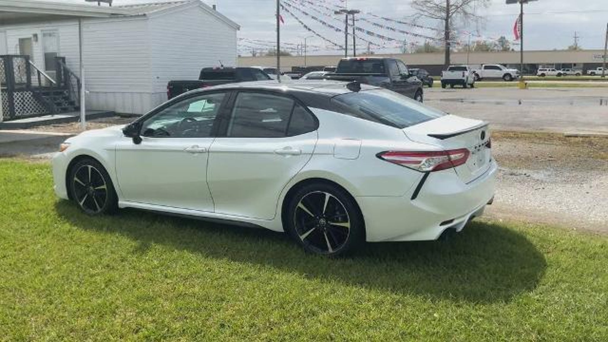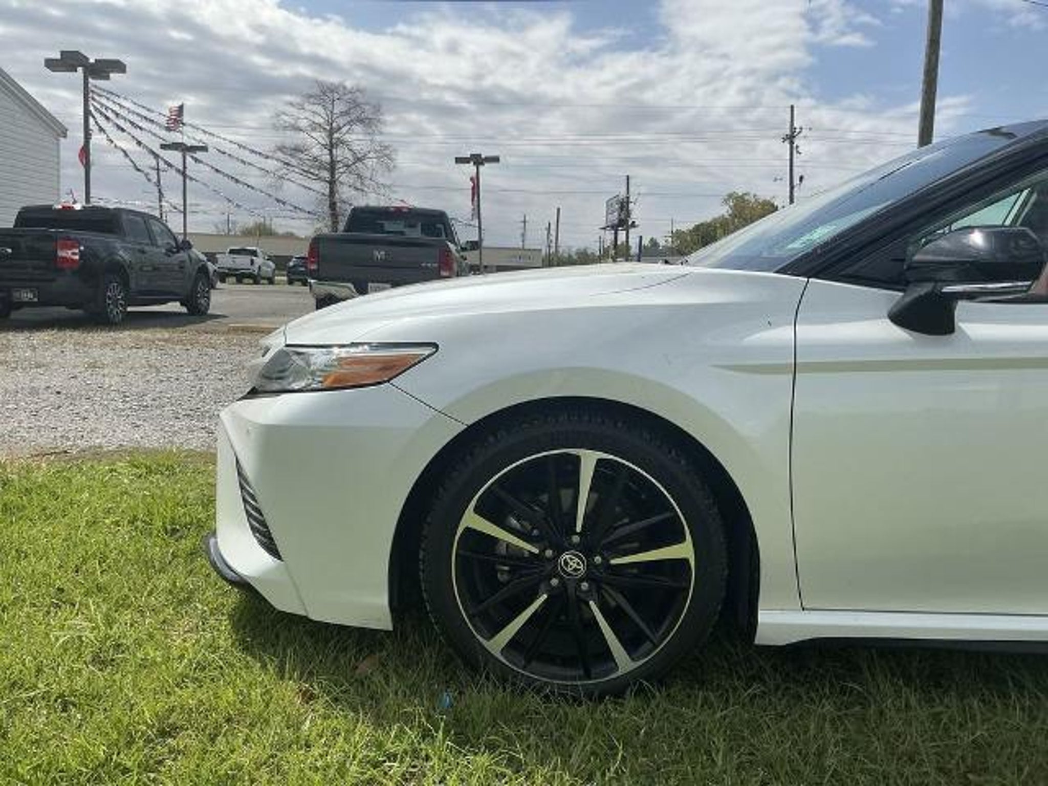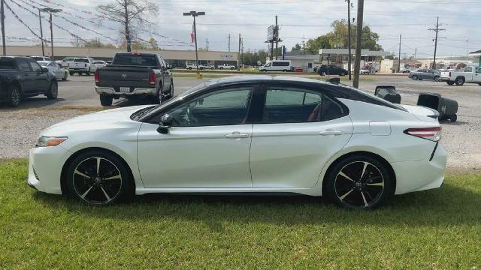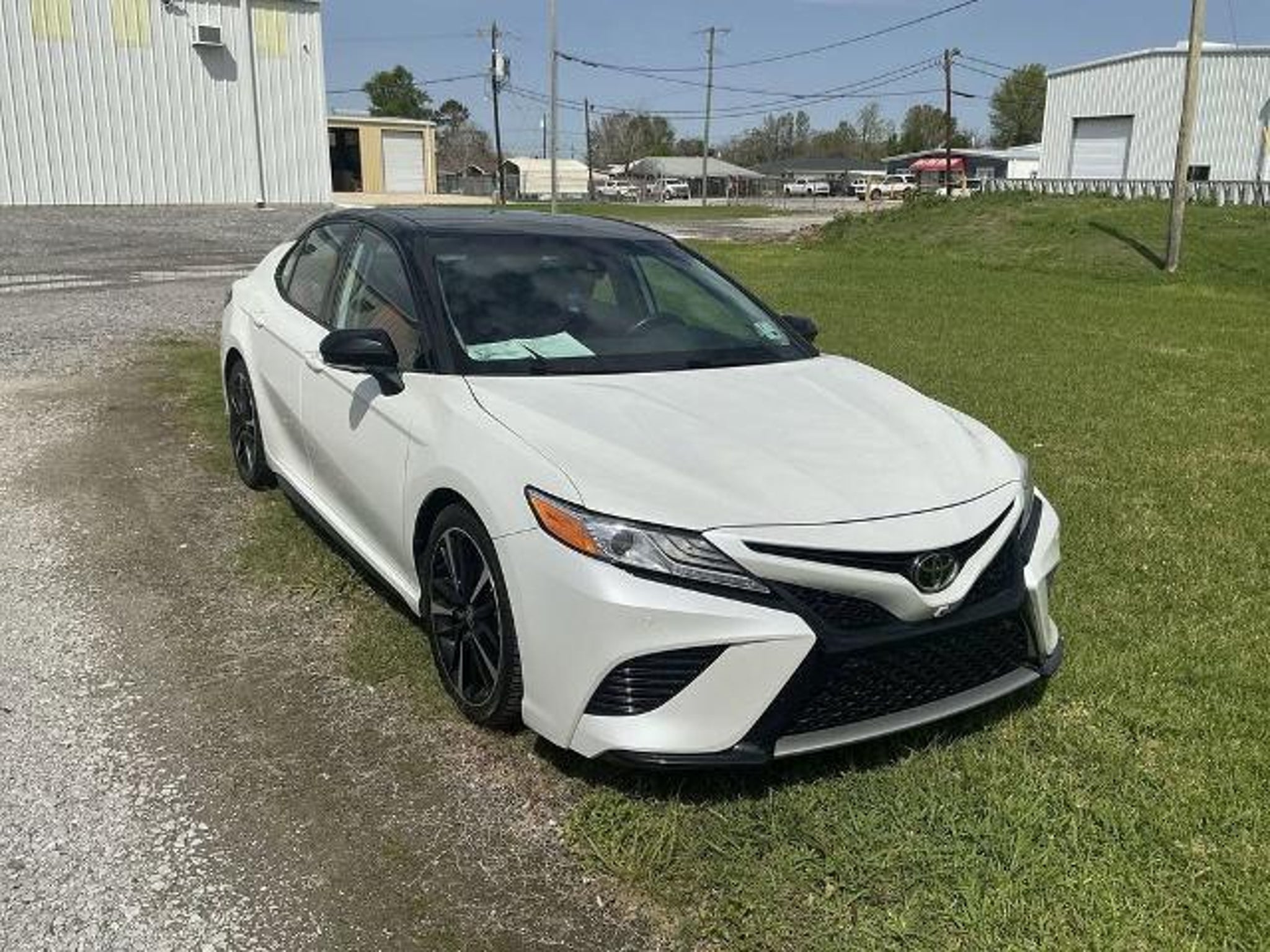 White 2020 Toyota Camry XSE V6 FWD 8-Speed Automatic 3.5L V6 DOHC 24V ABS brakes, Active Cruise Control, Alloy wheels, Compass, Electronic Stability Control, Front dual zone A/C, Heated door mirrors, Heated front seats, Illuminated entry, Leather Seat Trim, Low tire pressure warning, Power moonroof, Remote keyless entry, Traction control.