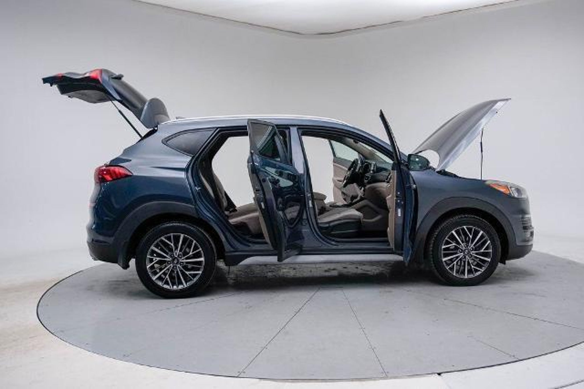 Dusk Blue 2019 Hyundai Tucson SEL **REAR VIEW BACK UP CAMERA**, **APPLE CAR PLAY/MOBILE CONNECT**, **PUSH BUTTON START**, **HEATED SEATS**, CLEAN CARFAX, 18 x 7.0J Alloy Wheels, 6 Speakers, Air Conditioning, AM/FM radio: SiriusXM, Apple CarPlay & Android Auto, Automatic temperature control, Axle Ratio: 3.064, Brake assist, Cargo Net, Carpeted Floor Mats, Dual front impact airbags, Dual front side impact airbags, Electronic Stability Control, Four wheel independent suspension, Front anti-roll bar, Front dual zone A/C, Option Group 01, Passenger door bin, Power driver seat, Power steering, Power windows, Radio: AM/FM/SiriusXM Audio System, Rear window defroster, Rear window wiper, Remote keyless entry, Reversible Cargo Tray, Speed-sensing steering, Steering wheel mounted audio controls, Traction control, Variably intermittent wipers. ***PROVIDING QUALITY TRANSPORTATION FOR INDIANA SINCE 1987!***