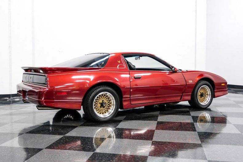 Dressed in an outstanding color scheme that pairs factory correct Flame Red Metallic paint with a signature gold "Screaming Chicken" hood logo, this 1988 Pontiac Firebird Trans Am GTA represents its model in its strikingly aerodynamic third generation form. That attention grabbing paint combo, contrasted by a set of factory-correct wheels that come by way of its upper tier GTA (Grand Touring American) status really draw you in, and while at very close range you may find some subtle evidence of passing years here and there, make no mistake, this classic is an absolute head turner. Better still, with an unusually low 42,638 miles under its belt, this Firebird is ready and waiting for plenty more asphalt enjoyment.