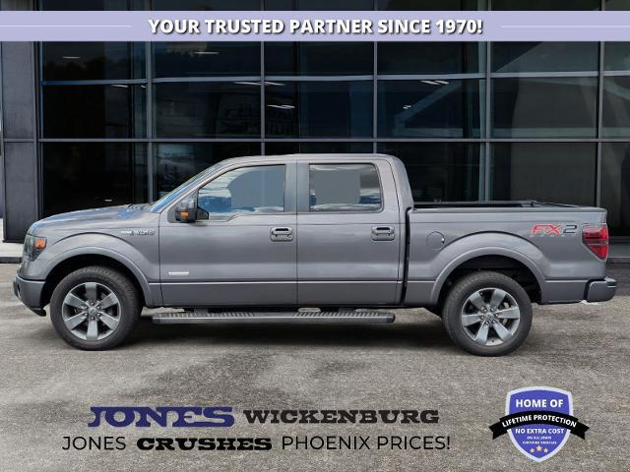 2013 Ford F150 FX2 Turbocharged Power Meets Sport Inspired Style Available now at Jones Ford CJDR Wickenburg If you're searching for a truck that blends bold personality with heart pounding performance, the 2013 Ford F150 FX2 hits the mark with authority. This FX2 isn't just sporty its powered by Fords acclaimed 3.5L EcoBoost V6, a twin turbo engine that delivers the kind of power you feel the moment you press the pedal. Comparable 2013 EcoBoost models pack 365 horsepower and an impressive 420 lb-ft of torque, giving you V8 level muscle with the quick, exhilarating response only a turbocharged engine can provide. Paired with a smooth, intelligent 6-speed automatic transmission, this FX2 gives you confident acceleration, effortless passing power, and commanding performance whether you're cruising through Wickenburg or hauling out to the desert. Properly equipped, similar 2013 EcoBoost F150s can tow up to 11,300 lbs., giving you the capability to bring along everything from trailers to toys. The FX2 trim adds a distinctive edge sport tuned appearance, bodycolor accents, an assertive stance, and that unmistakable F150 presence. Inside the spacious cabin, you'll find comfort and practicality woven together, with crew cab roominess, smart storage, and a driver focused layout that keeps every control where you need it. This is a truck designed to make every day driving feel better, and weekend plans feel bigger. What really separates this FX2 is how it makes you feel behind the wheel. The surge of torque at just 2,500 rpm. The smooth yet strong pull through every gear. The confidence that comes from knowing your truck was built to take on whatever the day brings. It's a truck that doesn't just work for you it elevates the way you move. At Jones Ford CJDR Wickenburg, we pair trucks like this with people who appreciate honesty, smalltown friendliness, and a no pressure buying experience that puts your needs first. Ready to experience the thrill of an FX2 EcoBoost? Visit our showroom, contact us today, or schedule a test drive. Your next great truck is waiting.