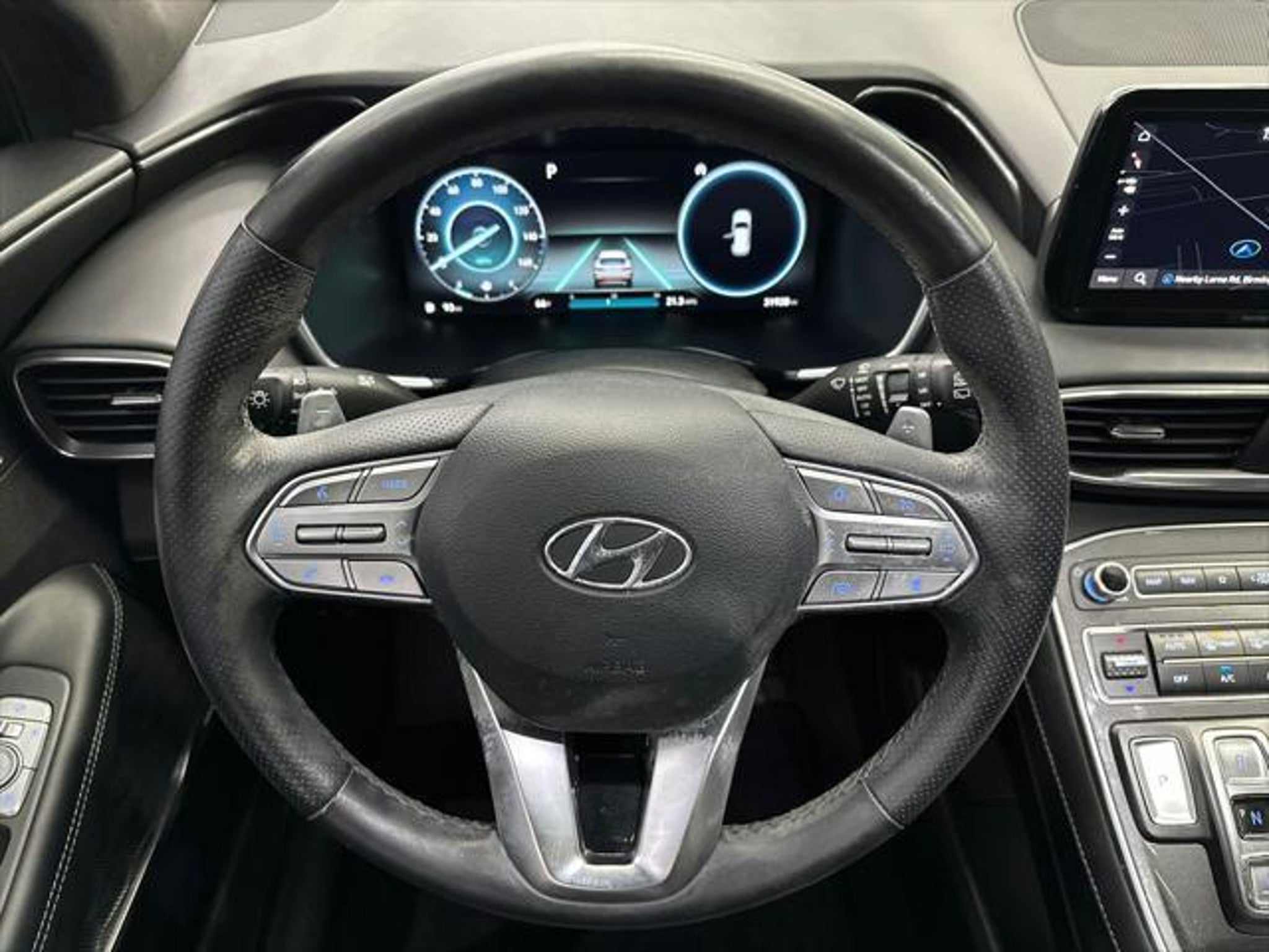 Clean CARFAX. Certified. Priced below KBB Fair Purchase Price! Twilight Black 2023 Hyundai Santa Fe Calligraphy AWD Shiftronic 2.5L I4 Hyundai Certified Used Vehicles Certified, AWD, Black Leather, Moonroof/Sunrof, Nav/GPS/Navigation, Remote Start, Power Lift Gate, Backup Camera, Leather, Heated and Cooled Seats, One Owner CarFax, Clean accident free CarFax, ABS brakes, Apple CarPlay & Android Auto, Auto-dimming Rear-View mirror, Automatic temperature control, Front dual zone A/C, harman/kardon® Speakers, Heads-Up Display, Heated door mirrors, Heated rear seats, Heated steering wheel, Illuminated entry, Leather steering wheel, Memory seat, Outside temperature display, Power door mirrors, Quilted Premium Nappa Leather Seat Trim, Rain sensing wipers, Telescoping steering wheel, Tilt steering wheel, Traction control, Wheels: 20 x 8.0J Alloy. 2023 Hyundai Santa Fe Calligraphy Call us today or come by Tameron Hyundai in Hoover to see why we are your best choice when purchasing a pre-owned vehicle. *See Tameron for copy of warranties. Odometer is 9697 miles below market average! 21/28 City/Highway MPG We appreciate your interest, and please contact us by phone, email, or online inquiry and we'll get back to you immediately. At Tameron Hyundai, you're going to love the way you're treated! We offer financing for ALL credit situations. Please give us a call or stop by to test drive, we work hard for our customers. .