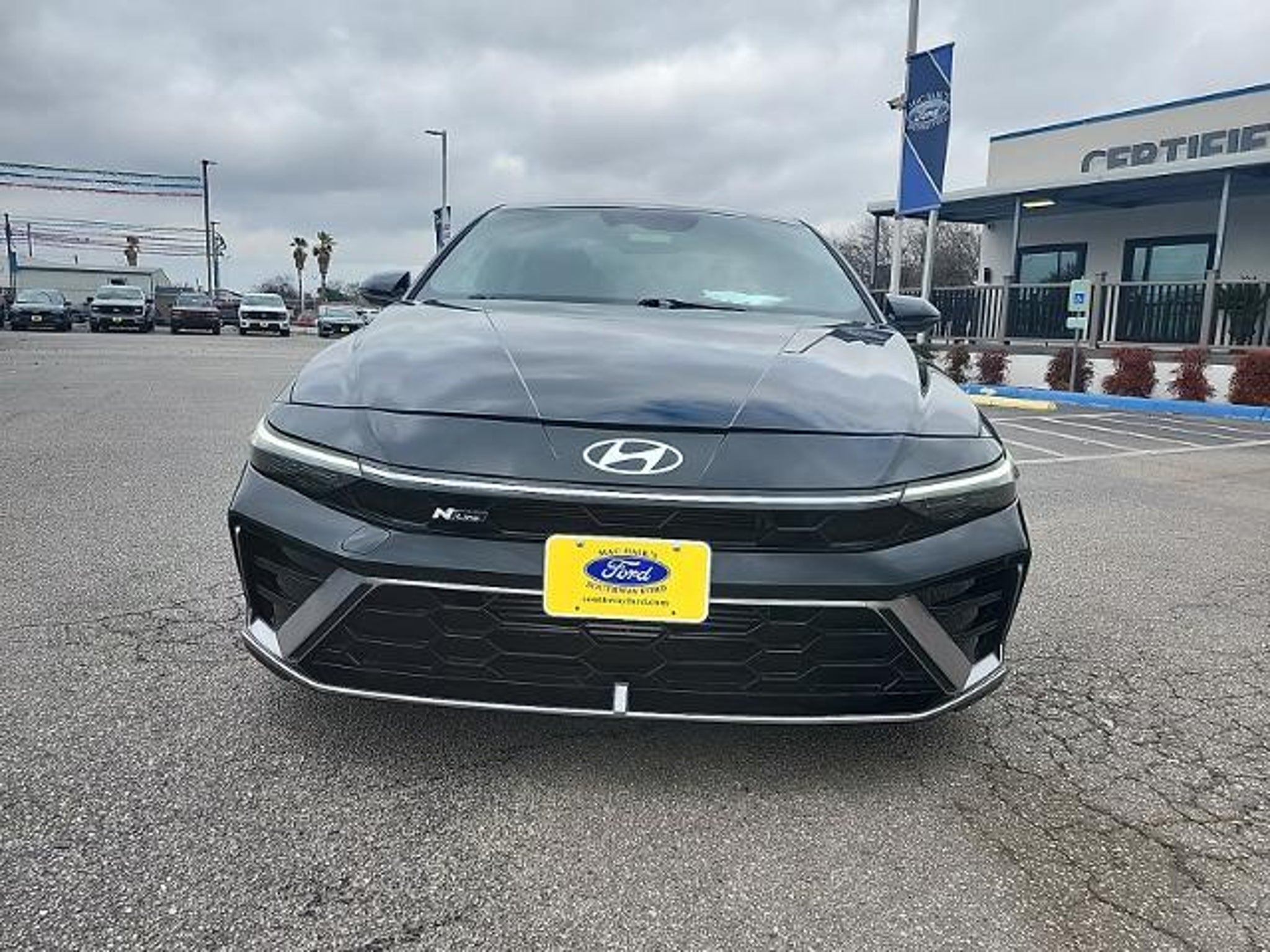 This 2024 Hyundai Elantra N Line in Abyss Black includes the following features: I4 7-Speed Dual Clutch DCT FWD Option Group 01, 18 x 7.5J Alloy Wheels, 4-Wheel Disc Brakes, 8 Speakers, ABS brakes, Air Conditioning, Alloy wheels, AM/FM radio: SiriusXM, Apple CarPlay & Android Auto, Auto High-beam Headlights, Automatic temperature control, Brake assist, Bumpers: body-color, Cargo Net, Cargo Side Bins, Carpeted Floor Mats, Combination Cloth & Leatherette Seating Surfaces, Delay-off headlights, Driver door bin, Driver vanity mirror, Dual front impact airbags, Dual front side impact airbags, Electronic Stability Control, Emergency communication system: Bluelink, Exterior Parking Camera Rear, First Aid Kit, Four wheel independent suspension, Front anti-roll bar, Front Bucket Seats, Front Center Armrest, Front dual zone A/C, Front reading lights, Fully automatic headlights, Heated door mirrors, Heated front seats, Heated Front Sport Bucket Seats, Illuminated entry, Leather Shift Knob, Leather steering wheel, Low tire pressure warning, Navigation System, Occupant sensing airbag, Outside temperature display, Overhead airbag, Overhead console, Panic alarm, Passenger door bin, Passenger vanity mirror, Power door mirrors, Power driver seat, Power moonroof, Power steering, Power windows, Radio: AM/FM/HD/SiriusXM Display Audio, Rear anti-roll bar, Rear seat center armrest, Rear side impact airbag, Rear window defroster, Remote keyless entry, Reversible Cargo Tray, Security system, Speed control, Speed-sensing steering, Split folding rear seat, Spoiler, Sport steering wheel, Steering wheel mounted audio controls, Tachometer, Telescoping steering wheel, Tilt steering wheel, Traction control, Trip computer, Turn signal indicator mirrors, and Variably intermittent wipers. Abyss Black 2024 Hyundai Elantra N Line FWD 7-Speed Dual Clutch DCT I4 Mac Haikâs Southway Ford has been serving our Friends and Family in South Texas for over twenty years. Many of our employees have been with the company since the start. This means that chances are the staff member that helps you today will be here tomorrow now that is a refreshing change! Located at 7979 IH 35 South in San Antonio, TX. We are the low price leader finishing in the top twenty Ford dealers in the nation for volume of sales in 2008. We are Blue Oval Certified by Ford Motor Company for our commitment to customer satisfaction before and after the sale of their new vehicle. Odometer is 1551 miles below market average! 28/35 City/Highway MPG