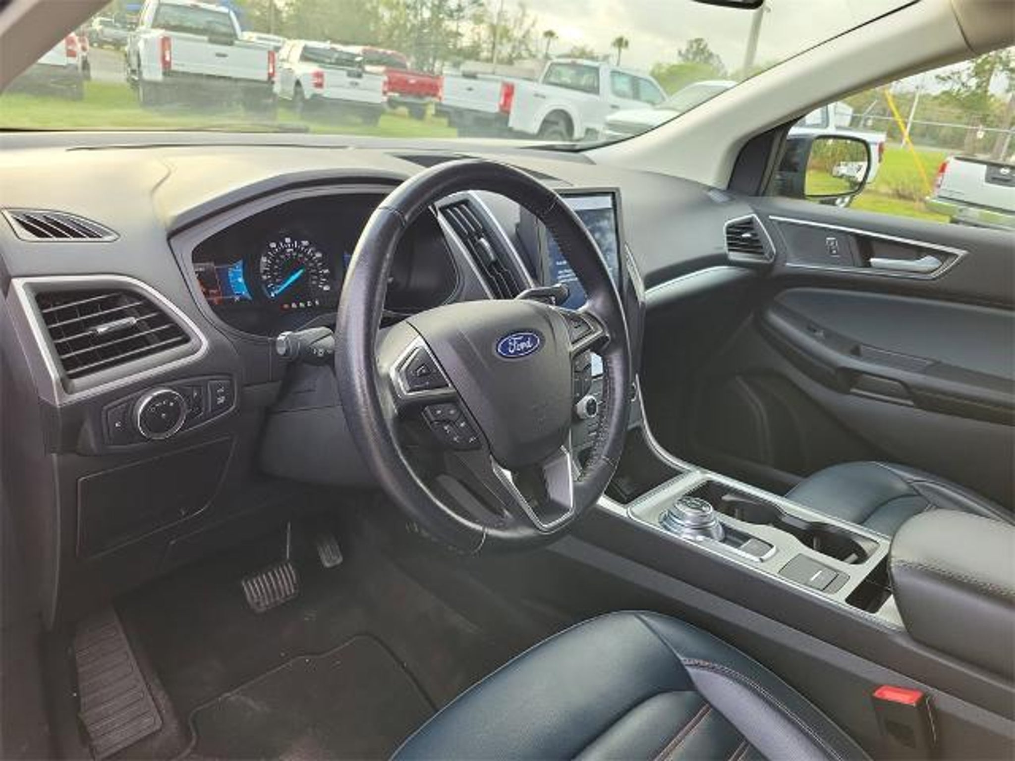 Recent Arrival! CARFAX One-Owner. AWD, 110V/150W AC Power Outlet, Automatic temperature control, Convenience Package, Equipment Group 201A, Fog Lamps w/Iconic Silver Bezel, Front dual zone A/C, Perimeter Alarm, Power Liftgate, Remote keyless entry, Remote Start System, SYNC 4A w/Enhanced Voice Recognition, Universal Garage Door Opener (UGDO), Wheels: 18 Carbonized Gray-Painted Aluminum, Wireless Charging Pad. Carbonized Gray Metallic 2023 Ford Edge SEL EcoBoost 2.0L I4 GTDi DOHC Turbocharged VCT AWD Odometer is 24462 miles below market average! 21/28 City/Highway MPG *ALL NEW AND ELIGIBLE PRE OWNED VEHICLES COME WITH A LIMITED LIFETIME POWERTRAIN WARRANTY!!!!! Please see Dealer for full details* Price is plus tax, tag, title, registration, any dealer-installed accessories and dealer-provided benefits, and a pre-delivery service fee of $999, and Electronic Registration Filing Fee of $295, which charges represent costs and profits to the dealer for items such as inspecting, cleaning, and adjusting vehicles and preparing documents related to the sale. New and Used vehicle pricing includes $1,000 trade-in assistance (must have trade-in to qualify), and $1,000 finance reward (must finance through dealership-provided lending institution). All prices, specifications and availability subject to change without notice. Contact dealer for most current information. Walt's Connected Car Technology has been installed on this vehicle - a $399 one-time subscription fee applies. All advertised pricing is on in-stock units only and includes all applicable dealer discounts, manufacturer discounts, and incentives. Certain offers and incentives presume financing through the Manufacturer Captive Lender, subject to approved credit. Should you purchase the vehicle through the use of other funds or through other lending sources, certain offers and incentives may be excluded. Due to supply chain challenges and reduced inventory, vehicles may be subject to additional dealer profits. While every reasonable effort has been made to ensure the accuracy of this data, the dealership is not responsible for errors or omissions contained on these pages. A copy of the advertisement must be presented at time of purchase to receive any special or advertised price. Prior sales are excluded. Please see dealer for details.