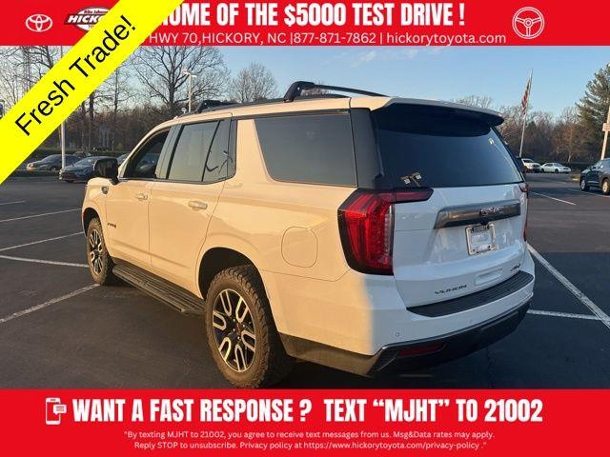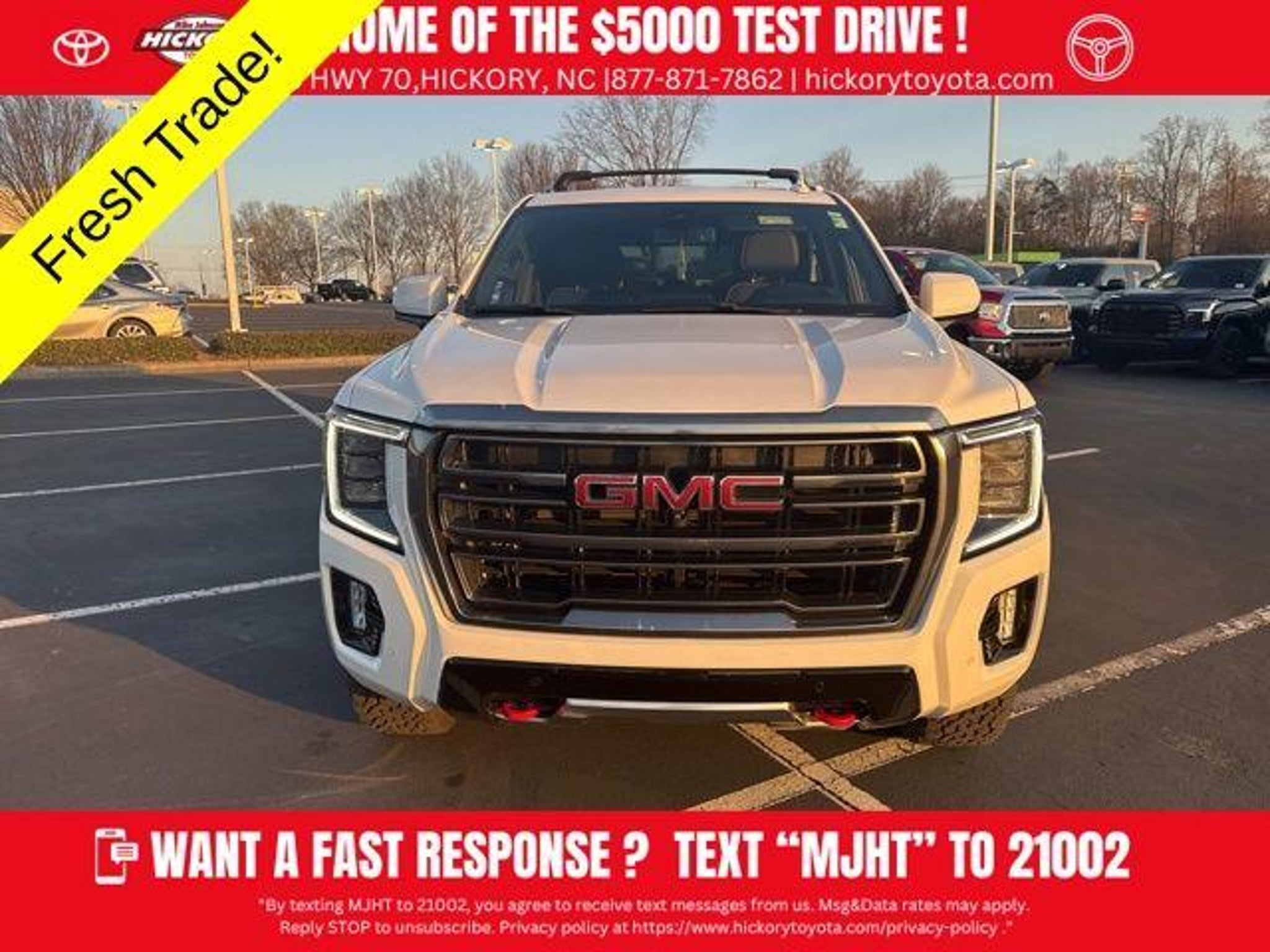 Summit White 2021 GMC Yukon AT4 4WD 10-Speed Automatic with Overdrive EcoTec3 5.3L V8 New Price! Recent Arrival! Odometer is 9376 miles below market average! **CLEAN CARFAX**, **SERVICED AT FRANCHISE DEALER!!**, *LOCALLY OWNED*, *NAVIGATION/NAV/GPS*, *LEATHER*, HEATED SEATS, *SUNROOF/MOONROOF*, *REMOTE START*, *SECOND ROW CAPTAIN CHAIRS*. Before you buy, give Mike a try! More info at