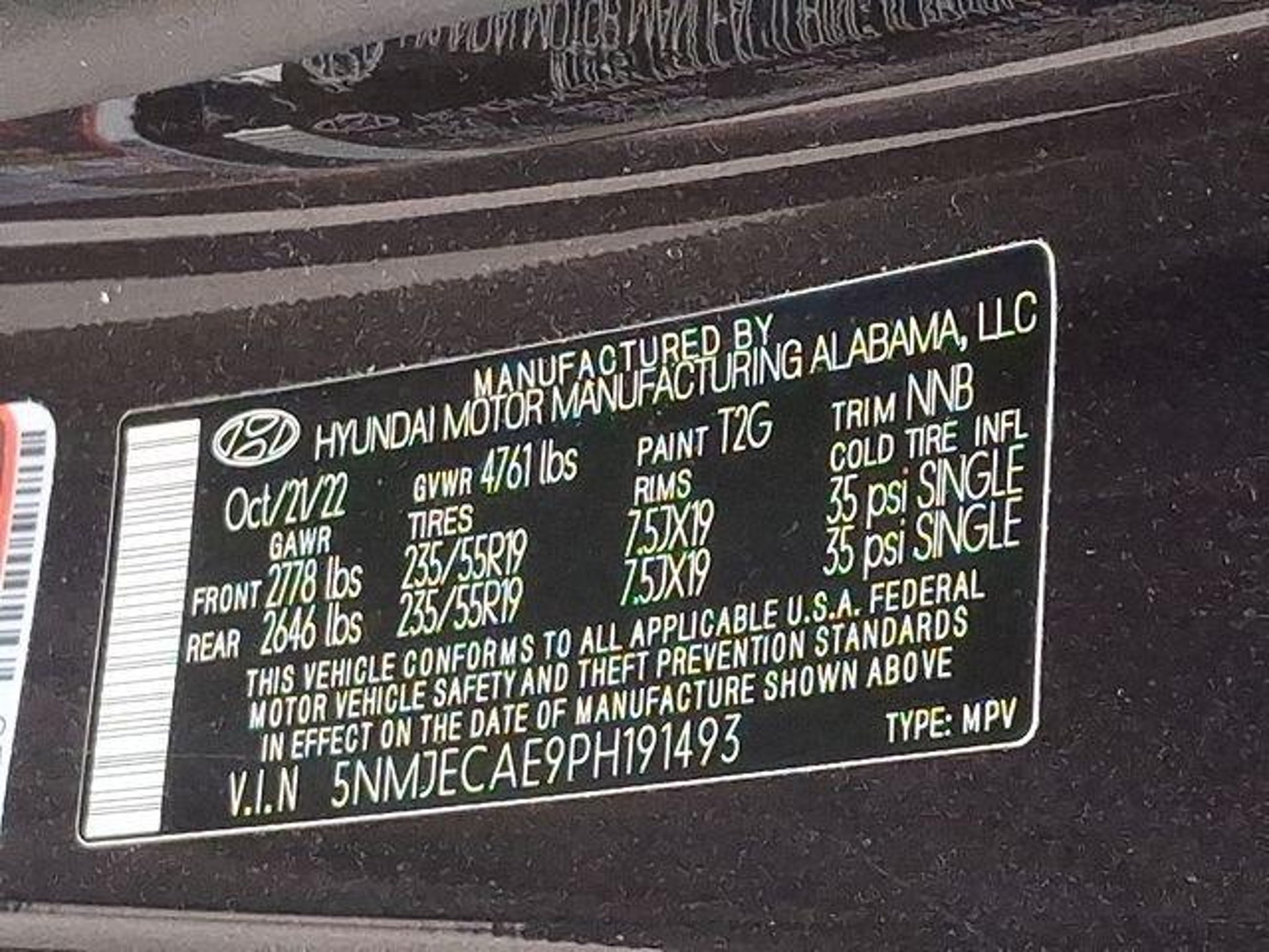 VIN 5NMJECAE9PH191493