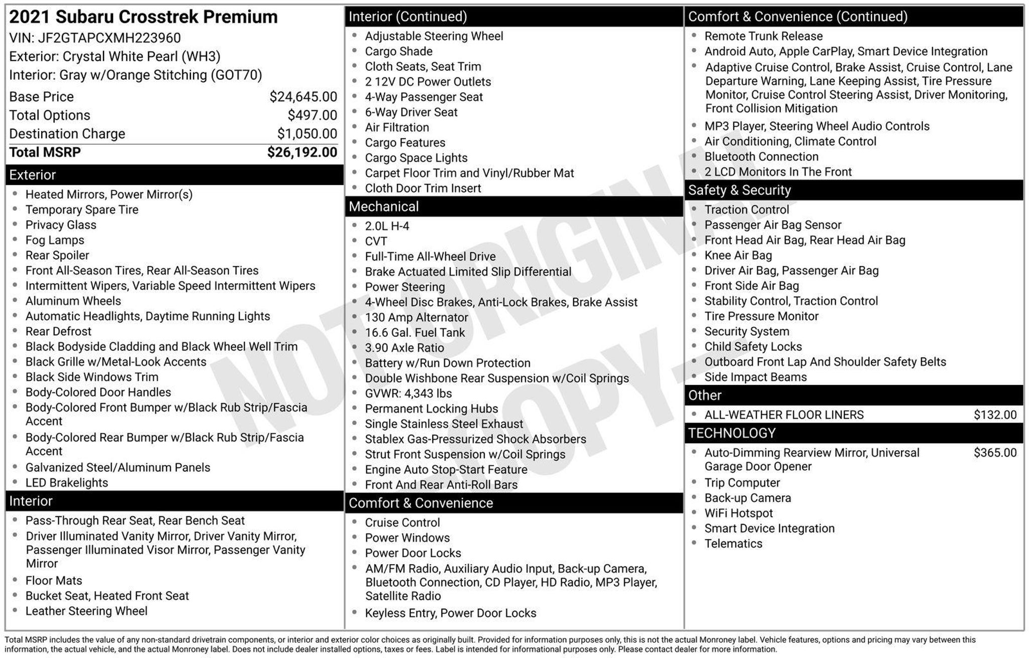 **FREE ONE YEAR MAINTENANCE!! ** 2021 Subaru Crosstrek Premium Crystal White Pearl AWD 2.0L DOHC Lineartronic CVT Recent Arrival! Odometer is 8011 miles below market average! 28/33 City/Highway MPG Come to Call us at For help with any of our departments. Awards: * ALG Residual Value Awards, Residual Value Awards https://