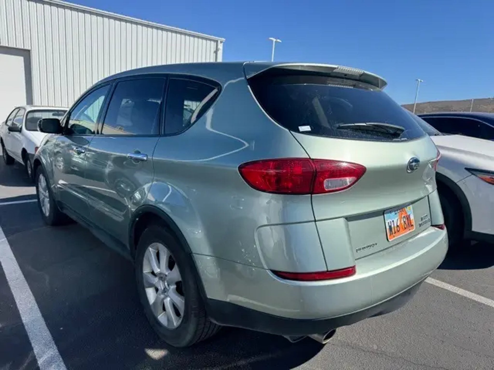 Welcome to Findlay Subaru in St George on the Savings Side of the Freeway. Please contact us at the phone number listed above for any questions that you might have and to check the availability of this vehicle. This Subaru B9 Tribeca is equipped with the following options:18 7-Spoke Aluminum Alloy Wheels, 3.58 Axle Ratio, 4-Wheel Disc Brakes, 9 Speakers, ABS brakes, Air Conditioning, Alloy wheels, AM/FM radio, AM/FM Stereo w/6 Disc In-Dash CD Changer, Anti-whiplash front head restraints, Automatic temperature control, Bumpers: body-color, CD player, Driver door bin, Driver vanity mirror, Dual front impact airbags, Dual front side impact airbags, Electronic Stability Control, Four wheel independent suspension, Front anti-roll bar, Front Bucket Seats, Front Center Armrest w/Storage, Front dual zone A/C, Front fog lights, Front Heated Bucket Seats, Front reading lights, Garage door transmitter: Homelink, Heated door mirrors, Heated front seats, Illuminated entry, Leather Seat Surfaces, Leather Shift Knob, Leather steering wheel, Low tire pressure warning, Occupant sensing airbag, Outside temperature display, Overhead airbag, Overhead console, Panic alarm, Passenger door bin, Passenger vanity mirror, Power door mirrors, Power driver seat, Power moonroof, Power passenger seat, Power steering, Power windows, Rear anti-roll bar, Rear reading lights, Rear seat center armrest, Rear window defroster, Rear window wiper, Remote keyless entry, Roof rack, Security system, Speed control, Speed-sensing steering, Split folding rear seat, Spoiler, Steering wheel mounted audio controls, Tachometer, Tilt steering wheel, Traction control, Trip computer, Turn signal indicator mirrors, and Variably intermittent wipers. CARFAX One-Owner. AWD 5-Speed Automatic Electronic with Overdrive 3.0L H6 DOHC Odometer is 33257 miles below market average! Recent Arrival!