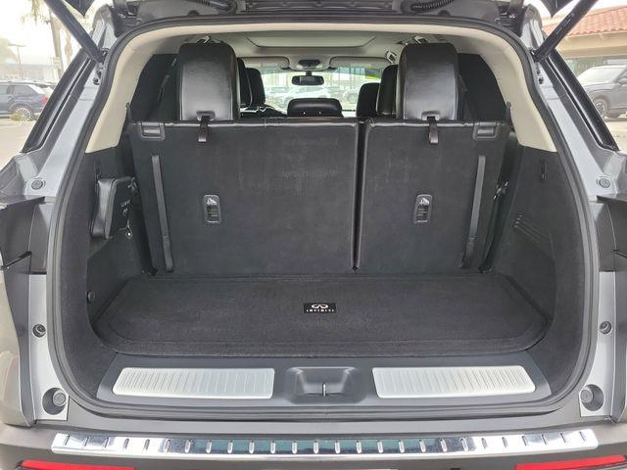 CARFAX One-Owner. Clean CARFAX. Cargo Package (Cargo Mat (Reversible) and First Aid Kit), 3rd row seats: bench, 4-Wheel Disc Brakes, 4.334 Axle Ratio, 9 Speakers, ABS brakes, Air Conditioning, Alloy wheels, AM/FM radio: SiriusXM, Anti-whiplash front head restraints, Auto High-beam Headlights, Auto-dimming door mirrors, Auto-dimming Rear-View mirror, Automatic temperature control, Brake assist, Bumpers: body-color, Delay-off headlights, Driver door bin, Driver vanity mirror, Dual front impact airbags, Dual front side impact airbags, Electronic Stability Control, Emergency communication system: INFINITI InTouch w/1-year trial, Floor Mats, Four wheel independent suspension, Front anti-roll bar, Front Bucket Seats, Front Center Armrest, Front dual zone A/C, Front reading lights, Fully automatic headlights, Garage door transmitter: HomeLink, Heated & Cooled Front Bucket Seats, Heated door mirrors, Heated front seats, Heated steering wheel, Illuminated entry, Knee airbag, Leather Shift Knob, Leather steering wheel, Leather-Appointed Seating Surfaces, Literature Kit, Low tire pressure warning, Memory seat, Navigation system: INFINITI InTouch Navigation, Occupant sensing airbag, Outside temperature display, Overhead airbag, Overhead console, Panic alarm, Passenger door bin, Passenger vanity mirror, Power door mirrors, Power driver seat, Power Liftgate, Power moonroof, Power passenger seat, Power steering, Power windows, Radio data system, Radio: AM/FM Audio System, Rain sensing wipers, Rear air conditioning, Rear anti-roll bar, Rear reading lights, Rear seat center armrest, Rear side impact airbag, Rear window defroster, Rear window wiper, Reclining 3rd row seat, Remote keyless entry, Roof rack: rails only, Security system, Speed control, Speed-sensing steering, Speed-Sensitive Wipers, Splash Guards, Split folding rear seat, Spoiler, Steering wheel memory, Steering wheel mounted audio controls, Tachometer, Telescoping steering wheel, Tilt steering wheel, Traction control, Trip computer, Turn signal indicator mirrors, Variably intermittent wipers, Ventilated front seats, and Wheels: 20 x 8J Sporty Machined Aluminum Alloy. Graphite Shadow/Black Obsidian 2022 INFINITI QX60 LUXE FWD 9-Speed Automatic 3.5L V6 Recent Arrival! 21/26 City/Highway MPG Welcome to Tim Moran Ford! Located in Hemet, CA, Tim Moran Ford is proud to be one of the premier dealerships in the area. From the moment you walk into our showroom, you'll know our commitment to Customer Service is second to none. We strive to make your experience with