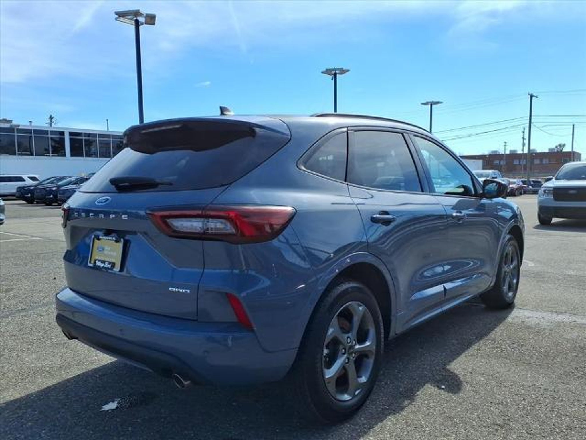 This vehicle is a 2024 Ford Escape ST-Line with a low mileage of 16,725 miles. It has an all wheel drive, 1.5 liter EcoBoost Turbo I3 180hp 199 lb-ft engine, direct injection, and a vapor blue exterior. It has an ebony w/red stitching interior and a crash test rating of 5 out of 5 stars. Vehicle features include touch screen display, Bluetooth audio connection, blind spot sensor, hill start assist, on demand four wheel drive, navigation system with voice recognition, and navigation with touch screen display. This car also has a fuel economy of 26 mpg in the city and 32 mpg on the highway. Additionally, it has a crash test rating of 5 out of 5 stars and comes with a carfax report available for review. Contact Details: Village Ford, 23535 Michigan Ave, Dearborn, MI, 48124, internetleads@dealermail.com, (313) 565-3900.