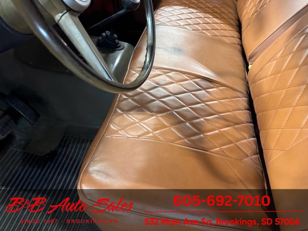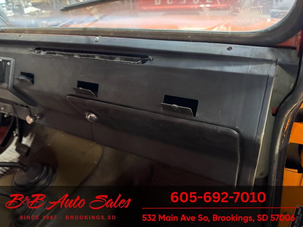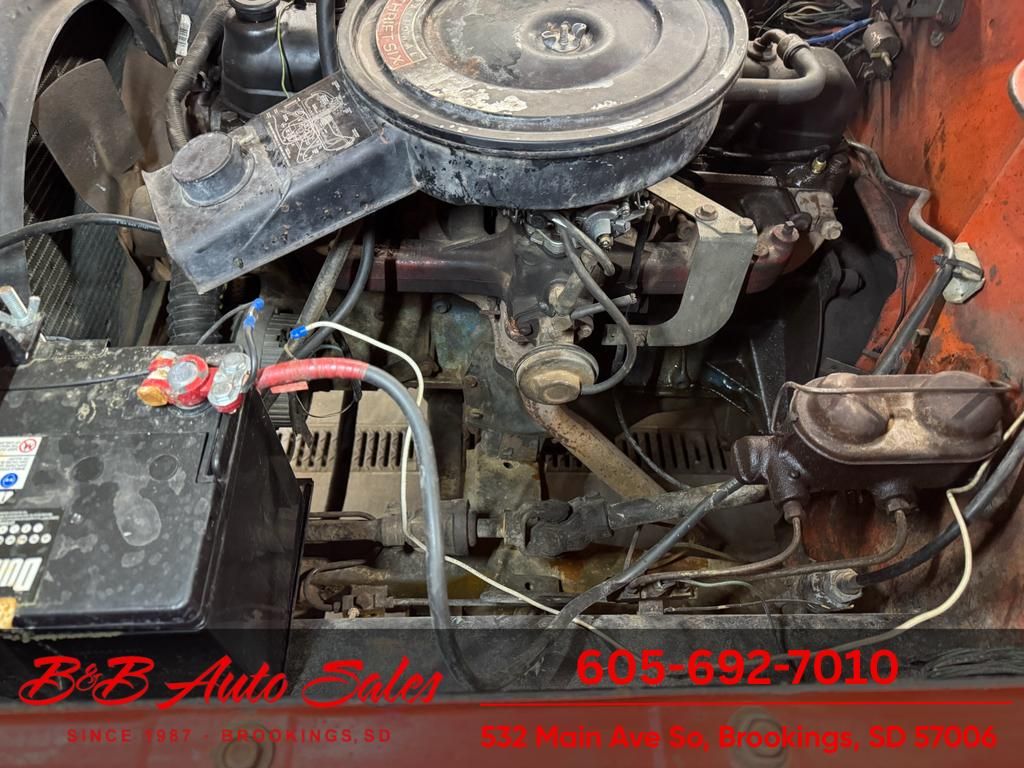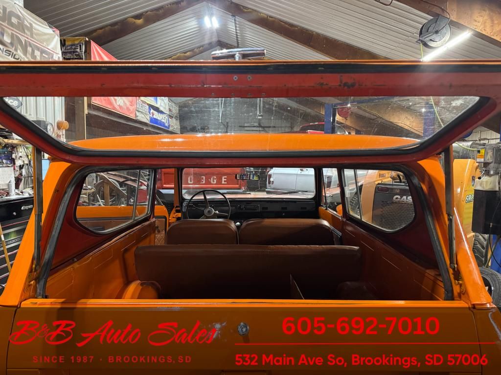 A driver quality Scout that has been sitting for awhile. A truck you can drive as is or take to the next level as pretty solid and original. MECHANICAL- It has been thru our inspection and we replaced the valve cover, and spark plugs. Does run a little rough, compression is around 70 on all cylinders. EXTERIOR- The body has had a repaint and is an ametuar job, still has some dents and dirt nibs in paint. INTERIOR- The interior is in nice shape with redone seats and door panels. Is missing dash pad. Floor mat is original. UNDERNEATH- The body is pretty solid but does have front cab braces rusty and some rust issues in the floor.