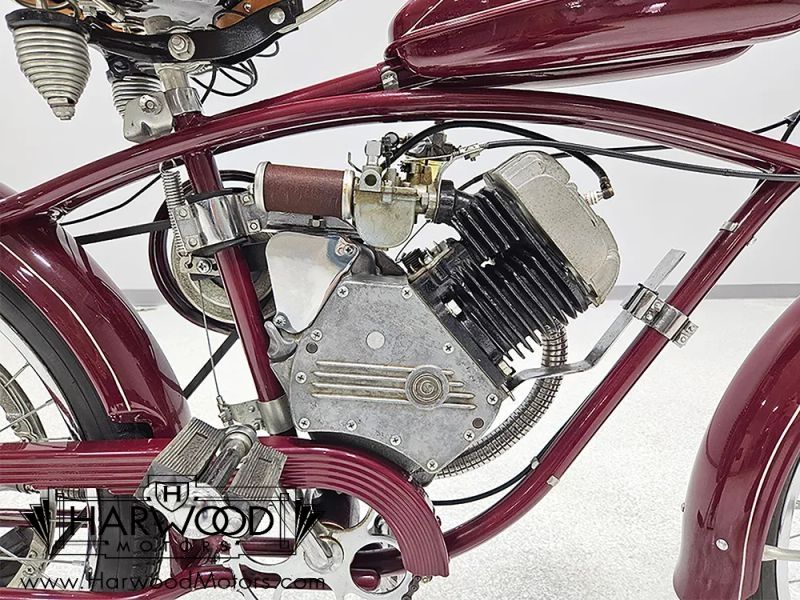 Restored by Memory Cycles in Toledo, OH. Correct 138cc single cylinder. This one was purpose-built by Whizzer and is not someone else's bicycle with a motor attached. Great colors, nice details, and works properly. Includes original-style exhaust pipe and muffler to replace flex-tube style currently on the bike.