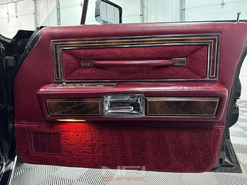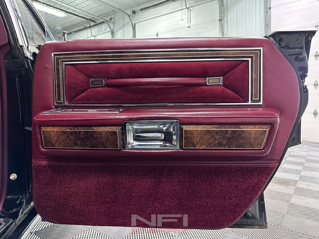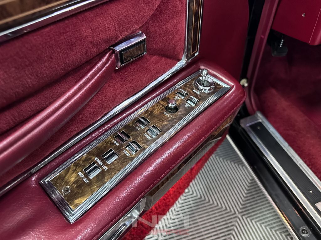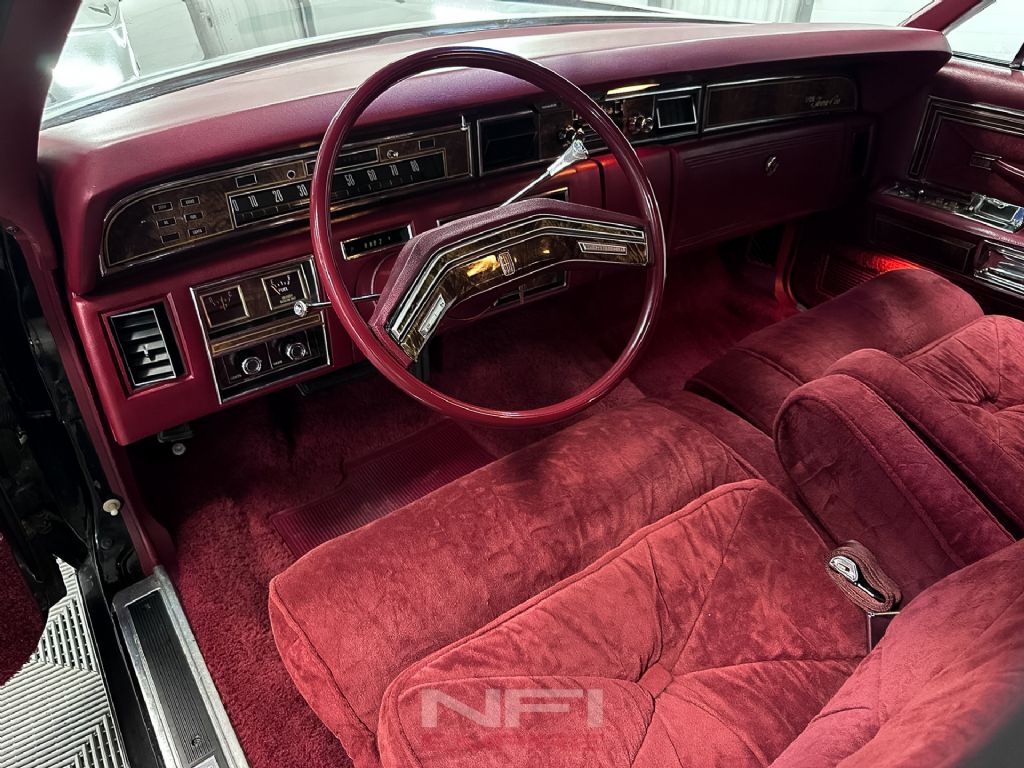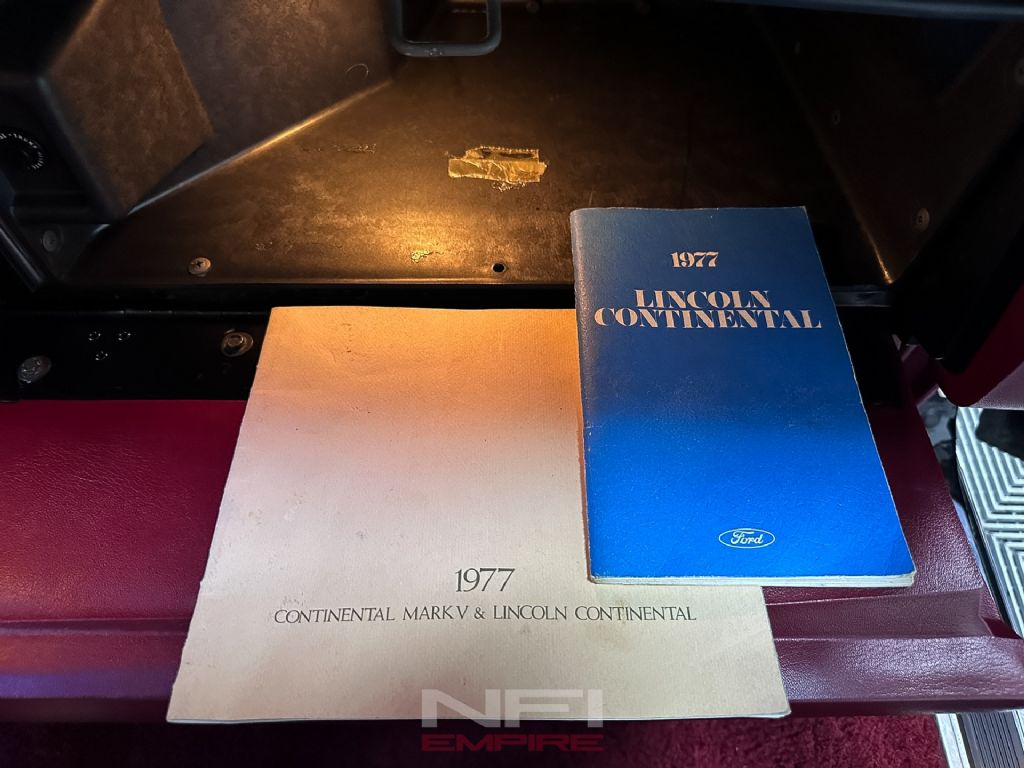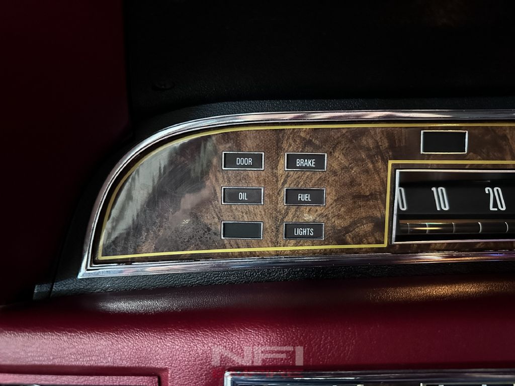 This example has the right presentation for the period. The black exterior gives it a formal, imposing look, while the red interior brings in the bold color and texture that defined the decade. It's a combination that feels unmistakably 1970s in the best way, and far more memorable than the more common subdued trims. Inside, the Town Car experience is about space, softness, and effortless cruising comfort, backed here by a factory 8-track player that adds to the car's time-capsule character rather than taking away from it. Factory literature for 1977 highlights Lincoln's focus on room, ride quality, automatic climate control, and available Quadrasonic 8-track audio, all of which helped define the Continental's luxury mission.