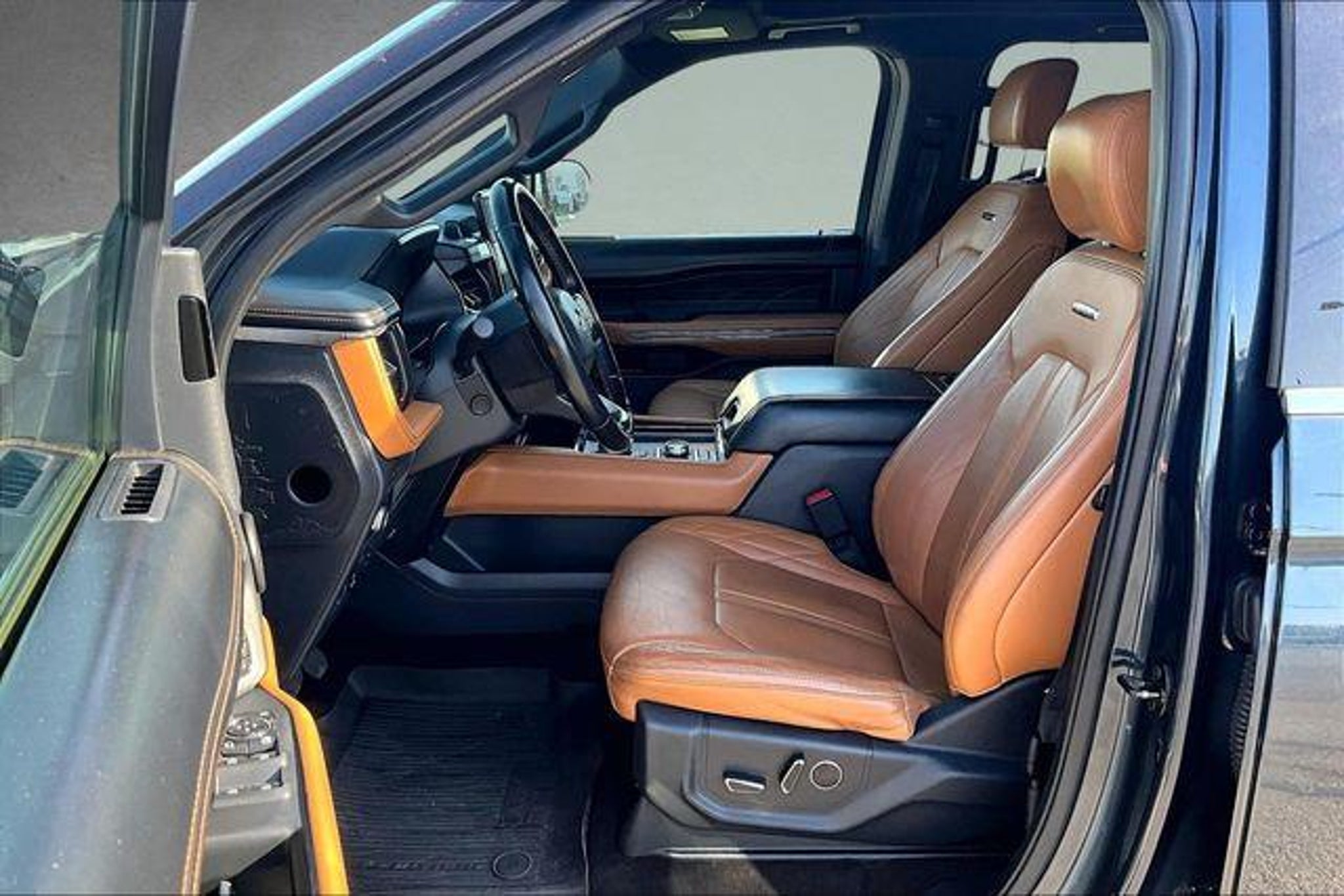 Command the road in luxury with this Clean CARFAX 1-Owner 2022 Ford Expedition Max Platinum 4x4, finished in stunning Stone Blue Metallic over premium Carmelo leather heated and ventilated bucket seats. This full-size SUV delivers exceptional power, advanced technology, and first-class comfort perfect for families, road trips, and executive travel. Bold Design & Premium Presence The extended-length Expedition Max Platinum offers maximum cargo space and third-row comfort without compromising style. Riding on 22-inch machine aluminum wheels, this SUV stands out with chrome roof rails, power running boards, and intelligent zone lighting for added visibility and convenience. A breathtaking Panoramic Vista Roof floods the cabin with natural light, enhancing the already refined interior atmosphere. Power & 4x4 Capability Built for confidence in all conditions, this 4x4 Expedition Max Platinum combines smooth power delivery with impressive towing capability. Whether navigating city streets or weekend adventures, it provides the strength and control you expect from a premium full-size Ford SUV. Advanced Technology & Connectivity Stay seamlessly connected with SYNC 4, featuring enhanced voice recognition and an intuitive touchscreen interface. Enjoy immersive sound through the premium B&O Unleashed Audio System, delivering crystal-clear audio throughout the spacious cabin. This Expedition is equipped with Ford BlueCruise, enabling hands-free highway driving on designated Blue Zone highways, paired with Co-Pilot360 Active 2.0 for next-level driver assistance. Additional tech highlights include: 360-Degree Camera for enhanced visibility Built-in Wi-Fi capability Rain-Sensing Wipers Perimeter Alarm SOS Post-Crash Alert System First-Class Interior Comfort Inside, the Carmelo leather cabin offers heated and ventilated front bucket seats plus second-row heated seats, ensuring comfort for every passenger. Tri-Zone Automatic Climate Control allows personalized temperature settings across all rows, making long drives effortless for everyone onboard. The Expedition Maxs extended wheelbase provides exceptional third-row legroom and expansive cargo capacity ideal for large families, sports gear, or travel luggage. Safety & Peace of Mind Equipped with Ford Co-Pilot360 Active 2.0, this Platinum model includes advanced safety technologies designed to enhance driver awareness and accident prevention. Combined with the 360-degree camera system and BlueCruise capability, this SUV delivers confidence on every journe