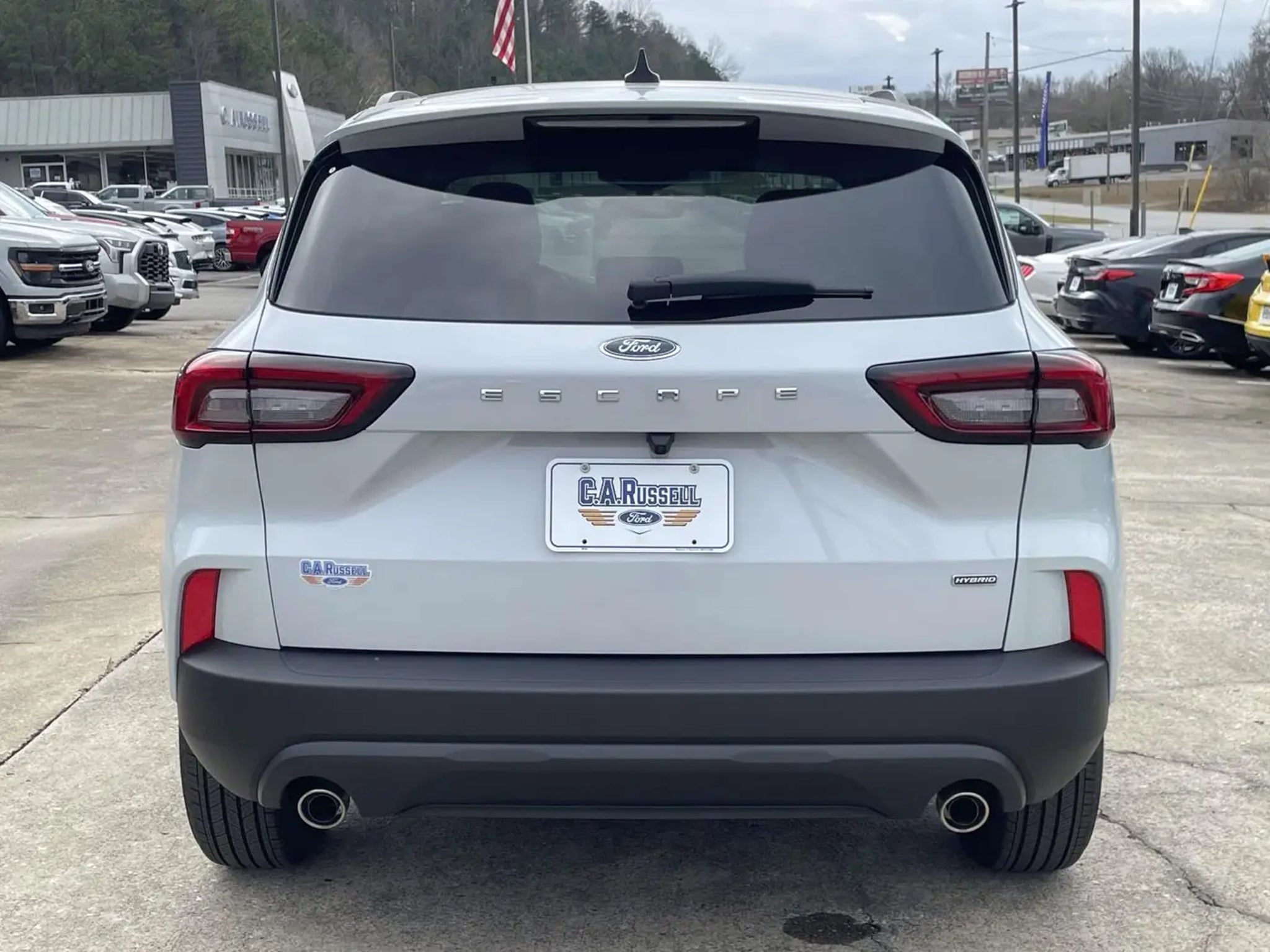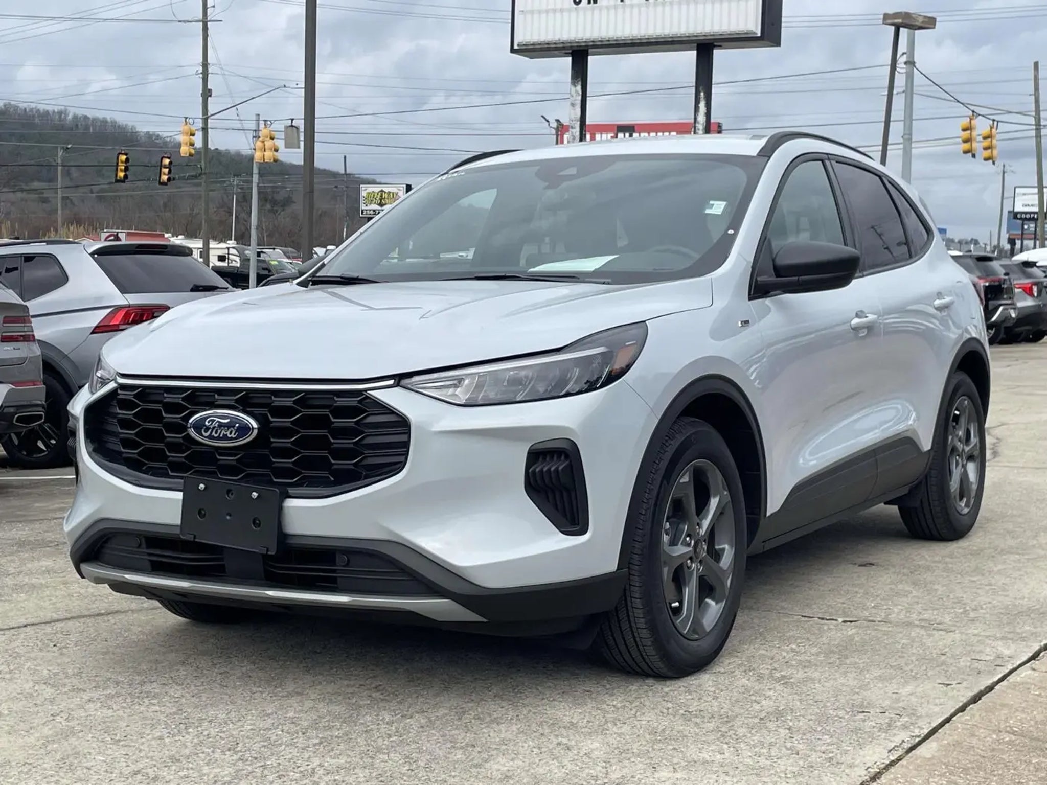 New Price! CARFAX One-Owner. Clean CARFAX. Silver Metallic 2025 Ford Escape Hybrid ST-Line FWD 4D Sport Utility 2.5L iVCT eCVT FORD BLUE CERTIFIED, **CLEAN CARFAX**, **ONE OWNER**, **NON-SMOKER**, **LOCAL TRADE**, **MULTI-ZONE CLIMATE CONTROL**, **BACKUP CAMERA**, BLIND SPOT MONITOR, **CRUISE CONTROL**, **AUTOMATIC**, **BLUETOOTH**, **KEYLESS ENTRY**, **POWER LOCKS**, **POWER WINDOWS**, **PREMIUM WHEELS**, **SECURITY SYSTEM**, REMAINDER OF FACTORY WARRANTY, BOUGHT AND SERVICED HERE, POWER DRIVER SEAT, 2.5L iVCT, 2.91 Axle Ratio, 4-Wheel Disc Brakes, ABS brakes, AM/FM radio: SiriusXM, Auto High-beam Headlights, Automatic temperature control, Brake assist, Bumpers: body-color, Compass, Delay-off headlights, Dual front impact airbags, Dual front side impact airbags, Electronic Fuel Door Release, Electronic Stability Control, Emergency communication system: SYNC 4 911 Assist, Equipment Group 301A, Four wheel independent suspension, Front Bucket Seats, Front Center Armrest, Front dual zone A/C, Fully automatic headlights, Knee airbag, Low tire pressure warning, Neutral Towing Capability, Occupant sensing airbag, Outside temperature display, Overhead airbag, Overhead console, Pedestrian Alert Sounder, Power door mirrors, Power driver seat, Power windows, Rear anti-roll bar, Rear window defroster, Rear window wiper, Remote keyless entry, Speed control, Speed-sensing steering, Speed-Sensitive Wipers, Split folding rear seat, Spoiler, Sport steering wheel, Steering wheel mounted audio controls, SYNC 4, Tachometer, Telescoping steering wheel, Tilt steering wheel, Traction control, Variably intermittent wipers, Vinyl/Cloth Front Sport Contour Bucket Seats, Wheels: 18 Rock Metallic Painted Aluminum. As a premier Alabama Ford dealer, we have a huge selection of new and used vehicles from which to choose. C. A. Russell Ford online and offline customers enjoy vehicle specials every day. We offer Ford service & parts, an online inventory, and outstanding financing options, making C. A. Russell Ford a preferred dealer serving Anniston, Jacksonville, Gadsden, Heflin, Talladega, Oxford, Centre, Pell City, Piedmont, Lincoln, Ohatchee, Rainbow City, Lineville, Hoover, Villa Rica, Newnan, Bowdon, Tallapoosa, Harvest and Delta area Ford buyers. Ready to set up a test drive? Visit C. A. Russell Ford in Anniston, AL today! Whether you are looking for a new or used Ford car, truck, or SUV you will find it here. We have helped many customers from Anniston, Jacksonville, Gadsden, Heflin, Talladega, Oxford, Centre, Pell City, Pi
