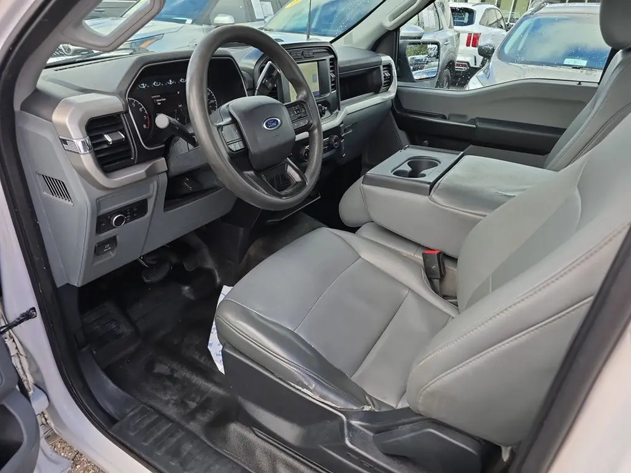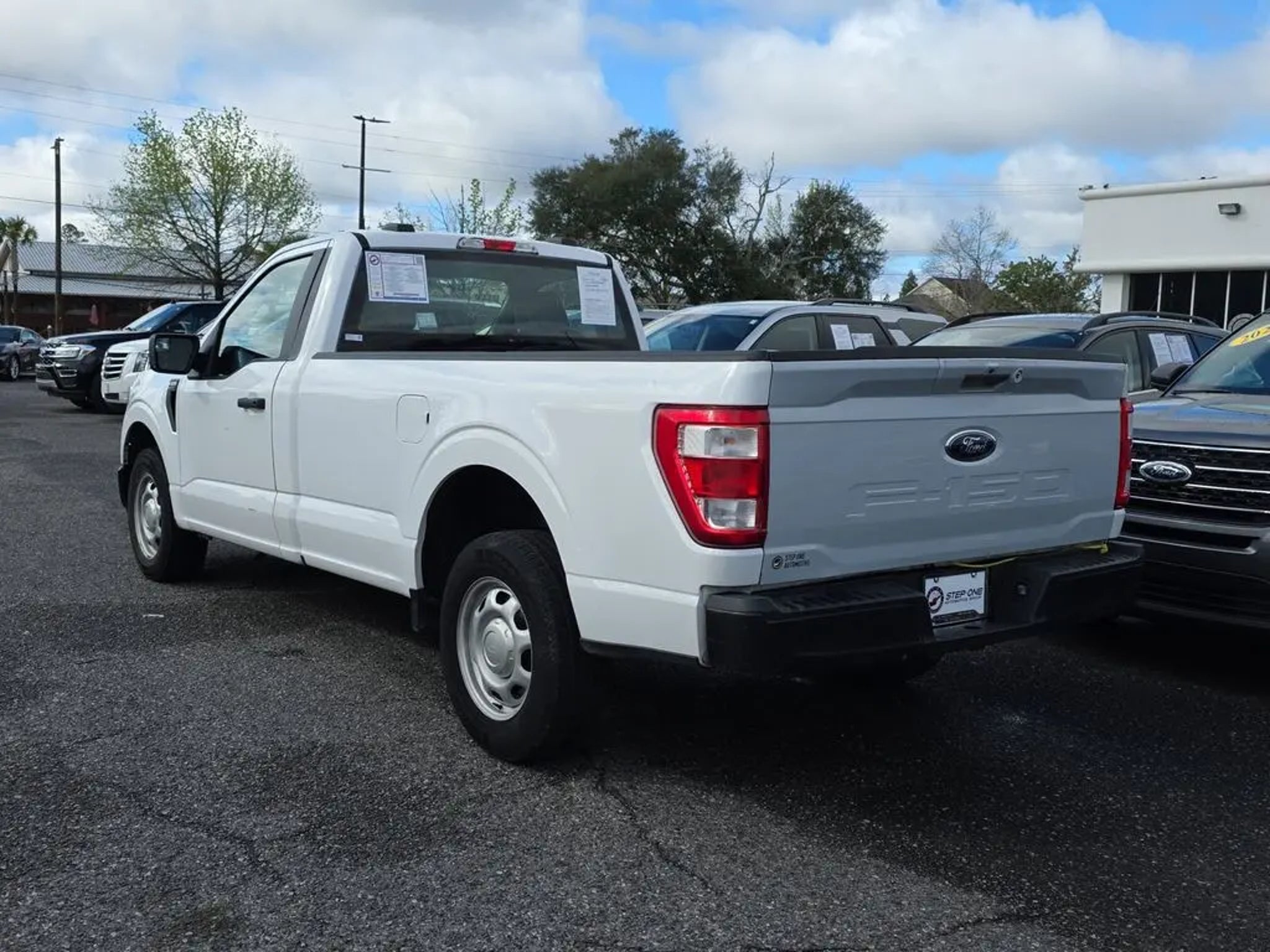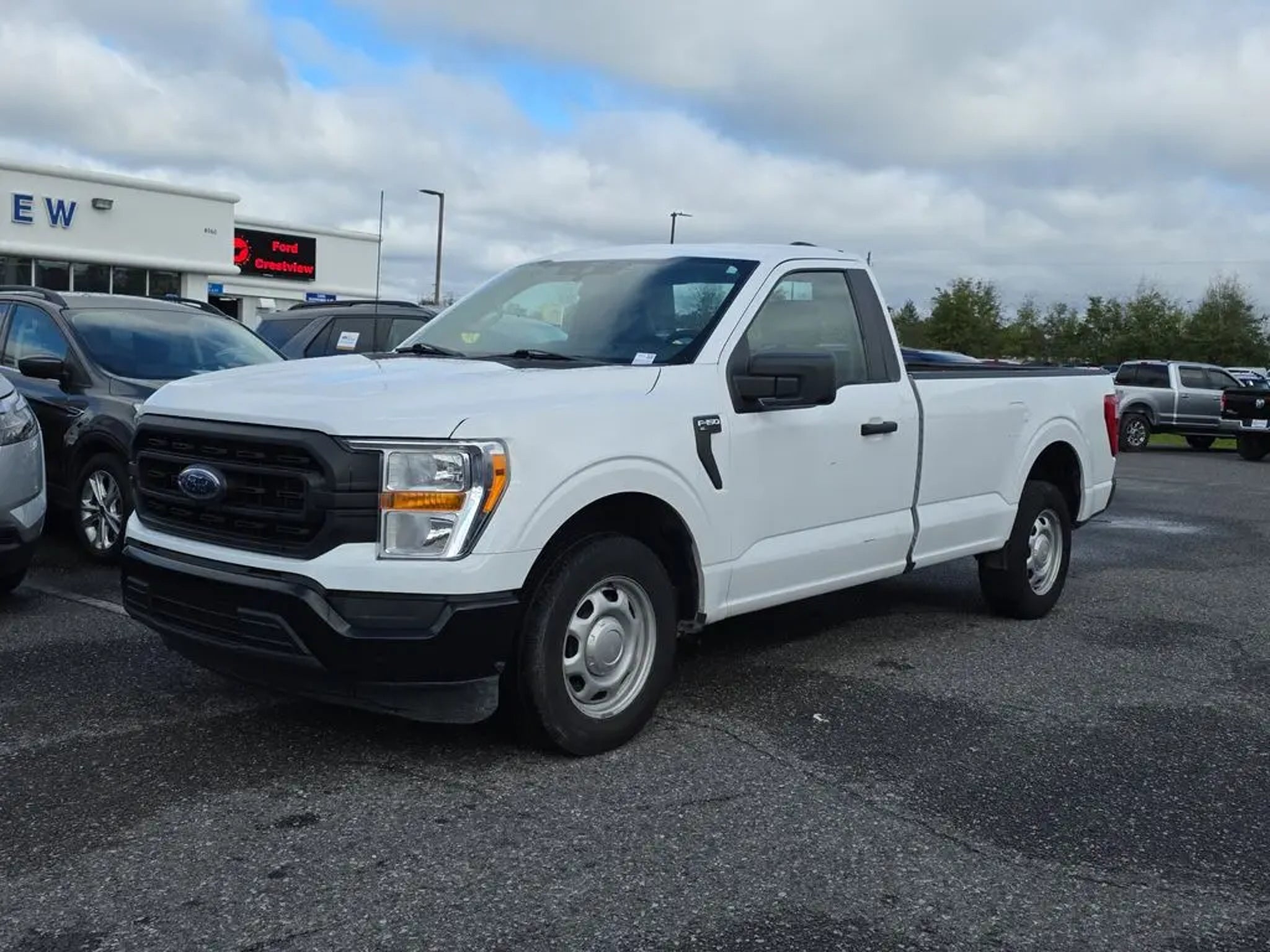 Equipment Group 100A Standard, 3.55 Axle Ratio, 4 Speakers, 4-Wheel Disc Brakes, ABS brakes, Air Conditioning, AM/FM radio, AM/FM Stereo w/4 Speakers, Auto High Beam, Auto High-beam Headlights, Brake assist, Cloth 40/20/40 Front Seat, Compass, Delay-off headlights, Driver door bin, Dual front impact airbags, Dual front side impact airbags, Electronic Stability Control, Emergency communication system: SYNC 4 911 Assist, Exterior Parking Camera Rear, Front anti-roll bar, Front Center Armrest, Front reading lights, Front wheel independent suspension, Fully automatic headlights, Lane-Keeping System, Low tire pressure warning, Occupant sensing airbag, Outside temperature display, Overhead airbag, Overhead console, Passenger door bin, Passenger vanity mirror, Power steering, Pre-Collision Assist w/Automatic Emergency Braking, Radio data system, Rear step bumper, Rear-View Camera, Speed-sensing steering, Steering wheel mounted audio controls, SYNC 4, Tachometer, Telescoping steering wheel, Tilt steering wheel, Traction control, Trip computer, Variably intermittent wipers, Voltmeter, and Wheels: 17 Silver Steel. Oxford White 2022 Ford F-150 XL RWD 10-Speed Automatic 3.3L V6