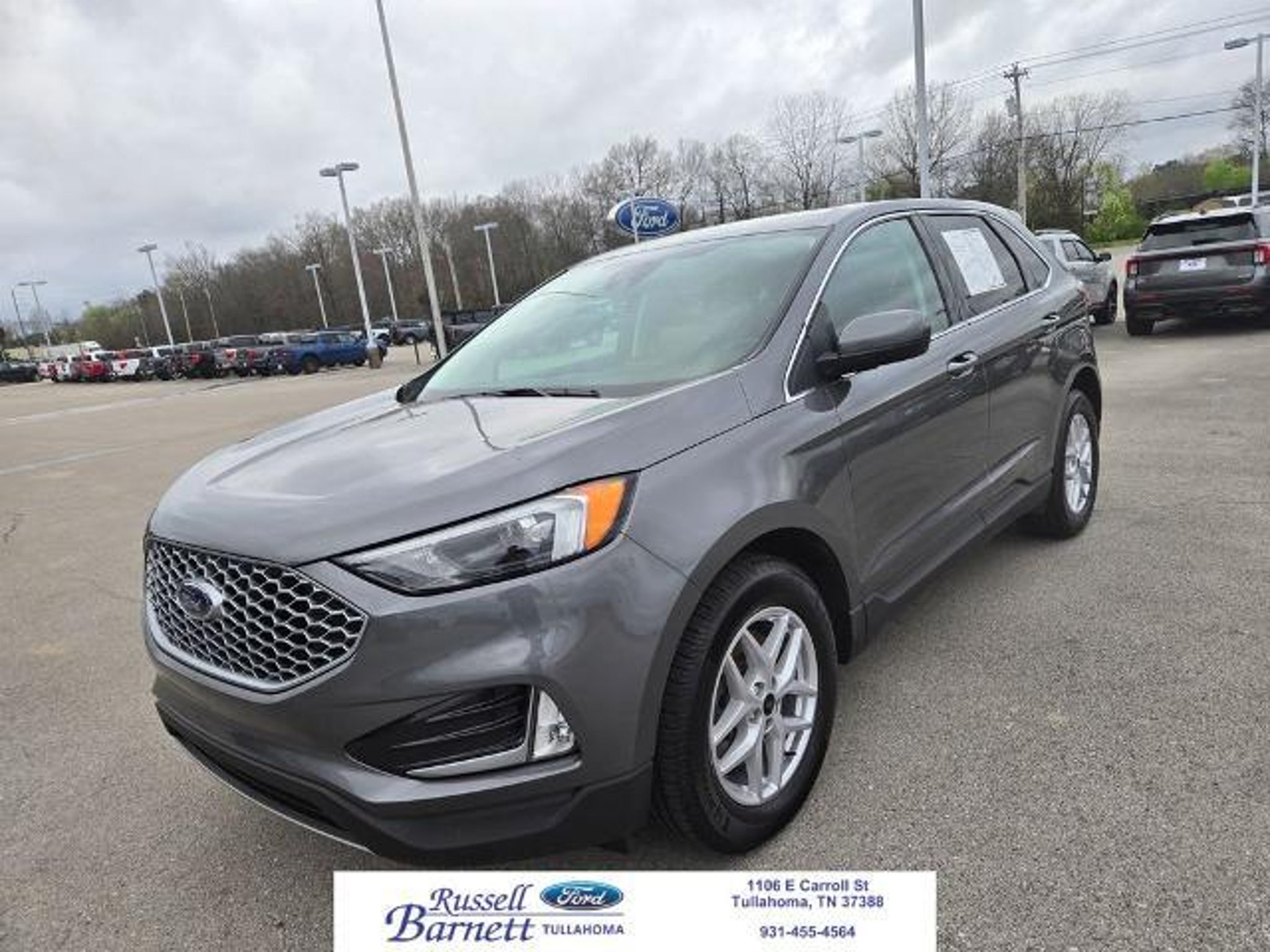 Carbonized Gray Metallic 2023 Ford Edge SEL AWD 8-Speed Automatic EcoBoost 2.0L I4 GTDi DOHC Turbocharged VCT AWD, 110V/150W AC Power Outlet, Bumpers: body-color, Class II Trailer Tow Package, Convenience Package, Equipment Group 201A, Fog Lamps w/Iconic Silver Bezel, Knee airbag, Perimeter Alarm, Power Liftgate, Remote Start System, Speed control, Universal Garage Door Opener (UGDO), Wireless Charging Pad. This vehicle qualifies for the Russell Barnett Limited Lifetime Warranty.* Special Pricing requires financing with one of our approved lenders. 21/28 City/Highway MPG Let us take the worry out of your next vehicle purchase. This vehicle is ready to take you home today. Call us at 931-455-4564 before this opportunity passes you up. (Located at Ford of Tullahoma.)