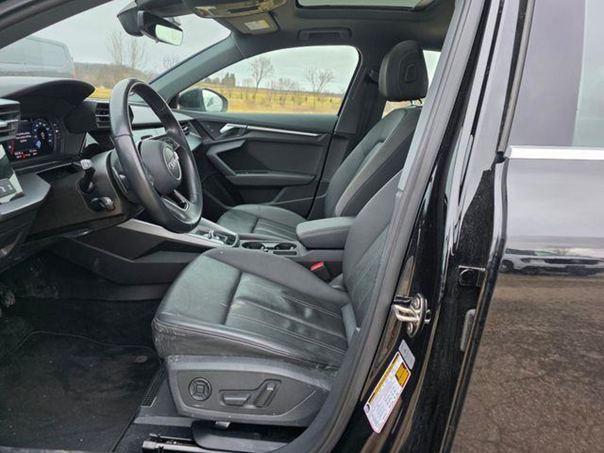 Black 2023 Audi A3 40 Premium FrontTrak 7-Speed Automatic S tronic 2.0L 4-Cylinder TFSI Fresh Arrival, AWD / 4WD / 4X4, Cruise Control, Bluetooth, Navigation System, Backup Camera, SiriusXM, Blind Spot Monitor, Heated Seats, Leather, Moonroof / Sunroof, Power Driver Seat, Rear USB Ports, Leather, ABS brakes, Alloy wheels, Electronic Stability Control, Emergency communication system, Front dual zone A/C, Heated door mirrors, Heated Front Bucket Seats, Heated front seats, Illuminated entry, Low tire pressure warning, Power moonroof, Remote keyless entry, Traction control, 4-Wheel Disc Brakes, Air Conditioning, AM/FM radio, Auto High-beam Headlights, Automatic temperature control, Brake assist, Bumpers: body-color, Delay-off headlights, Driver door bin, Driver vanity mirror, Dual front impact airbags, Dual front side impact airbags, Exterior Parking Camera Rear, Four wheel independent suspension, Front anti-roll bar, Front Bucket Seats, Front Center Armrest, Front reading lights, Fully automatic headlights, Knee airbag, Leather Seating Surfaces, Leather steering wheel, Occupant sensing airbag, Outside temperature display, Overhead airbag, Overhead console, Panic alarm, Passenger door bin, Passenger vanity mirror, Power door mirrors, Power driver seat, Power passenger seat, Power steering, Power windows, Radio data system, Radio: Audi Sound System, Rain sensing wipers, Rear air conditioning, Rear anti-roll bar, Rear fog lights, Rear reading lights, Rear seat center armrest, Rear side impact airbag, Rear window defroster, Speed control, Speed-sensing steering, Speed-Sensitive Wipers, Split folding rear seat, Steering wheel mounted audio controls, Tachometer, Telescoping steering wheel, Tilt steering wheel, Trip computer, Turn signal indicator mirrors, Variably intermittent wipers, Wheels: 17 5-Arm Design, Leather, ABS brakes, Alloy wheels, Electronic Stability Control, Emergency communication system, Front dual zone A/C, Heated door mirrors, Heated Front Bucket Seats, Heated front seats, Illuminated entry, Low tire pressure warning, Power moonroof, Remote keyless entry, Traction control. Recent Arrival! 28/38 City/Highway MPG