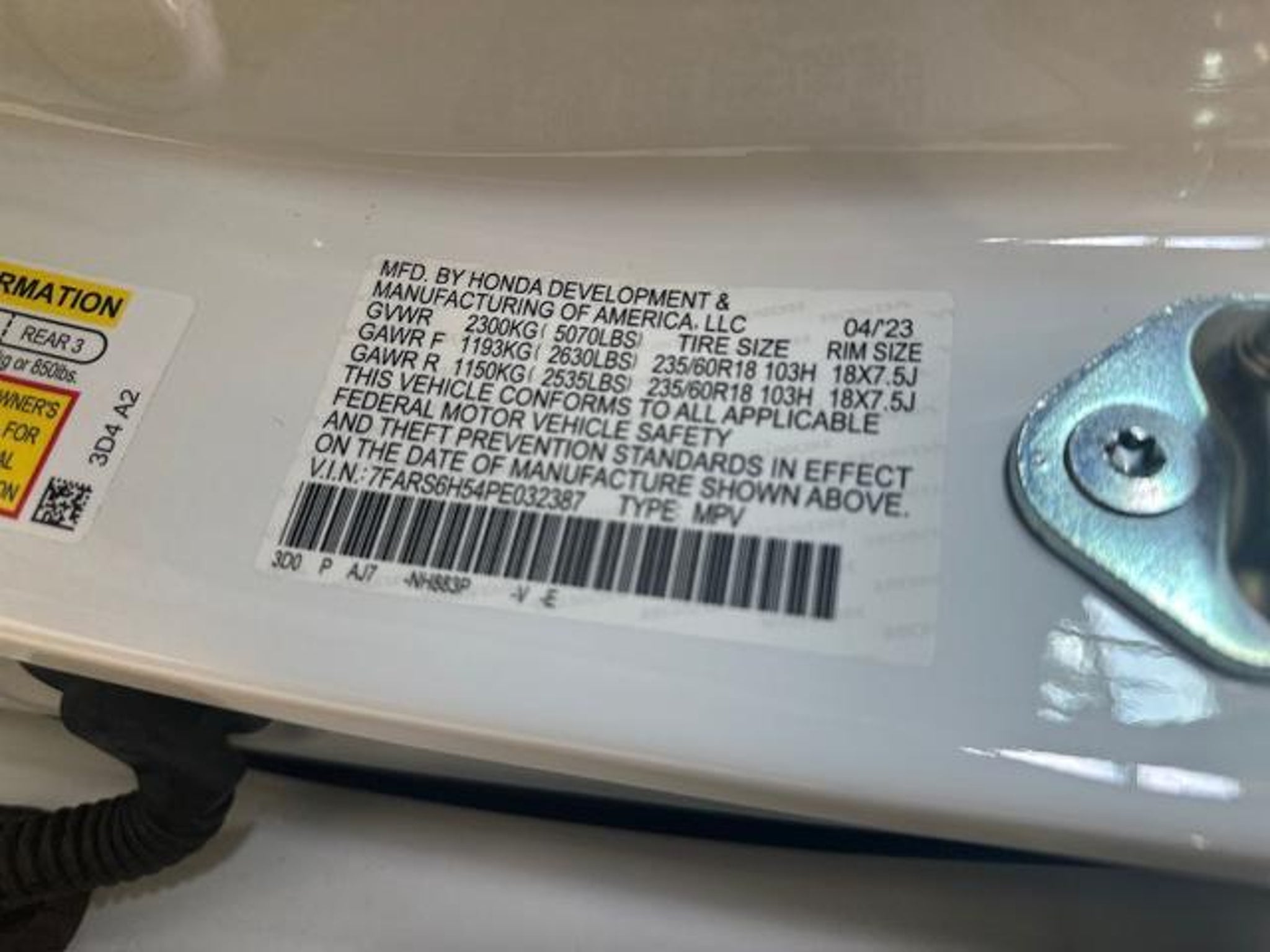 VIN 7FARS6H54PE032387