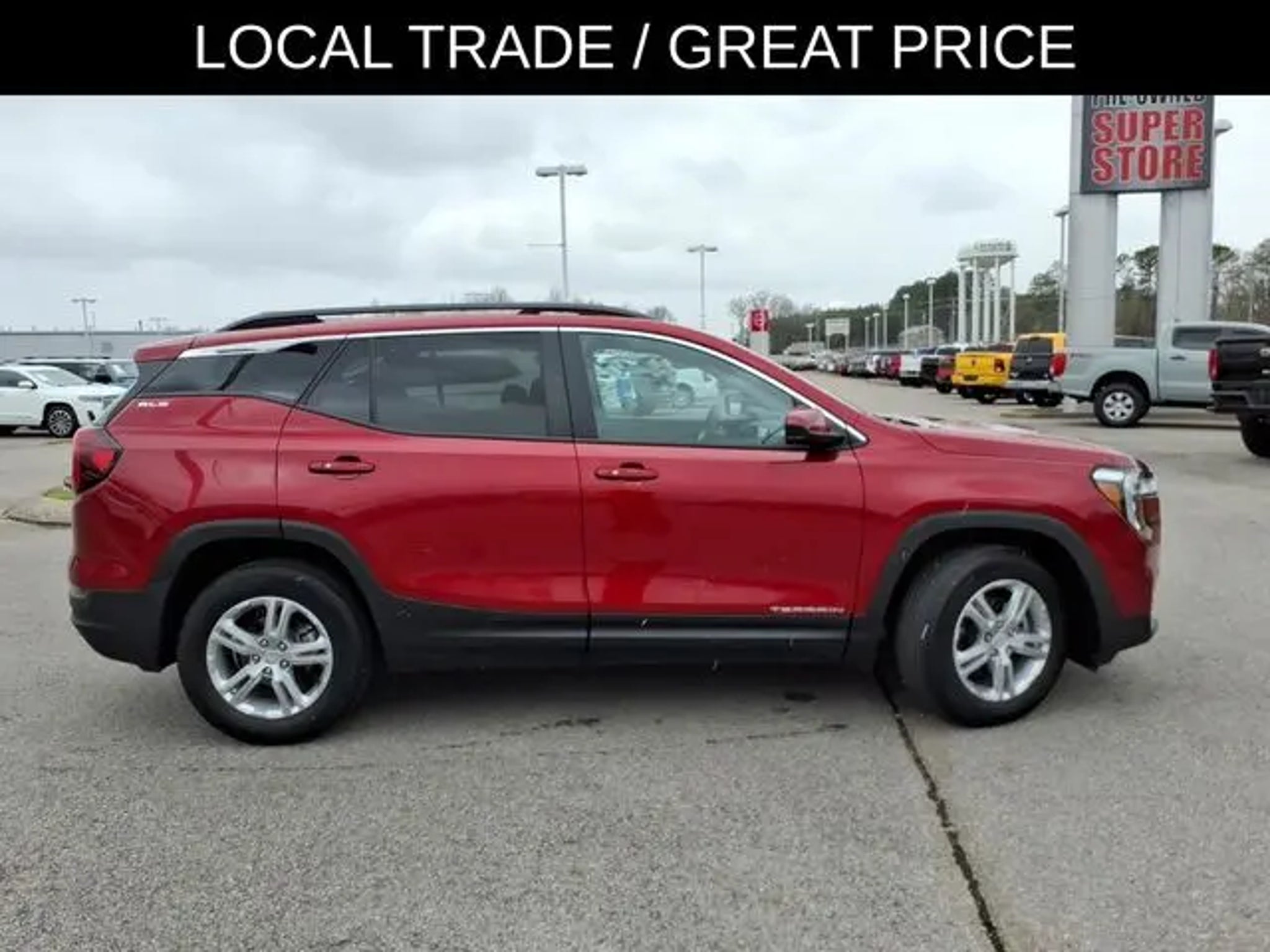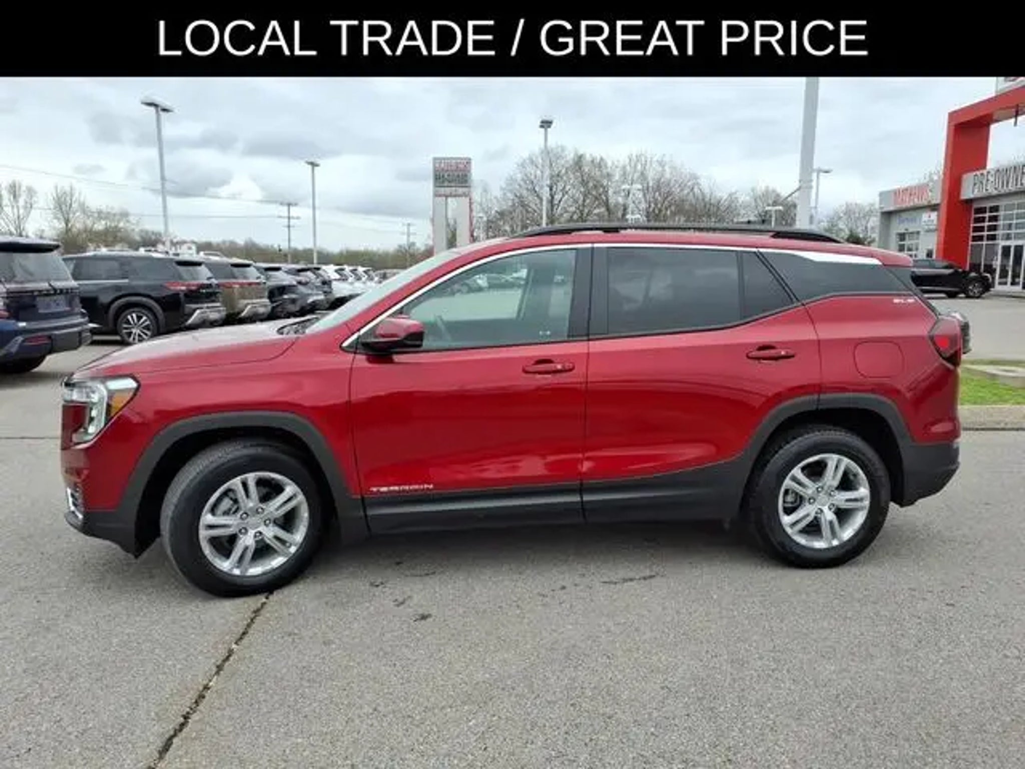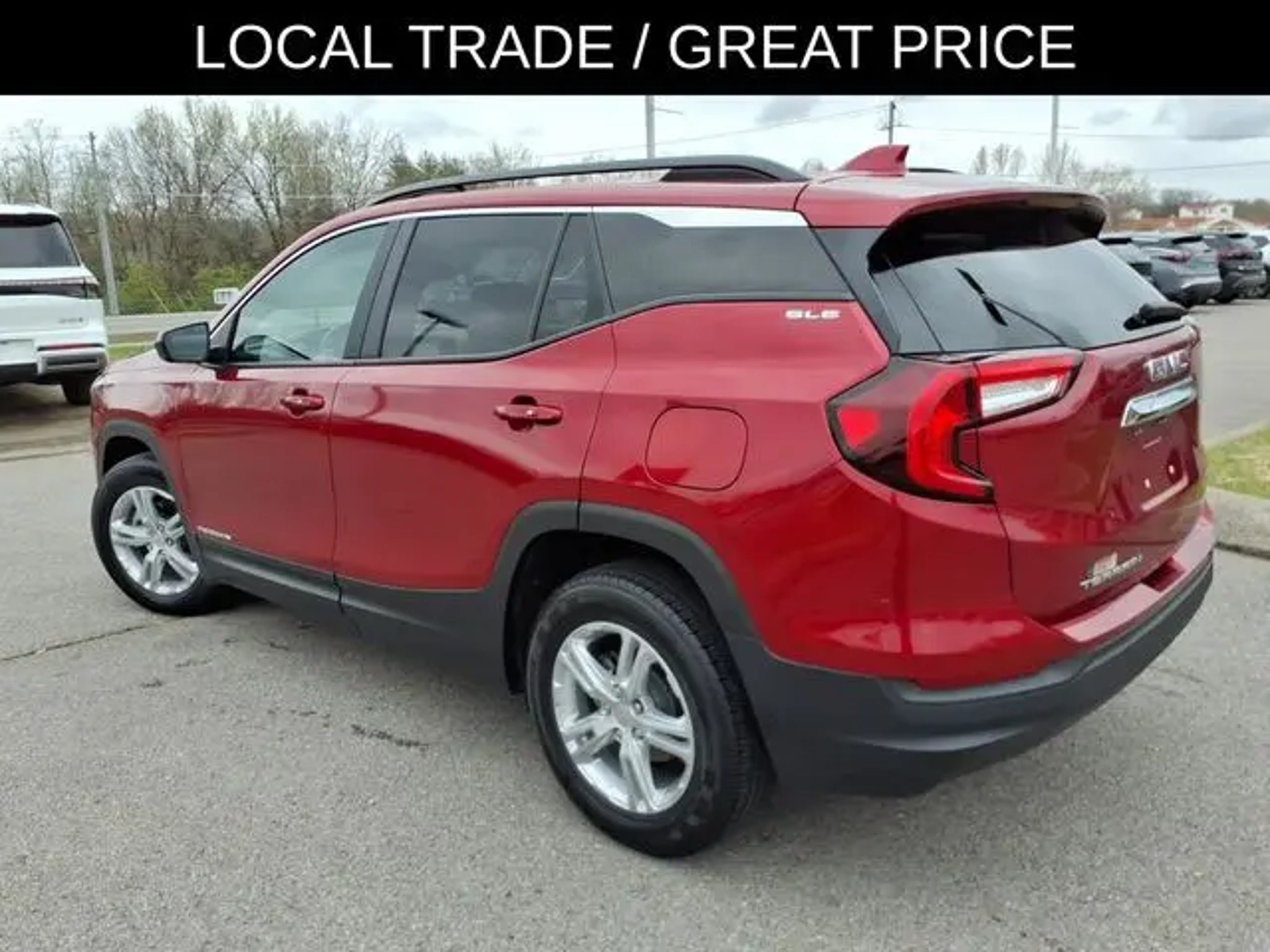 The 2022 GMC Terrain comes equipped with the following Driver Convenience Package (8-Way Power Driver Seat Adjuster, Driver & Front Passenger Heated Seats, Dual-Zone Automatic Climate Control, Power Driver Lumbar Control, Remote Start, and Roof-Mounted Luggage Rack Side Rails), Infotainment Package I (110-Volt Power Outlet, 2 USB Data Ports, 2 USB Data Ports w/SD Card Reader, 4.2 Multi-Color Driver Information Screen, HD Rear Vision Camera, Radio: GMC Infotainment Audio System w/Navigation, and SiriusXM Radio), Preferred Equipment Group 3SA, 2 USB Data Ports w/Auxiliary Input Jack, 3.47 Axle Ratio, 4-Way Manual Driver's Seat, 4-Way Manual Front Passenger Seat, 4-Wheel Disc Brakes, 6 Speakers, 6-Speaker Audio System Feature, ABS brakes, Air Conditioning, Alloy wheels, AM/FM radio: SiriusXM, Auto High-beam Headlights, Auto-dimming Rear-View mirror, Automatic temperature control, Bluetooth® For Phone, Brake assist, Bumpers: body-color, Compass, Delay-off headlights, Driver door bin, Driver vanity mirror, Dual front impact airbags, Dual front side impact airbags, Electronic Stability Control, Emergency communication system: OnStar Guidance, Four wheel independent suspension, Front anti-roll bar, Front Bucket Seats, Front Center Armrest, Front reading lights, Fully automatic headlights, Heated door mirrors, Illuminated entry, Low tire pressure warning, Occupant sensing airbag, Outside temperature display, Overhead airbag, Overhead console, Panic alarm, Passenger door bin, Passenger vanity mirror, Power door mirrors, Power Programmable Rear Liftgate, Power steering, Power windows, Premium Cloth Seat Trim, Radio data system, Radio: GMC Infotainment Audio System w/7 Display, Rear anti-roll bar, Rear seat center armrest, Rear window defroster, Rear window wiper, Remote keyless entry, Security system, Speed control, Speed-sensing steering, Split folding rear seat, Spoiler, Steering wheel mounted audio controls, Tachometer, Telescoping steering wheel, Tilt steering wheel, Traction control, Trip computer, Variably intermittent wipers, Wheels: 17 x 7 Silver Painted Aluminum, and Wireless Apple CarPlay/Wireless Android Auto. 2022 GMC Terrain Clean CARFAX. CARFAX One-Owner. Cayenne Red Tintcoat 2022 GMC Terrain SLE FWD 9-Speed Automatic 1.5L DOHC Odometer is 6370 miles below market average! 25/30 City/Highway MPG Call us today to schedule your VIP test drive!