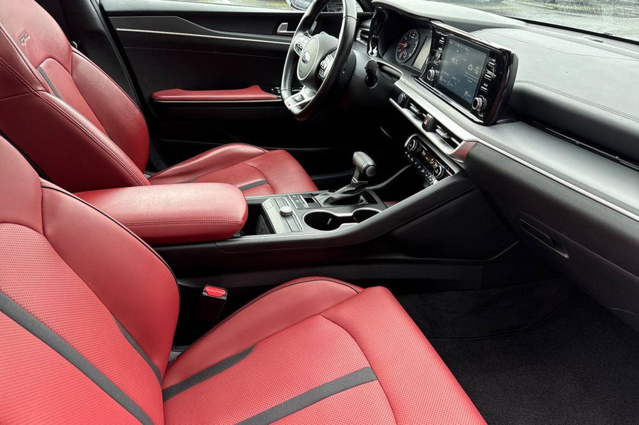 CARFAX One-Owner. 2021 Kia K5 GT-Line Wolf Gray One Owner, Fresh Oil Change, No Accident on Carfax, 4-Wheel Disc Brakes, 6 Speakers, ABS brakes, Air Conditioning, Apple CarPlay & Android Auto, Automatic temperature control, Bumpers: body-color, Cloth/Leatherette Seat Trim, Dual front impact airbags, Front anti-roll bar, Front Bucket Seats, GT-Line Red Interior Package, Heated door mirrors, Overhead airbag, Power door mirrors, Radio data system, Rear side impact airbag, Remote keyless entry, Speed control, Spoiler, Turn signal indicator mirrors. Odometer is 22044 miles below market average!