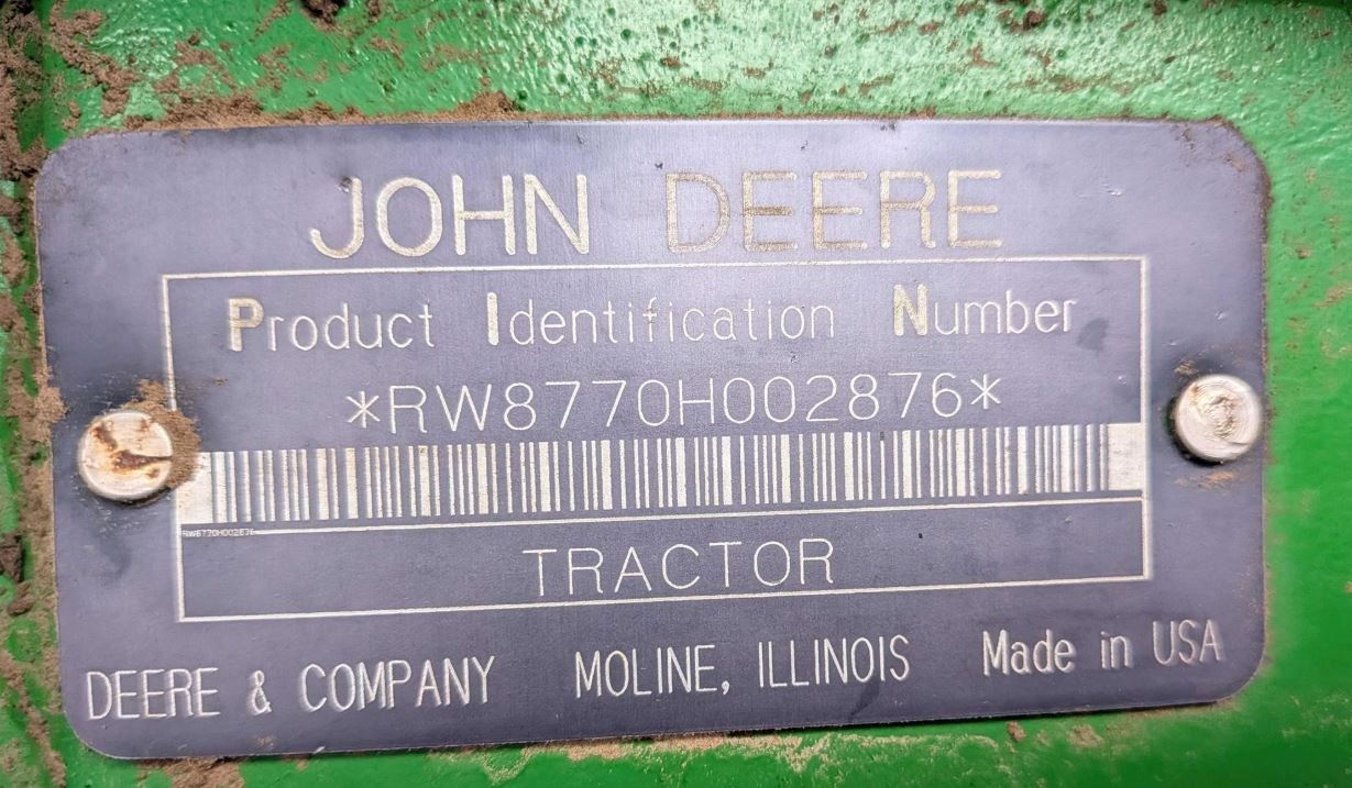 1995 John DEERE 8770 This 1995 John DEERE 8770 we are offering the 1995 John Deere 8770 tractor, an ideal choice for reliable performance with advanced technology integration. This sturdy tractor is equipped with a 10.1L Diesel engine providing 300 horsepower, and includes robust hydraulics with 3 remotes, making it exceptionally versatile for various agricultural tasks. It is suited for all-weather operation with effective heat, A/C, and radio systems. The tractor comes GreenStar ready, incorporating AutoTrac Universal and a rate controller for precision farming, ensuring better efficiency and productivity. Recent upgrades include a new fuel system with a brand new injector pump and injectors installed last season, and a new turbo within the last five years. With regular servicing and maintenance, this unit starts easily, runs robustly, and promises extensive longevity. The tractor features a 4WD drive with a powershift transmission, dual configurations for both front and rear tires, and maintains a well-cared-for condition with a history of dependable service. With a total of 12,060 operational hours, this machine is field-ready and set to deliver exceptional performance for years ahead. Reported hours are 12060. VIN RW8770H002876. Located in Waterville, WA 98858 For more information, please call 833-265-6113 and mention ID 91747