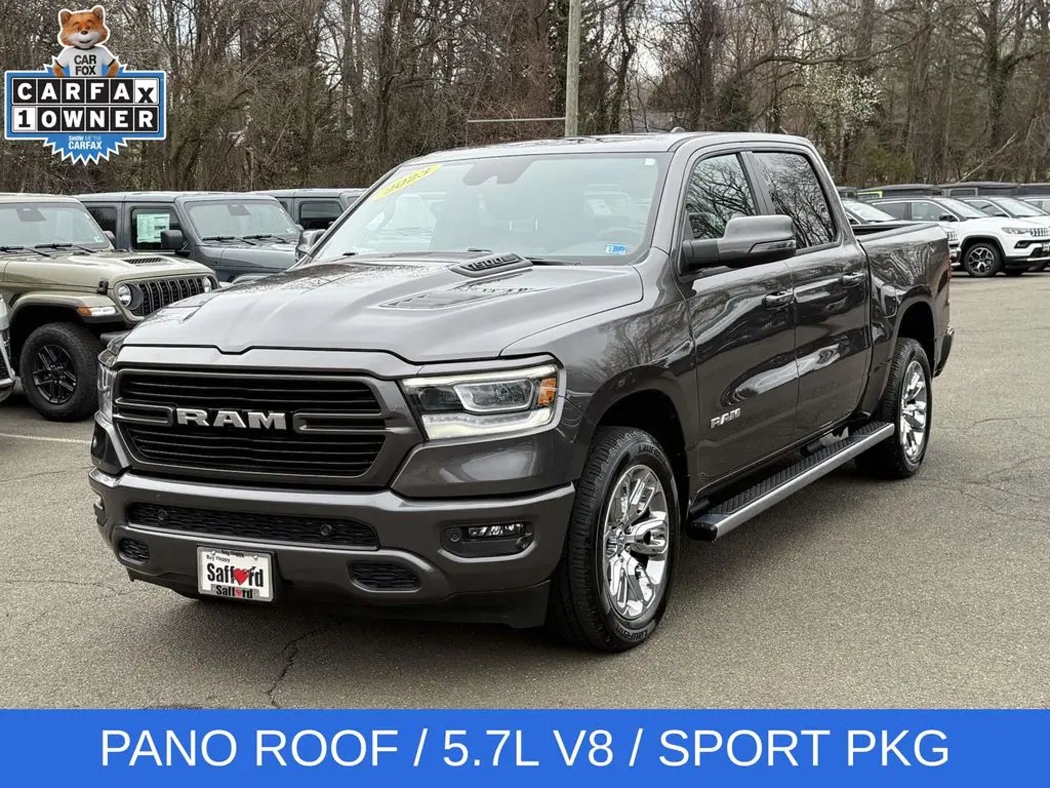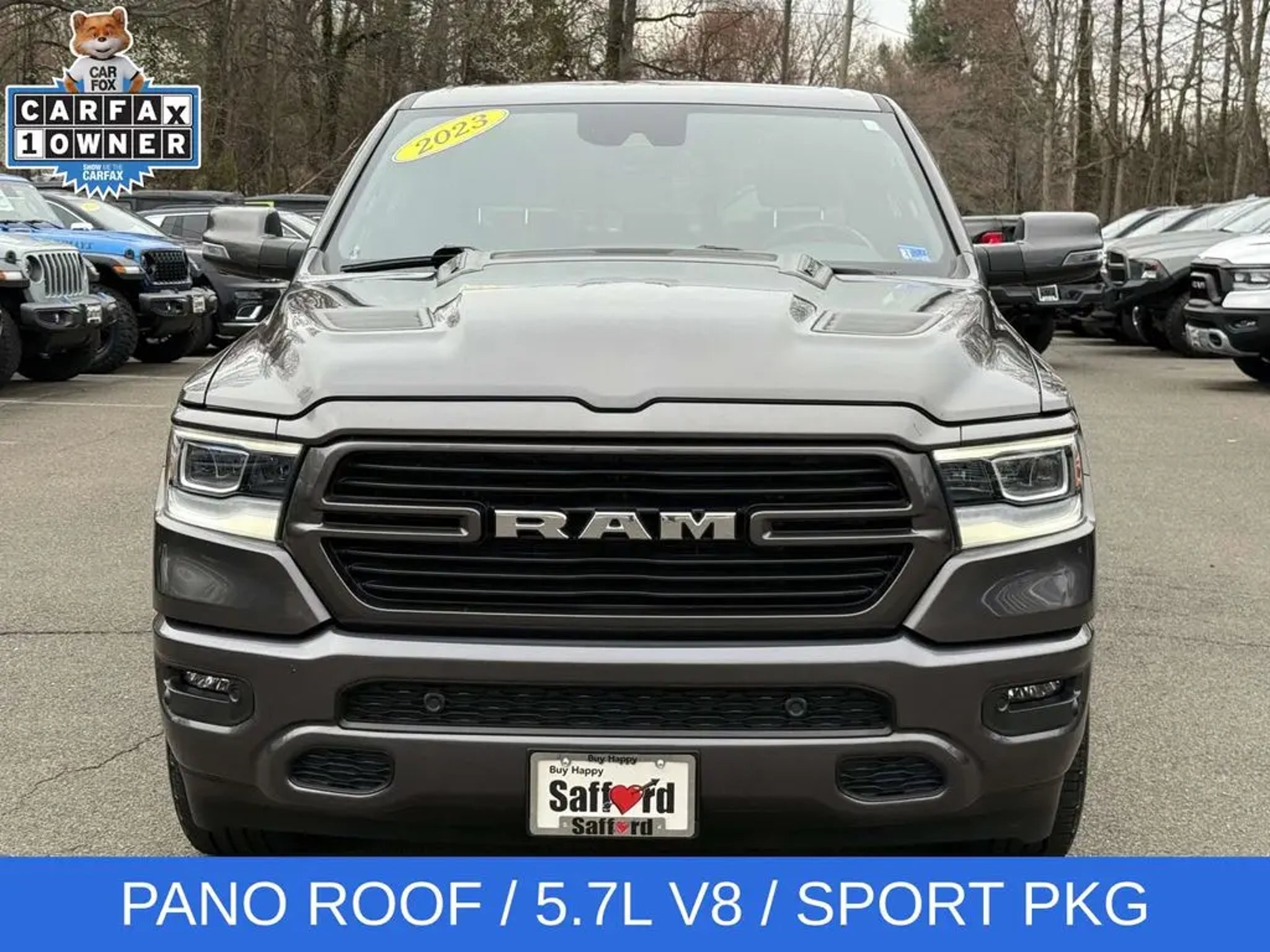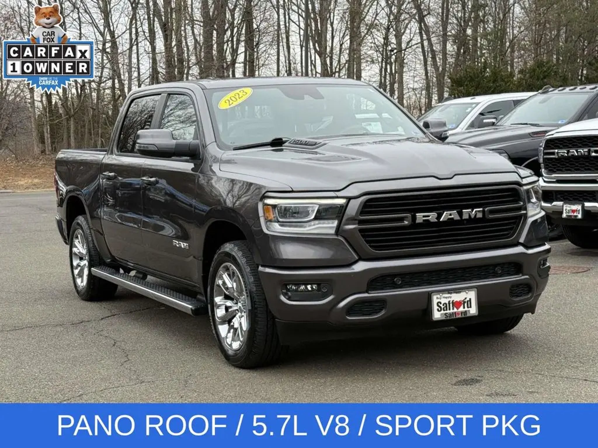 Experience the unparalleled power and sophistication of the 2023 Ram 1500 Laramie. This exceptional full-size pickup is engineered to conquer any terrain and elevate your driving experience to new heights. - HEMI 5.7L V8 Multi Displacement VVT eTorque engine with 8-speed automatic transmission and 4WD - Laramie Level B Equipment Group with premium features like a 12-inch touchscreen display, harman/kardon 19-speaker sound system, and blind spot monitoring - Sport Appearance Package with sleek body-colored accents and 20-inch premium painted wheels - Dual-pane panoramic sunroof for an open, airy cabin The 2023 Ram 1500 Laramie is more than just a truck - it's a testament to innovative engineering and uncompromising craftsmanship. With its striking gray exterior, this Laramie model exudes a bold, confident presence that is sure to turn heads wherever you go. Step inside the cabin and you'll be enveloped in the premium leather-trimmed bucket seats and the intuitive Uconnect 5 infotainment system with navigation. The advanced technology features, including Apple CarPlay, Android Auto, and a 4G LTE Wi-Fi hotspot, keep you seamlessly connected on the road. But the true heart of this Ram 1500 Laramie lies in its exceptional capability. The HEMI V8 engine delivers an exhilarating driving experience, while the 4WD system and class-leading towing capacity make it a true workhorse. And with the available Trailer Brake Control and Class IV receiver hitch, you can confidently tackle any towing task. Whether you're hauling heavy loads, navigating challenging terrain, or simply seeking a luxurious and comfortable daily driver, the 2023 Ram 1500 Laramie is the perfect choice. Experience the unmatched power, technology, and refinement that this remarkable truck has to offer. Visit our showroom today and let us demonstrate how this Ram 1500 Laramie can transform your driving experience.
