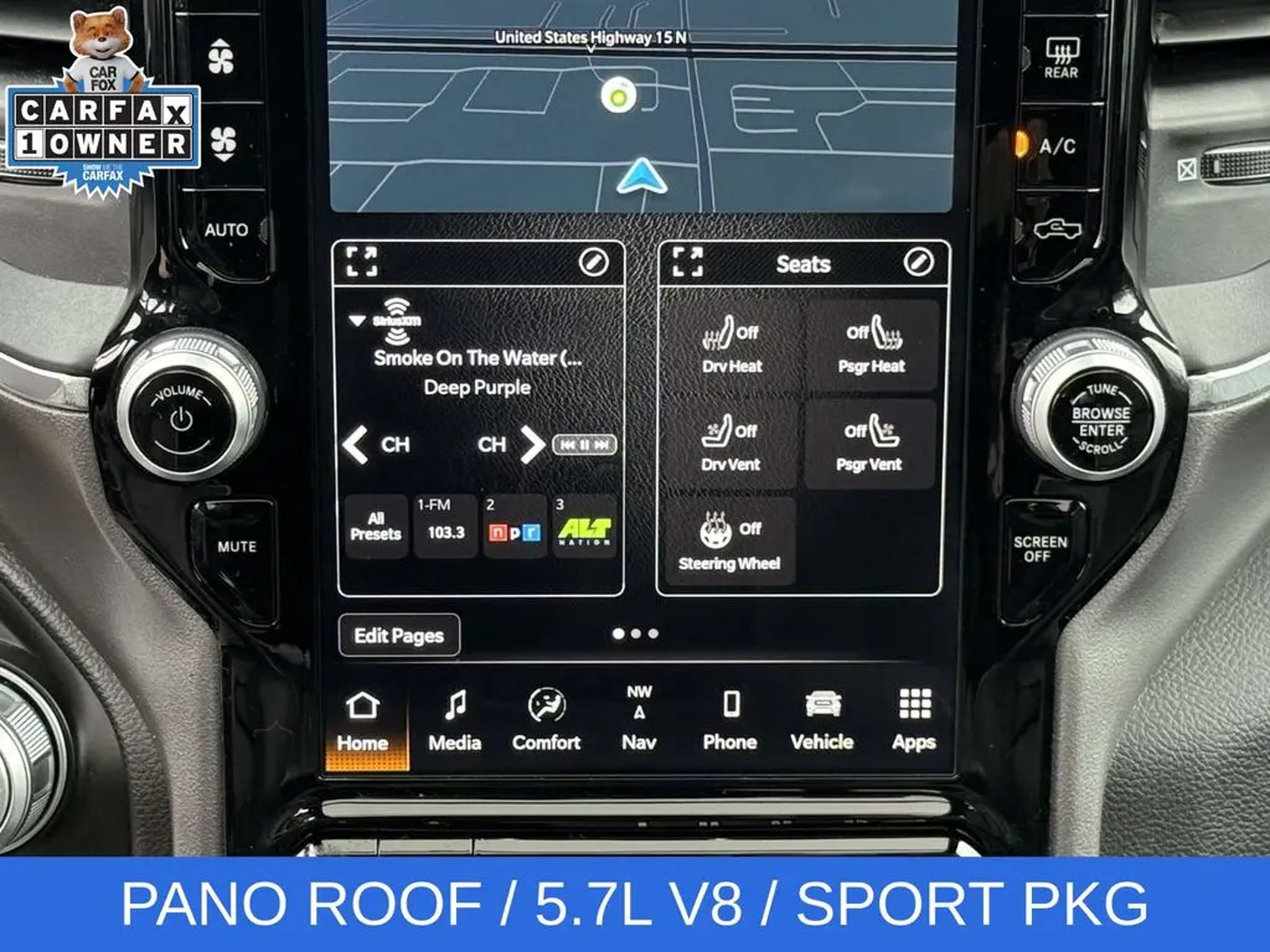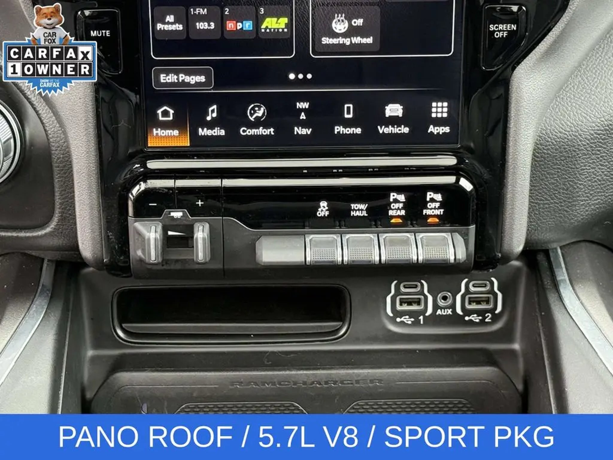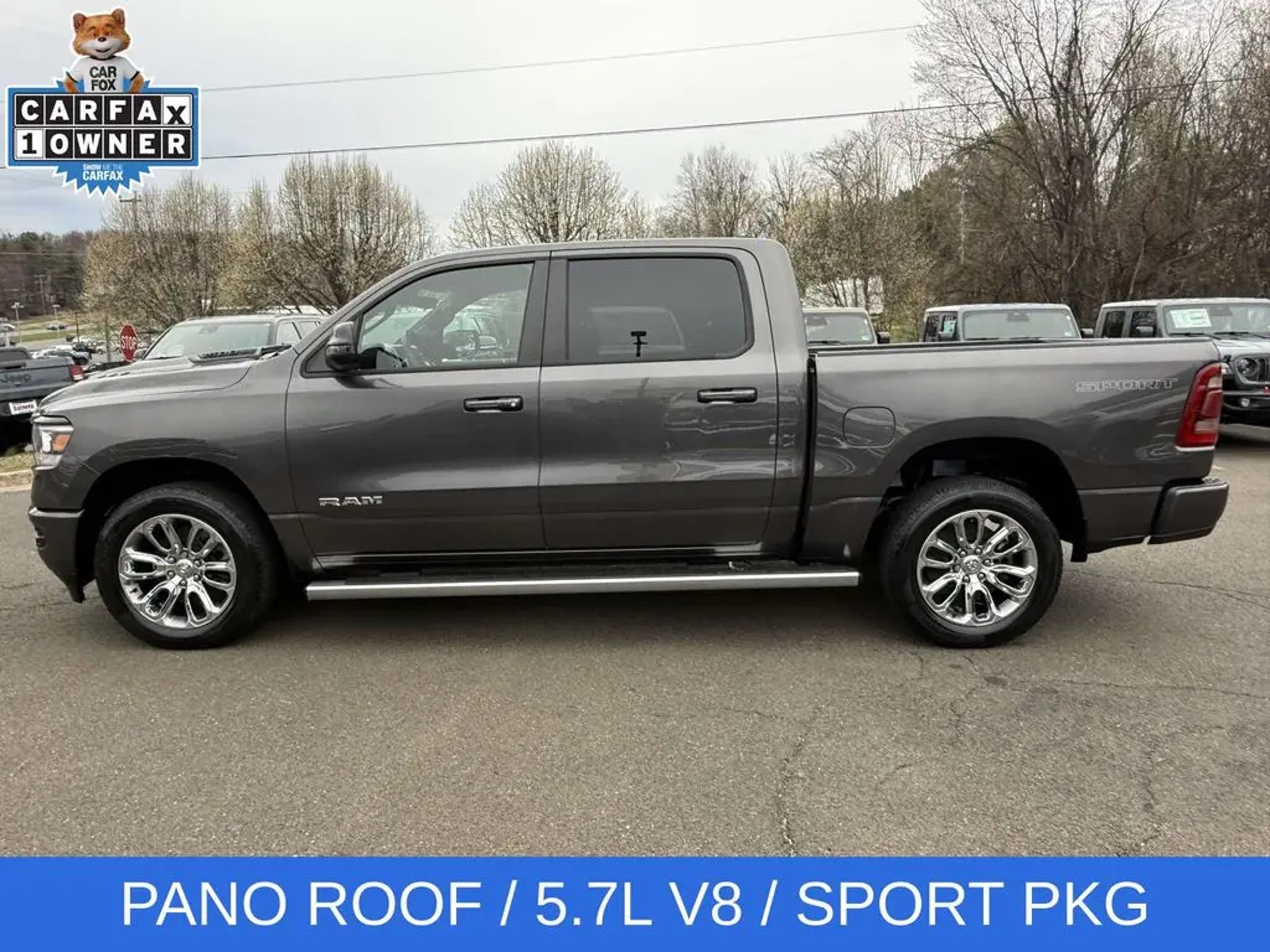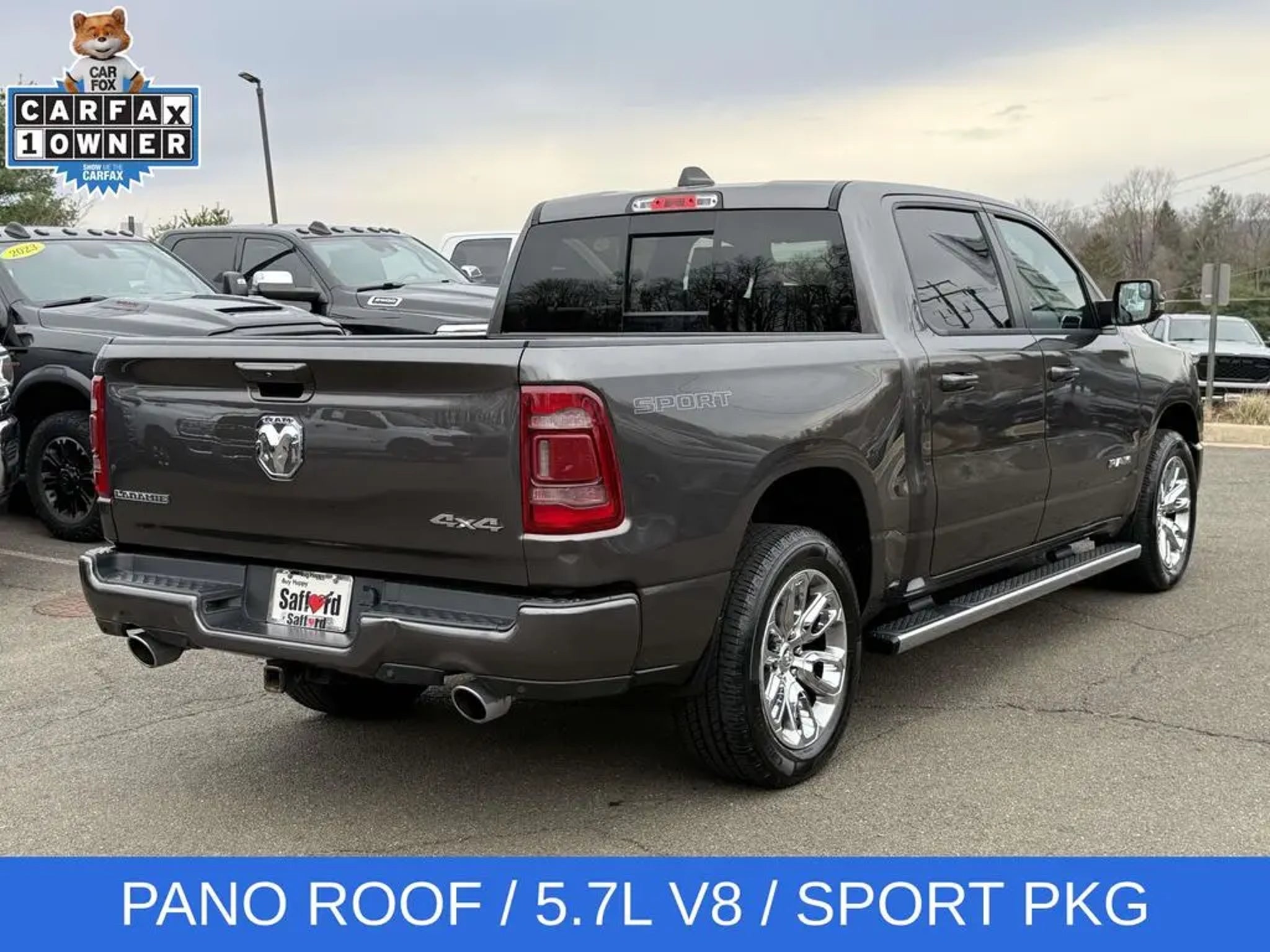 Experience the unparalleled power and sophistication of the 2023 Ram 1500 Laramie. This exceptional full-size pickup is engineered to conquer any terrain and elevate your driving experience to new heights. - HEMI 5.7L V8 Multi Displacement VVT eTorque engine with 8-speed automatic transmission and 4WD - Laramie Level B Equipment Group with premium features like a 12-inch touchscreen display, harman/kardon 19-speaker sound system, and blind spot monitoring - Sport Appearance Package with sleek body-colored accents and 20-inch premium painted wheels - Dual-pane panoramic sunroof for an open, airy cabin The 2023 Ram 1500 Laramie is more than just a truck - it's a testament to innovative engineering and uncompromising craftsmanship. With its striking gray exterior, this Laramie model exudes a bold, confident presence that is sure to turn heads wherever you go. Step inside the cabin and you'll be enveloped in the premium leather-trimmed bucket seats and the intuitive Uconnect 5 infotainment system with navigation. The advanced technology features, including Apple CarPlay, Android Auto, and a 4G LTE Wi-Fi hotspot, keep you seamlessly connected on the road. But the true heart of this Ram 1500 Laramie lies in its exceptional capability. The HEMI V8 engine delivers an exhilarating driving experience, while the 4WD system and class-leading towing capacity make it a true workhorse. And with the available Trailer Brake Control and Class IV receiver hitch, you can confidently tackle any towing task. Whether you're hauling heavy loads, navigating challenging terrain, or simply seeking a luxurious and comfortable daily driver, the 2023 Ram 1500 Laramie is the perfect choice. Experience the unmatched power, technology, and refinement that this remarkable truck has to offer. Visit our showroom today and let us demonstrate how this Ram 1500 Laramie can transform your driving experience.