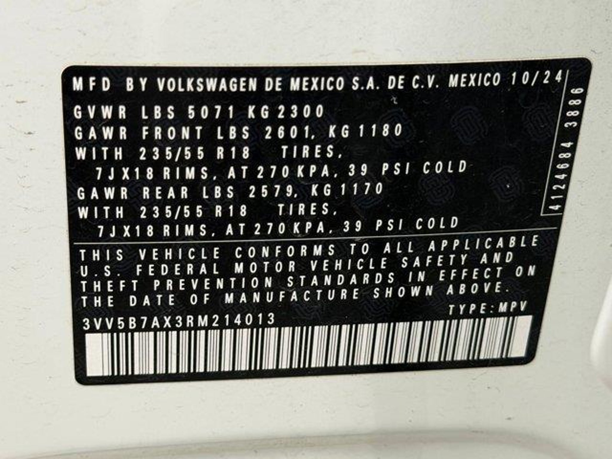 VIN 3VV5B7AX3RM214013