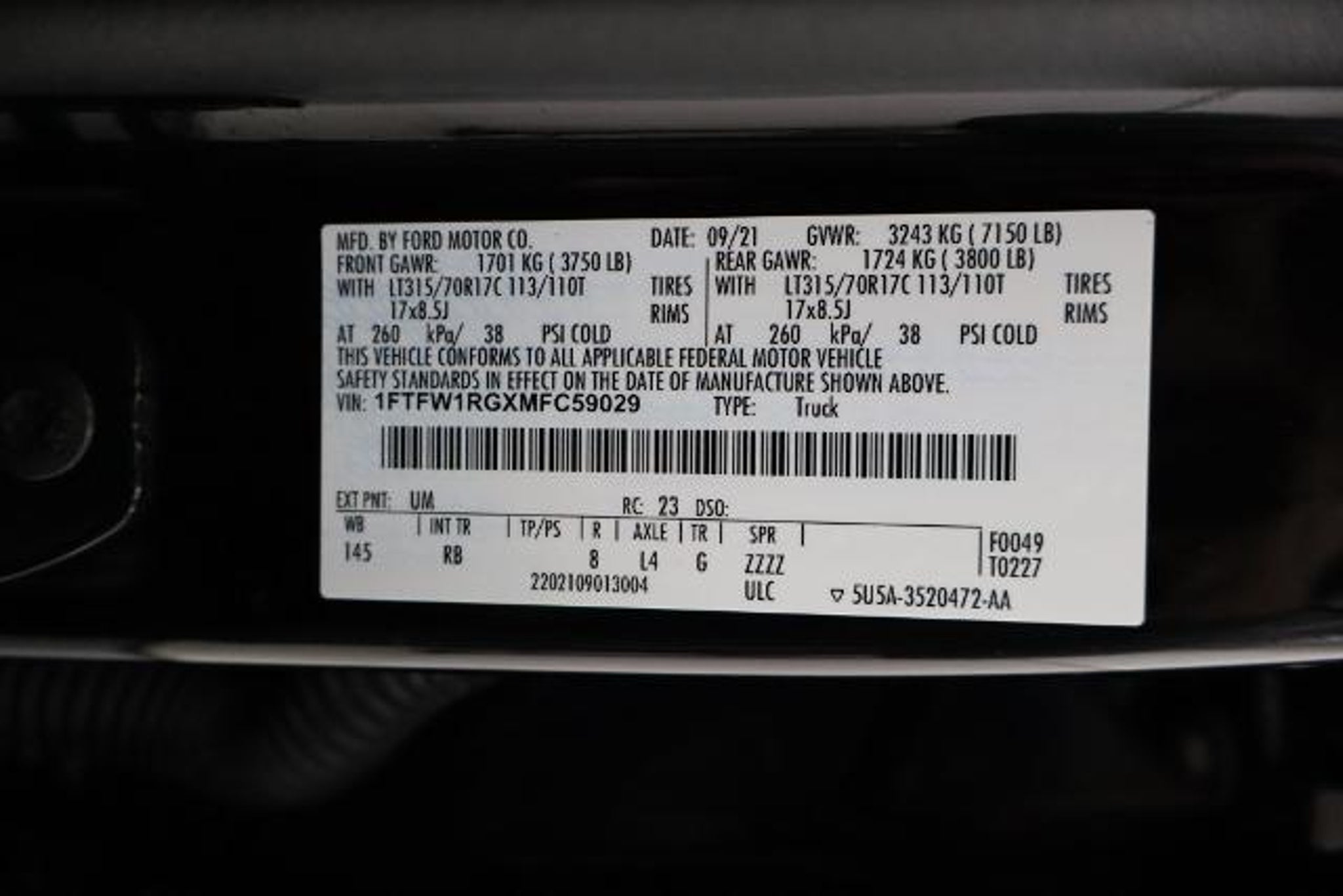 Recent Arrival! 2021 Ford F-150 4D SuperCrew Raptor Black 4WD 3.5L V6 EcoBoost 10-Speed Automatic 4WD, 360 Degree Camera, BlueCruise Prep Kit, Connected Built-In Navigation, Convenience Package, Electronic Locking w/4.10 Axle Ratio, Equipment Group 801A High, Forward Sensing System, Front-Axle w/Torsen Differential, GVWR: 7,050 lbs Payload Package, Heated Steering Wheel, Integrated Trailer Brake Controller, Interior Work Surface, Leather Trim Seats w/Heated 2nd Row, LED Projector w/Dynamic Bending Headlamps, Partitioned Lockable Fold-Flat Storage, Power Tailgate, Power Tech Package, Power Tilt/Telescoping Steering Column w/Memory, Pro Power Onboard - 2KW, Pro Trailer Backup Assist, Radio: B&O Unleashed Sound System by Bang & Olufsen, Rain-Sensing Wipers, Rigid LED Fog Lamp, SYNC 4 w/Enhanced Voice Recognition, Tailgate Applique FORD, Torsen Package, Tow Technology Package, Universal Garage Door Opener, Wireless Charging Pad. Convenience Package (Connected Built-In Navigation, Interior Work Surface, and Partitioned Lockable Fold-Flat Storage), Equipment Group 801A High (BlueCruise Prep Kit, Electronic Locking w/4.10 Axle Ratio, Forward Sensing System, Heated Steering Wheel, Leather Trim Seats w/Heated 2nd Row, LED Projector w/Dynamic Bending Headlamps, Power Tilt/Telescoping Steering Column w/Memory, Radio: B&O Unleashed Sound System by Bang & Olufsen, Rain-Sensing Wipers, SYNC 4 w/Enhanced Voice Recognition, Tailgate Applique FORD, Universal Garage Door Opener, and Wireless Charging Pad), GVWR: 7,050 lbs Payload Package, Power Tech Package (Power Tailgate and Pro Power Onboard - 2KW), Torsen Package (Front-Axle w/Torsen Differential and Rigid LED Fog Lamp), Tow Technology Package (360 Degree Camera, Integrated Trailer Brake Controller, and Pro Trailer Backup Assist), 4WD, 17 Cast Aluminum Wheels, 17 Forged Aluminum Bead-Lock Capable Wheels, 4-Wheel Disc Brakes, 7 Speakers, ABS brakes, Adaptive suspension, Adjustable pedals, Air Conditioning, Alloy wheels, AM/FM radio: SiriusXM with 360L, Auto High-beam Headlights, Auto Start-Stop Removal, Auto-dimming door mirrors, Auto-dimming Rear-View mirror, Automatic temperature control, Brake assist, Bumpers: body-color, Compass, Delay-off headlights, Driver door bin, Driver vanity mirror, Dual fro'nt side impact airbags, Dual front impact airbags, Electronic Stability Control, Emergency communication system: SYNC 4 911 Assist, Exterior Parking Camera Rear, Front anti-roll bar, Front Bucket Seats, Front Center Armrest, Front dual zone A/C, Front reading lights, Fro