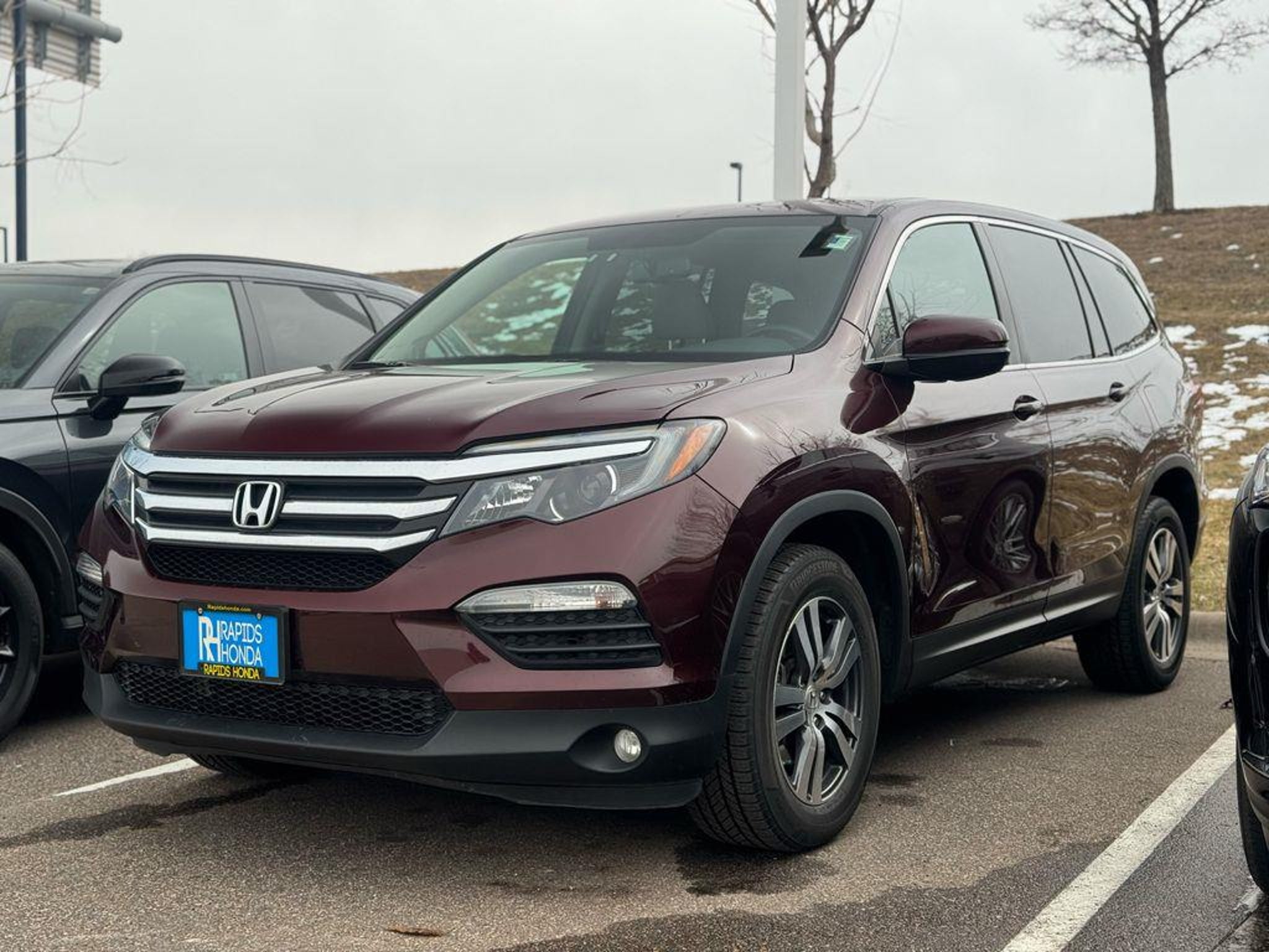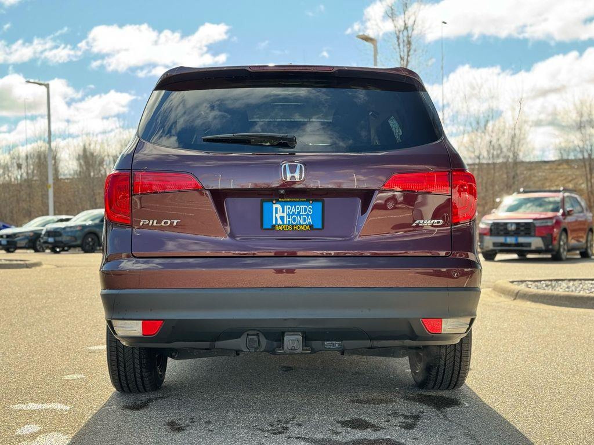 Certified. Now Available: Affordable Pre-Owned Dark Cherry Pearl 2017 Honda Pilot EX-L with 99737 miles at Rapids Honda! This well-equipped used 2017 Honda Pilot EX-L offers AWD traction, a 3.5L V6 24V SOHC i-VTEC engine with 6-Speed Automatic, and fuel efficiency rated at 18 MPG city / 26 MPG highway / 21 MPG combined. Standout features include Backup CameraHonda Certified, 3rd row seats: split-bench, Apple CarPlay/Android Auto, Front dual zone A/C, Front fog lights, Garage door transmitter: HomeLink, Heated Front Bucket Seats, Leather-Trimmed Seats, Power Liftgate, Power moonroof, Radio: AM/FM Audio System, SiriusXM Radio, and Split folding rear seat making it ready for its next adventure. Vehicles are inspected, detailed, and come with a vehicle history report. Available on select pre-owned vehicles at Rapids Honda (see salesperson for details and eligibility requirements), The Rapids Advantage includes a 6-month/6,000-mile Powertrain Warranty covering the engine, EV battery, transmission, and drivetrain, plus $200 deductible protection. You'll also receive Lifetime Car Washes, Lifetime Windshield Repellency, Lifetime Shuttle Service, and Auto Butler Environmental Protection, giving you lasting value beyond your purchase. Visit us at 1950 Gateway Dr NW off Hwy 10 & Hanson Blvd in Coon Rapids, MN, or call us at . Open Monday-Saturday.