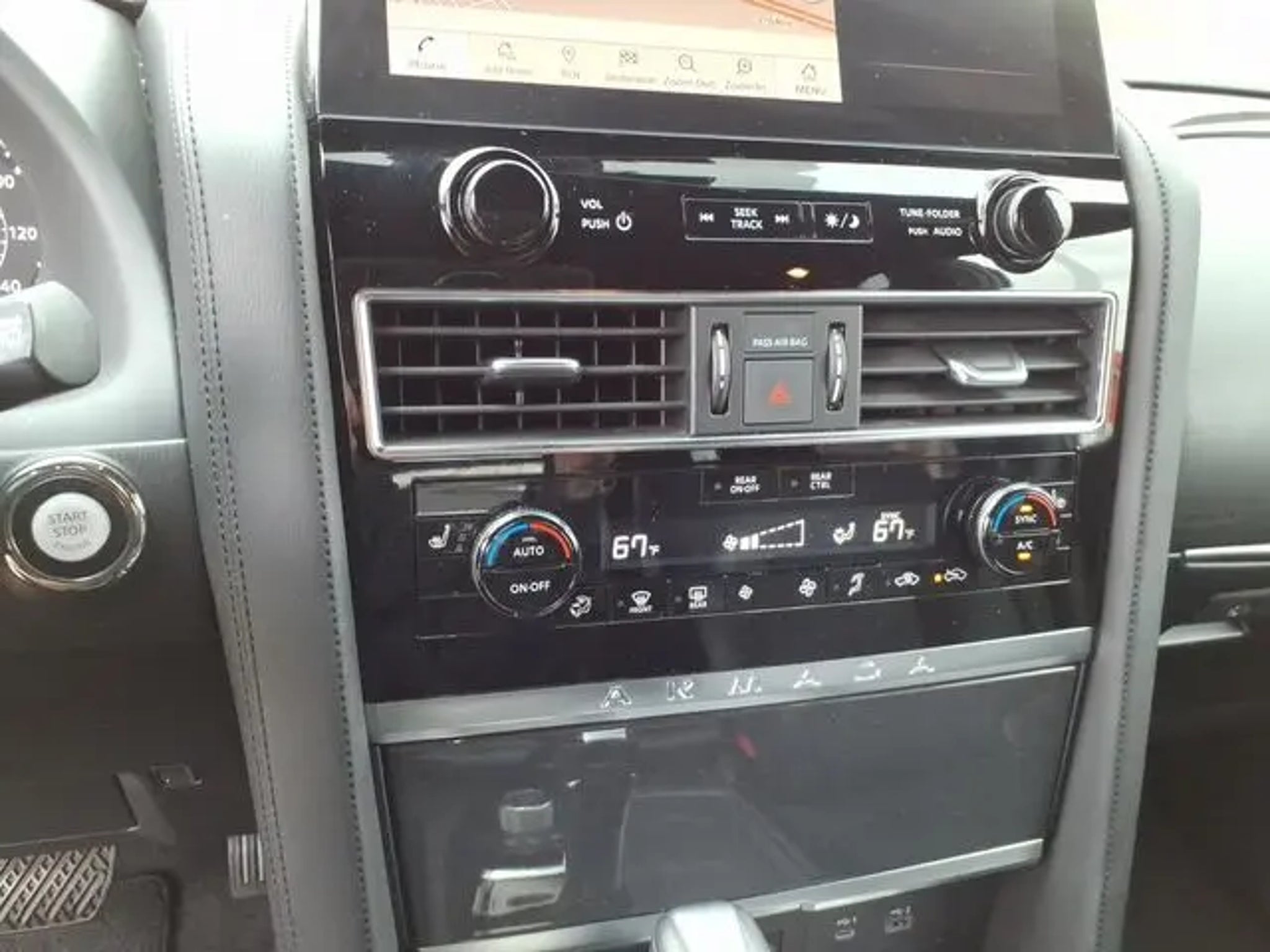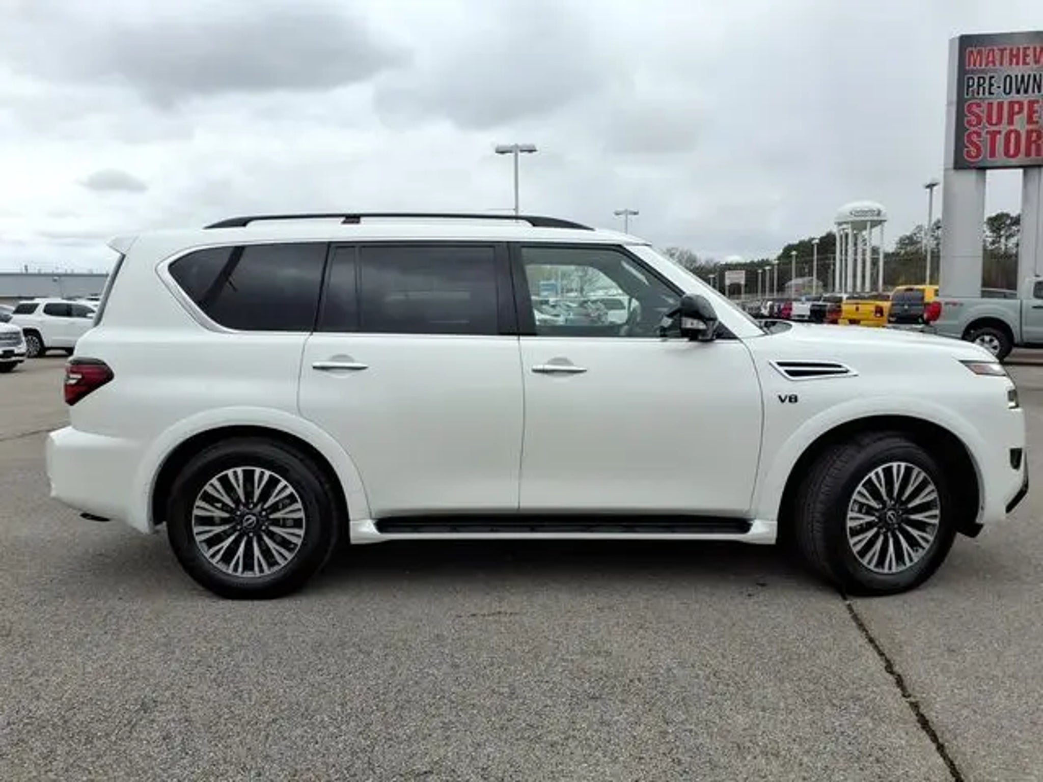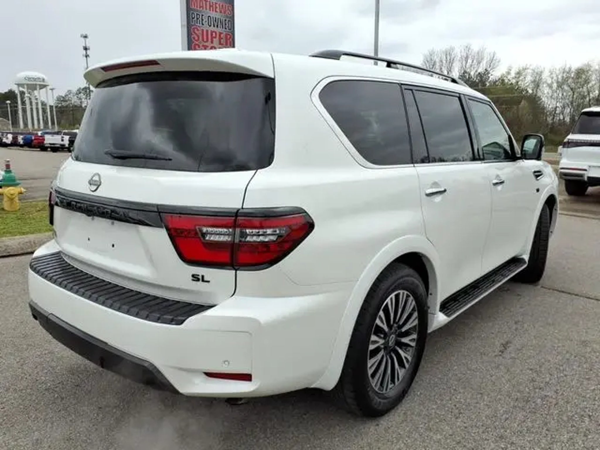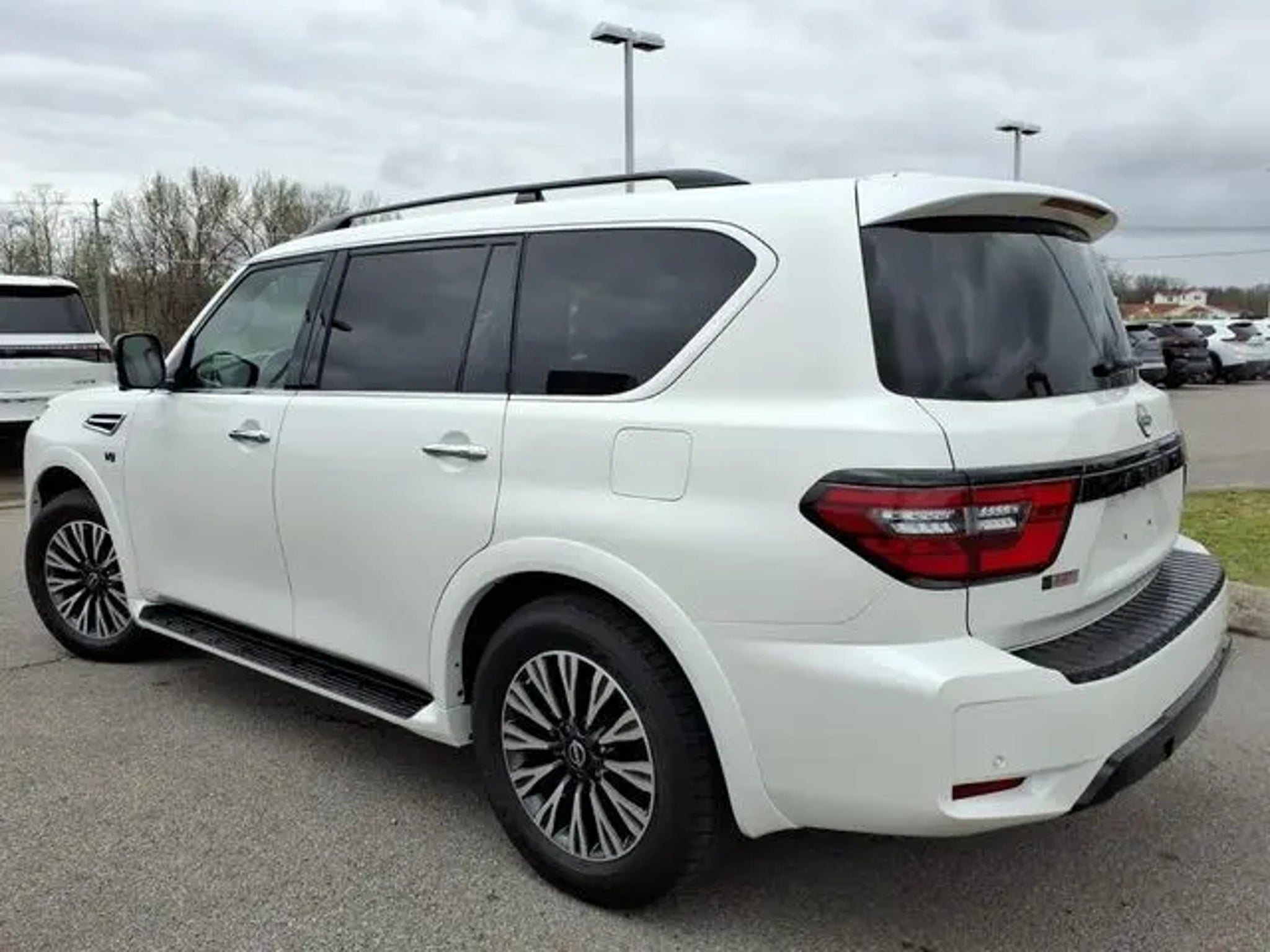 The 2021 Nissan Armada comes equipped with the following Captain's Chairs Package (2nd Row Captain's Chairs and 2nd Row Center Console w/Padded Armrest), Midnight Edition Package (20 Aluminum Alloy Wheels and Leather Appointed Seat Trim), 4WD, 13 Speakers, 2.94 Axle Ratio, 20 Painted Alloy Wheels, 3rd row seats: split-bench, 4-Wheel Disc Brakes, ABS brakes, Air Conditioning, Alloy wheels, AM/FM radio: SiriusXM, Anti-whiplash front head restraints, Auto High-beam Headlights, Auto tilt-away steering wheel, Auto-dimming door mirrors, Auto-dimming Rear-View mirror, Auto-leveling suspension, Automatic temperature control, Brake assist, Bumpers: body-color, Delay-off headlights, Driver door bin, Driver vanity mirror, Dual front impact airbags, Dual front side impact airbags, Electronic Stability Control, Emergency communication system: NissanConnect Services, Exterior Parking Camera Rear, Four wheel independent suspension, Front anti-roll bar, Front Bucket Seats, Front Center Armrest, Front dual zone A/C, Front fog lights, Front reading lights, Fully automatic headlights, Garage door transmitter: HomeLink, Heated door mirrors, Heated Front Bucket Seats, Heated front seats, Illuminated entry, Illuminated Kick Plates, Leather Seat Trim, Leather Shift Knob, Low tire pressure warning, Memory seat, Navigation System, NissanConnect featuring Apple CarPlay and Android Auto, Occupant sensing airbag, Outside temperature display, Overhead airbag, Overhead console, Panic alarm, Passenger door bin, Passenger vanity mirror, Power door mirrors, Power driver seat, Power Liftgate, Power moonroof, Power passenger seat, Power steering, Power windows, Radio: NissanConnect w/SiriusXM, Rear air conditioning, Rear anti-roll bar, Rear reading lights, Rear seat center armrest, Rear window defroster, Rear window wiper, Reclining 3rd row seat, Remote keyless entry, Security system, Special Paint - Aspen White, Speed control, Speed-sensing steering, Speed-Sensitive Wipers, Split folding rear seat, Spoiler, Steering wheel memory, Steering wheel mounted audio controls, Tachometer, Telescoping steering wheel, Tilt steering wheel, Traction control, Trip computer, Turn signal indicator mirrors, Variably intermittent wipers, and Voltmeter. 2021 Nissan Armada 4WD. Aspen White Tricoat 2021 Nissan Armada SL 4WD 7-Speed Automatic 5.6L V8 DOHC 32V LEV3-ULEV125 400hp Call us today to schedule your VIP test drive!