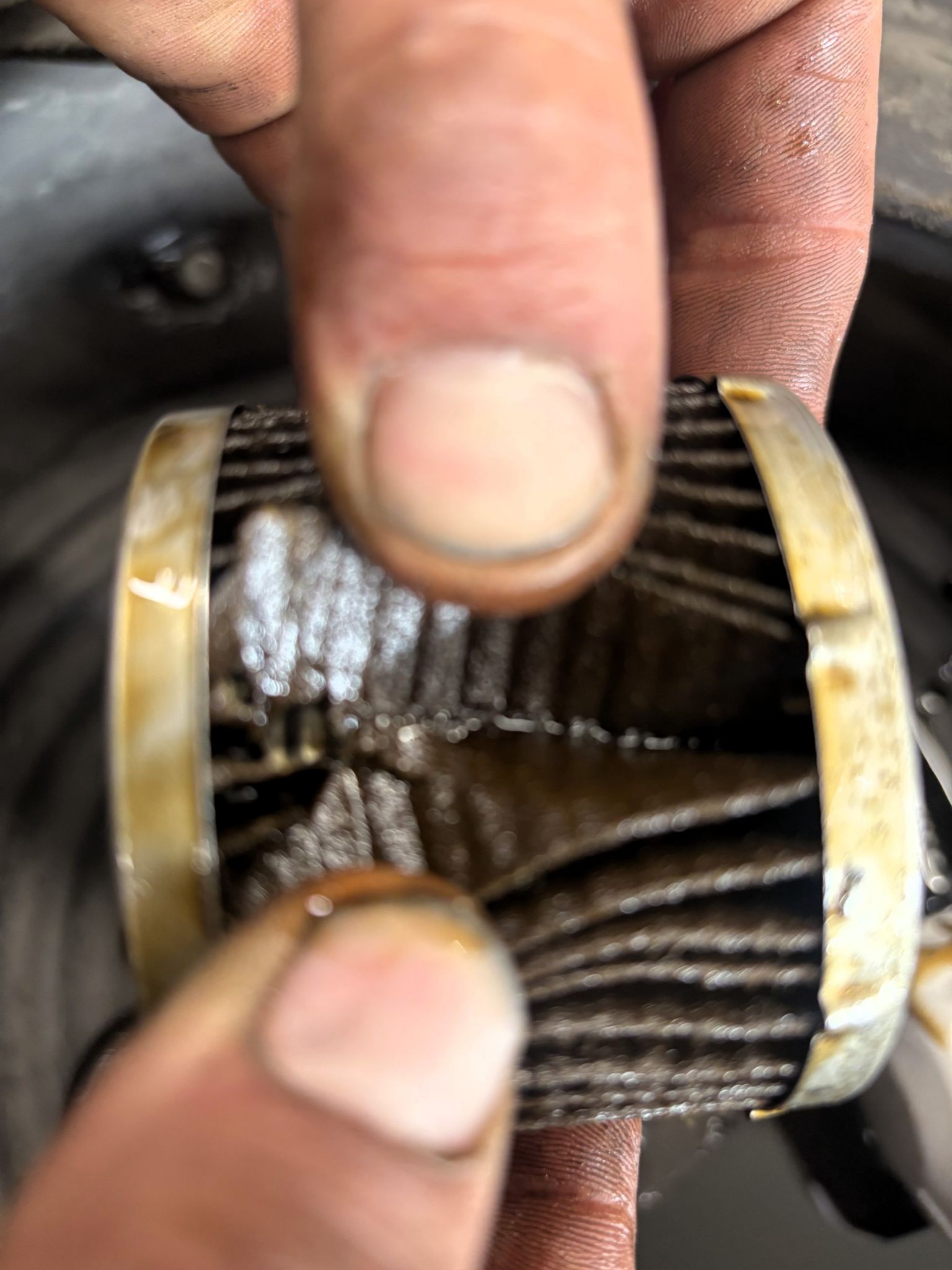 Engine oil filter was removed and cut open to examine that there was no contamination or metal particles seen in the engine oil, see pictures