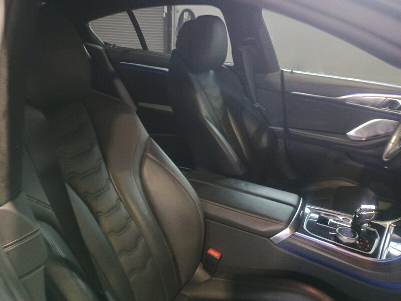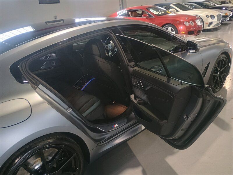 "NEW ARRIVAL A STUNNING FOUR DOOR 8 SERIES IN BLUE STONE MATT "" PEARL GREY GHOST MATT "" WITH BLACK INTRIOR The BMW 8 Series is a range of grand tourer coupes and convertibles produced by BMW. The 8 Series was introduced in 1990 under the E31 model code and was only available as a two-door coup©.[1] It is powered by a range of naturally aspirated V8 and V12 petrol engines.[2] The E31 started production just as E24 6 Series production ended; however, it is not considered a direct successor.[3] The E31 was discontinued in 1999 due to poor sales.[4] The model range was later reintroduced in 2018 with the second generation, G15 8 Series.[5] It launched in coup© (G15), convertible (G14), and four-door Gran Coup© (G16) body styles, as the successor to the F06/F12/F13 6 Series lineup.[6] The G15 8 Series introduces an inline-six diesel engine,[7][8] and a high-performance BMW M8 trim later joined the lineup as well as the luxury inspired Alpina B8 The BMW 8 Series (G14) was announced on 15 June 2018, with sales commencing from November 2018.[13] It was initially available as a coup© (codenamed G15), with the convertible (G14) and four-door Gran Coup© (G16) variants introduced later, succeeding the F06/F12/F13 6 Series lineup.[14] Production commenced in late 2018 at the BMW assembly plant in Bangkok, Thailand & Dingolfing Direct competitors to the BMW 8 Series coup© and convertible are the Mercedes-AMG GT coup© & cabriolet and Porsche 911 coup© & cabriolet. The 8 series was initially conceived to be a high end competitor to brands like Ferrari and Porsche. At the time the brand had wanted to create a new luxury tier of vehicles with black branding, the 8 series and the X8 would be ultra luxury BMWs aimed at the space just below Rolls and share appointments with the high end British brand to help reduce costs PLEASE CALL PAUL @ 386-67-0598 OR paul.autosportgroup@gmail.com, she won't last long at this price point -- INSTALLED FEATURES: Air filtration: active charcoal, Front air conditioning: automatic climate control, Front air conditioning zones: dual, Rear air conditioning: automatic climate control / independently controlled, Rear air conditioning zones: dual, Airbag deactivation: occupant sensing passenger, Front airbags: dual, Knee airbags: dual front, Side airbags: front, Side curtain airbags: front / rear, Antenna type: diversity / element, Auxiliary audio input: Bluetooth / iPod/iPhone / jack / USB, Digital sound processing, Internet radio app: Spotify, Premium brand: harman/kardon, Radio: AM/FM / HD radio / touch screen display / voice operated, Radio data system, Satellite radio: SiriusXM, Speed sensitive volume control, Subwoofer: 2, Surround sound: 5.1, Total speakers: 14, Watts: 464, ABS: 4-wheel, Brake drying, Braking assist, Cornering brake control, Electronic brakeforce distribution, Electronic parking brake: auto off, Emergency braking preparation, Front brake type: ventilated disc, Painted brake calipers, Power brakes, Premium brakes, Rear brake type: ventilated disc, Regenerative braking system, Armrests: heated front / rear center with cupholders / rear folding, Center console trim: leather / metallic, Dash trim: leather, Door trim: leather / metallic, Floor mat material: carpet, Floor material: cargo area carpet / carpet, Floor mats: front / rear, Foot pedal trim: aluminum, Heated steering wheel, Interior accents: aluminum / leather / metallic-tone, Shift knob trim: alloy, Steering wheel trim: leather, Ambient lighting: color-adjustable, Assist handle: rear, Cargo area light, Center console: front console with armrest and storage, Courtesy lights: door, Cruise control, Cupholders: front / rear, Easy entry: power steering wheel, Footwell lights: color-adjustable, Gesture infotainment controls, Memorized settings: 2 driver / audio system / climate control / driver seat / passenger seat / side mirrors / steering wheel, Multi-function remote: panic alarm / proximity entry system / trunk release / vehicle and key memory, One-touch windows: 4, Power outlet(s): 12V front / USB front / USB-C front / USB-C rear, Power steering: variable/speed-proportional, Power windows: lockout button, Push-button start, Reading lights: front / rear, Rearview mirror: auto-dimming, Remote engine start, Steering wheel: power tilt and telescopic, Steering wheel mounted controls: audio / cruise control / multi-function / paddle shifter / phone / voice control, Storage: accessory hook / cargo tie-down anchors and hooks / door pockets / front seatback, Sunshade: power rear window, Touch-sensitive controls, Universal remote transmitter: Homelink - garage door opener, Vanity mirrors: dual illuminating, Wireless charging station: front, Active grille shutters, Door handle color: body-color, Exhaust: dual tip / integrated, Exhaust tip color: chrome, Front bumper color: body-color, Grille color: silver, Headlight bezel color: black, Mirror color: silver, Rear bumper color: body-color, Rear spoiler: lip, Rear spoiler color: body-color, Rear trunk/liftgate: power operated / sensor-activated, Side door type: soft close, Window trim: black, Connected in-car apps: Google POIs / Google search, Infotainment screen size: 10.25 in., Smartphone integration: wireless Android Auto / wireless Apple CarPlay, Clock, Compass, Customizable instrument cluster, Digital odometer, External temperature display, Fuel economy display: MPG / range, Gauge: tachometer, Head-up display, Instrument cluster screen size: 12.3 in., Multi-function display, Trip odometer, Warnings and reminders: coolant temperature warning / lamp failure / low fuel level / low oil level / maintenance due, Daytime running lights: LED, Exterior entry lights: approach lamps / puddle lamps, Headlights: auto delay off / auto high beam dimmer / auto on/off / cornering / LED / self-leveling / wiper activated, Taillights: adaptive / LED, Side mirror adjustments: power / power folding / reverse gear tilt, Side mirrors: driver side auto-dimming / heated / integr