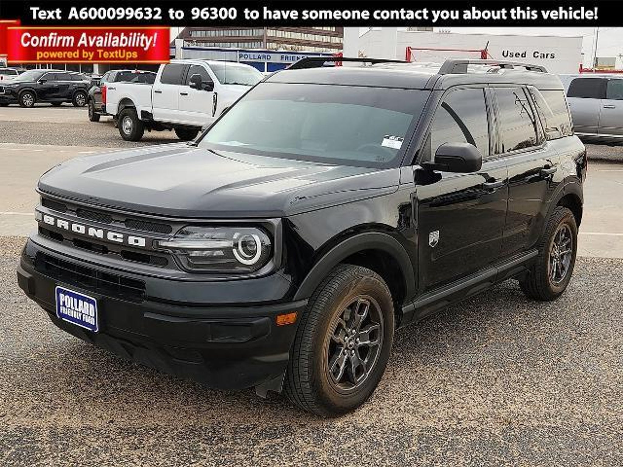 Details > 2022 Ford Bronco Sport AWD Big Bend 4DR SUV For Sale in Lubbock, TX Private Party Sellers Click here to place your ad now! You auta tell them you saw the ad in AutaBuy when you call or email. 1/12 2/12 3/12 4/12 5/12 6/12 7/12 8/12 9/12 10/12 11/12 12/12 View 12 Photos View All Add to My Garage Parked in Your Garage! Pollard Friendly Ford Company Contact Seller: I would like to: Make Offer Check Availability Ask A Question Request More Photos Check Financing Options Send a copy of this message to me Add this listing to my garage Send to Mobile Mileage 57,415 Exterior Color Shadow Black Interior Color Ebony Doors 4 Engine 1.5L I3 Transmission 8 Speed Auto Stock # 00099632 VIN 3FMCR9B69NRD25001 Estimated Monthly Payment $417 mo Apply Now J.J. Best Banc & Co. 2022 Ford Bronco Sport AWD Big Bend 4DR SUV Description: 2022 Ford Bronco Sport Recent Arrival! ****. 25/28 City/Highway MPG · Mileage: 57,415 · Color: Shadow Black Price: $23,990. Mileage 57,415 Exterior Color Shadow Black Interior Color Ebony Doors 4 Engine 1.5L I3 Transmission 8 Speed Auto Stock # 00099632 VIN 3FMCR9B69NRD25001 Estimated Monthly Payment $417 mo Apply Now J.J. Best Banc & Co. Add to My Garage Parked in Your Garage! Message Seller Pollard Friendly Ford Company Contact Seller: I would like to: Make Offer Check Availability Ask A Question Request More Photos Check Financing Options Send a copy of this message to me Add this listing to my garage Offered for sale by Pollard Friendly Ford Company LUBBOCK, TX Price: $23,990. Offered for sale by Pollard Friendly Ford Company LUBBOCK, TX [entire inventory] Ask Auta Intelligence The first collector-car AI built directly into a classic car marketplace What does this VIN number tell me? How many of these were produced? Where is this located? How many Bronco Sports were produced in Black? What colors did these come in? What safety features does this model offer? What kind of mileage do these get? What trim levels were available for this model? What factory options were available on this model? How easy are parts to find for this model? When was this model first introduced? Tell me the history on this model What transmission options did these offer? How far is this from me? What engine options did these come with? How many passengers can this seat comfortably? Can you show me more suvs for a similar price? Do you have a similar car to sell? List It Now! Questions about this car? Ask Auta Intelligence for production numbers, available options, etc. · Subscribe to AutaBuy! · Send a Gift Subscription Notice to a Friend