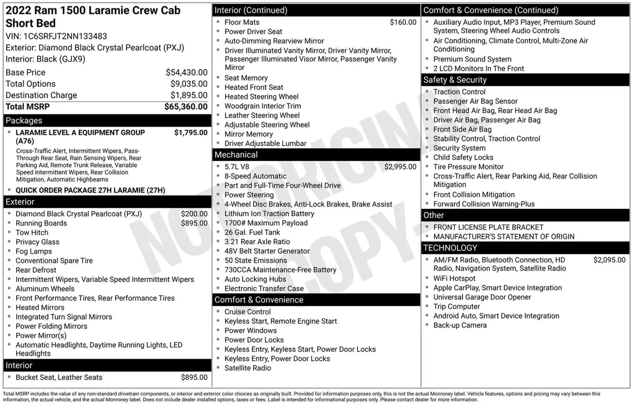 Diamond Black Crystal Pearlcoat 2022 Ram 1500 Laramie 4WD 8-Speed Automatic HEMI 5.7L V8 Multi Displacement VVT This 2022 Ram 1500 Laramie is available for sale just a country mile down the road from Corpus Christi in Aransas Pass, TX. Recent Arrival! Odometer is 8726 miles below market average! Make the short drive from Corpus Christi to Aransas Pass, TX and have your new 2022 Ram 1500 Laramie sitting in your driveway this evening!