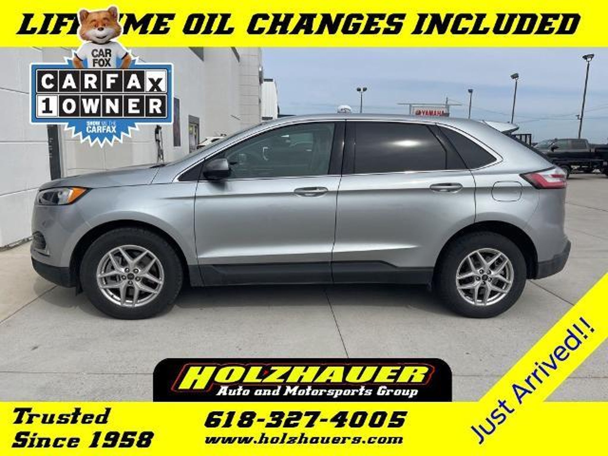 2024 Ford Edge SEL EcoBoost 2.0L I4 GTDi DOHC Turbocharged VCT AWD Iconic Silver Metallic ONE OWNER!!, Mini Spare Wheel/Tire, ActiveX Trimmed Heated Bucket Seats, Auto High-beam Headlights, Automatic temperature control, Emergency communication system: SYNC 4 911 Assist, Equipment Group 201A, Front & Rear Floor Liners w/Carpet Mats, Heated front seats, Heated Steering Wheel, Power driver seat, Power Liftgate, Power passenger seat, Rear Parking Sensors, Rear window defroster, SYNC 4A w/Enhanced Voice Recognition, Wheels: 18 Sparkle Silver-Painted Aluminum. CARFAX One-Owner. Our incredible selection, our low overhead and low prices simply cannot be matched. Teamed with our friendly small town service you'll see why Holzhauer Auto Group is one of the Midwest's largest and fastest growing dealerships. We dont just compete. We blow the competition away with selection, service and price. Before you buy a car, truck, van or SUV from anywhere else you owe it to yourself to visit Holzhauer Auto Group. Odometer is 26105 miles below market average! 21/28 City/Highway MPG