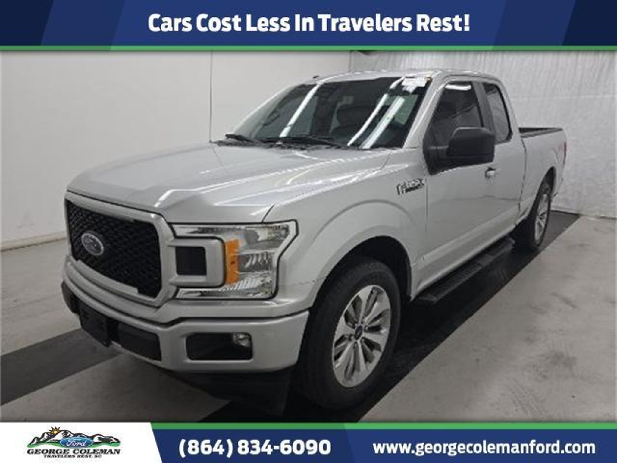 2018 Ford F-150 XL F-150 XL, Super Cab, 2.7L V6 EcoBoost, 10-Speed Automatic, RWD, Ingot Silver, Medium Earth Gray, 4.2 Productivity Screen in Instrument Cluster, Air Conditioning, Body-Color Front & Rear Bumpers, Box Side Decals, Class IV Trailer Hitch Receiver, Cruise Control, Equipment Group 101A Mid, Fog Lamps, Fully automatic headlights, Radio: AM/FM Stereo/Single-CD Player, SYNC, Wheels: 17 Silver Painted Aluminum, XL Power Equipment Group, XL Sport Appearance Package. Odometer is 75702 miles below market average! XL 20/26 City/Highway MPG Certification Program Details: Ford Blue Advantage: Blue Certified * 139 Point Inspection * Transferable Warranty * Vehicle History * Warranty Deductible: $100 * Roadside Assistance * Limited Warranty: 3 Month/4,000 Mile (whichever comes first) after new car warranty expires or from certified purchase date * and 11,000 FordPass Rewards Points to use toward first maintenance visit Awards: * 2018 KBB.com Brand Image Awards * 2018 KBB.com 10 Most Awarded Brands *Cars Cost Less In Travelers Rest!! **Have A FREE VEHICLE HISTORY REPORT sent directly to your email upon request or view IMMEDIATELY at our home website www.georgecolemanford.com ** Come by soon to drive this vehicle or EMAIL SMOSTELLER@COLEMANFORD.NET for more information!! George Coleman Ford has been operating continuously in our present location since 1930!