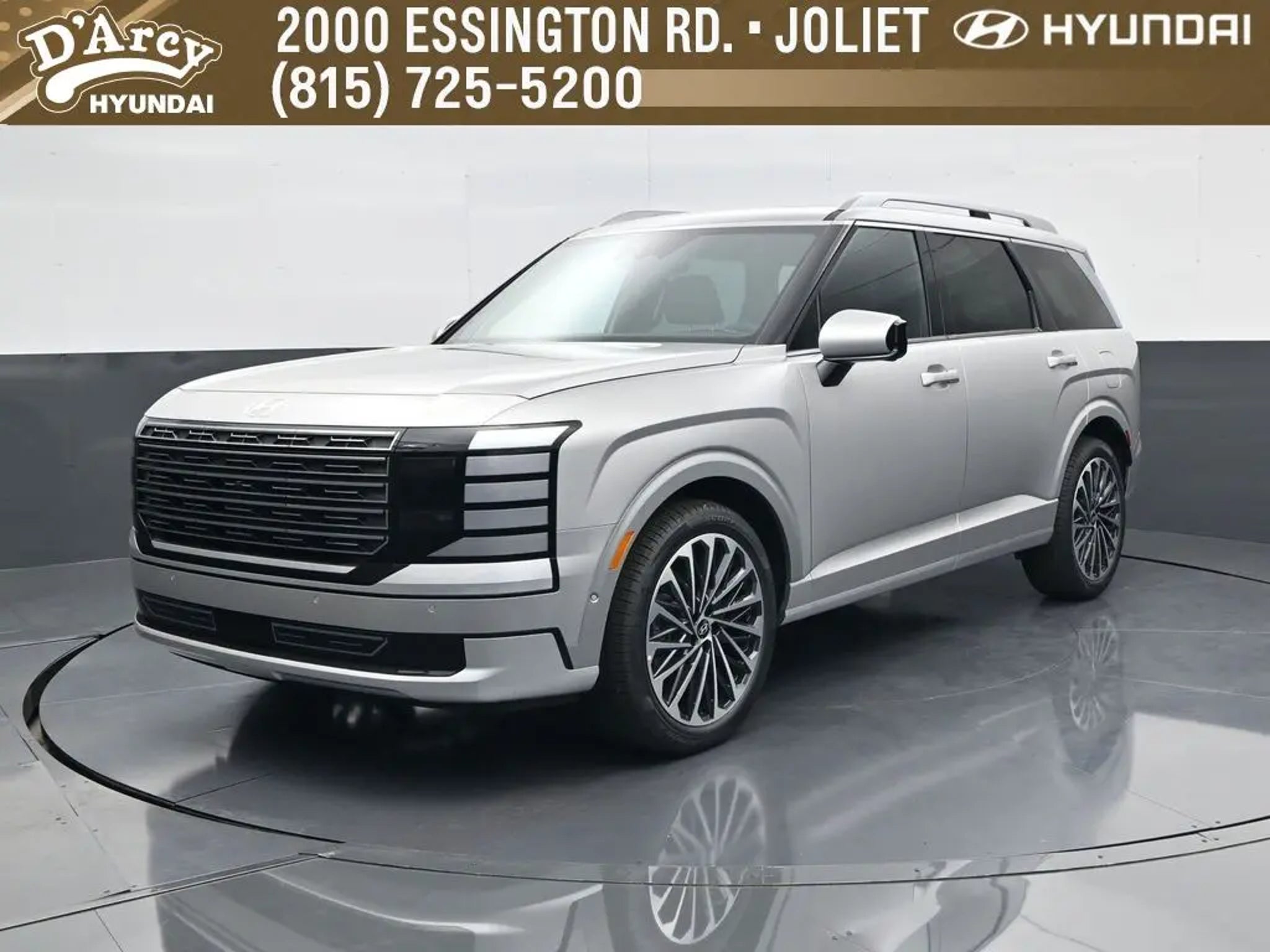 ONE OWNER LOCAL TRADE!, LOW MILES!, GREAT VEHICLE HISTORY!, REMAINING FULL FACTORY WARRANTY!, NAVIGATION!, SUNROOF!, LEATHER!, BOUGHT HERE SERVICED HERE!, HYUNDAI CERTIFIED!, FULLY SERVICED AND READY TO GO!. Certified. Recent Arrival! Typhoon Silver Metallic 2026 Hyundai Palisade Calligraphy AWD 8-Speed Automatic V6 Hyundai Certified Used Vehicles Details: * Warranty Deductible: $50 * Limited Warranty: 60 Month/60,000 Mile (whichever comes first) from original in-service date * Roadside Assistance * Includes 10-year/Unlimited Mileage Roadside Assistance with Rental Car and Trip Interruption Reimbursement; Please See Dealers for Specific Vehicle Eligibility Requirements. 10-Year/100,000 Mile Hybrid/EV Battery Warranty. 3-Months SiriusXM Trial Subscription. Complimentary 1 Year (Connected Care & Remote Pkgs). * Vehicle History * 173 Point Inspection * Powertrain Limited Warranty: 120 Month/100,000 Mile (whichever comes first) from original in-service date Discover the D'Arcy Difference! We care - we are here and we are ready to help! Stop by today to see up to date information, including showroom and service hours, and how to make an appointment or schedule delivery. D'Arcy Motors has been serving Joliet and its surrounding communities for over 25 years. Our business philosophy, which is to sell cars one car at a time and to make the guest the most important part of the process, has remained the same since 1991. Contact us today to experience the D'Arcy Difference! Pulse® Safer Braking Technology for $399 added to all inventory "“ The rear-end collision deterrent that rapidly pulses your third brake light four times before going solid when you press the brake pedal. This feature enhances safety by helping alert trailing drivers. Discover the D'Arcy Difference! We care - we are here and we are ready to help! Stop by today to see up to date information, including showroom and service hours, and how to make an appointment or schedule delivery. D'Arcy Motors has been serving Joliet and its surrounding communities for over 25 years. Our business philosophy, which is to sell cars one car at a time and to make the guest the most important part of the process, has remained the same since 1991. Contact us today to experience the D'Arcy Difference! This 2026 Hyundai Palisade comes equipped with: Option Group 01, 14 Speakers, 3rd row seats: split-bench, 4-Wheel Disc Brakes, ABS brakes, Air Conditioning, Alloy wheels, AM/FM radio: SiriusXM, Apple CarPlay & Android Auto, Audio memory, Auto High-beam Headlights, Auto-dimming door mirrors, Auto-dimming Rear-View mirror, Auto-leveling suspension, Automatic temperature control, Brake assist, Bumpers: body-color, Cargo Organizer, Cargo Tray, Carpeted Floor Mats, Compass, Delay-off headlights, Driver door bin, Driver vanity mirror, Dual front impact airbags, Dual front side impact airbags, Electronic Stability Control, Emergency communication system: None, Exterior Parking Camera Rear, First Aid Kit, Four wheel independent suspension, Front anti-roll bar, Front Bucket Seats, Front Center Armrest, Front dual zone A/C, Front reading lights, Fully automatic headlights, Garage door transmitter: HomeLink, Genuine wood console insert, Genuine wood dashboard insert, Heads-Up Display, Heated and Ventilated Front Bucket Seats, Heated door mirrors, Heated front seats, Heated rear seats, Heated steering wheel, HVAC memory, Illuminated entry, Knee airbag, Leather steering wheel, Low tire pressure warning, Memory seat, Navigation System, Occupant sensing airbag, Outside temperature display, Overhead airbag, Overhead console, Panic alarm, Passenger door bin, Passenger vanity mirror, Power door mirrors, Power driver seat, Power Liftgate, Power moonroof, Power passenger seat, Power steering, Power windows, Premium Nappa Leather Seat Trim, Radio data system, Radio: Infotainment Navigation System, Rain sensing wipers, Rear air conditioning, Rear